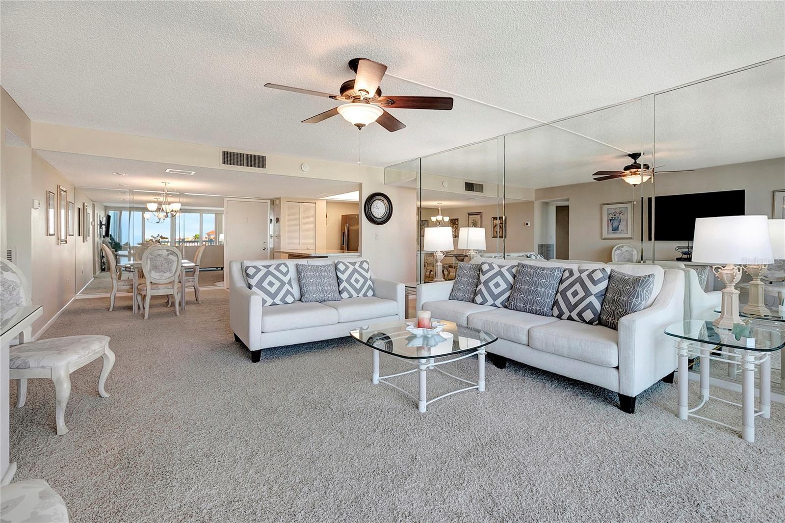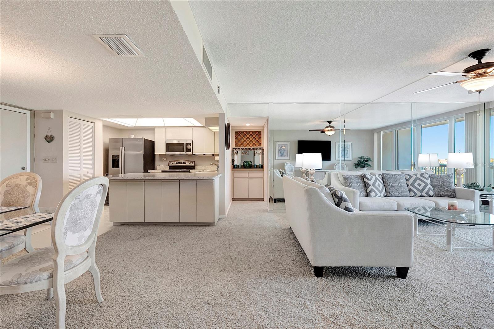 Paradise Awaits! Fully Furnished, split floorplan, 2 Bed - 2 Bath located in Sunny Treasure Island, FL! This CORNER-UNIT features an open-concept layout and is filled with natural light, creating a bright and welcoming living space. Hurricane-impact slider in the living room and impact windows throughout, providing not only enhanced safety and energy efficiency but also a quiet, serene interior. Other notable improvements include a newer HVAC system (2020) and dual full-sized water heaters for added comfort! The kitchen is equipped with stainless steel appliances, including a newer refrigerator and dishwasher (2024), while ample closet storage and an in-unit laundry room add everyday convenience. Both full-sized bathrooms are generously sized featuring abundant counter space with lots of room to move! Parking is a breeze with your assigned parking spot and lots of guest parking. Pets are welcome with an additional deposit. Come experience the ultimate blend of comfort, convenience, and coastal beauty—this is Treasure Island living at its finest!