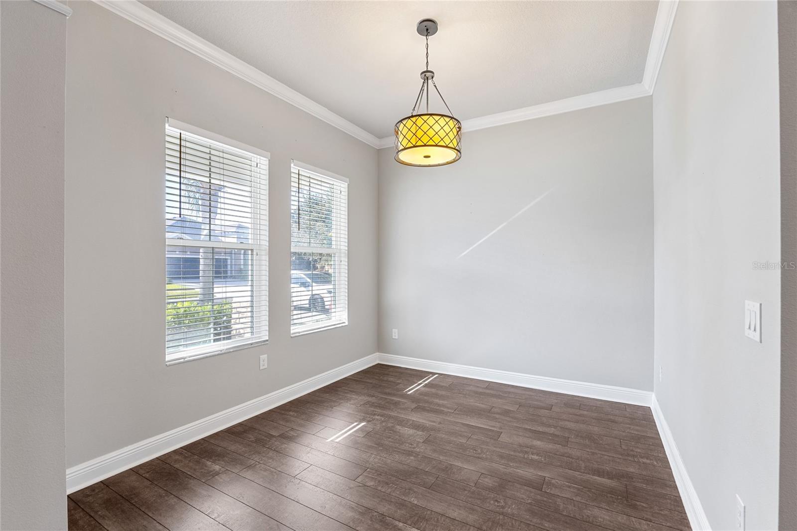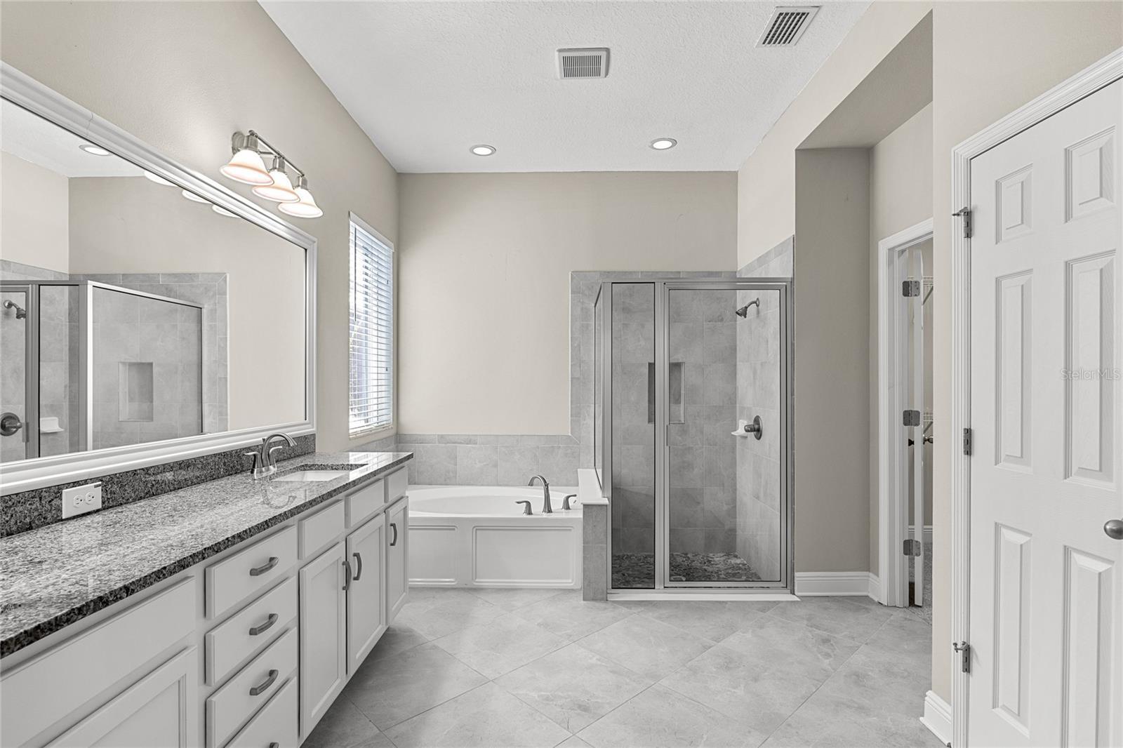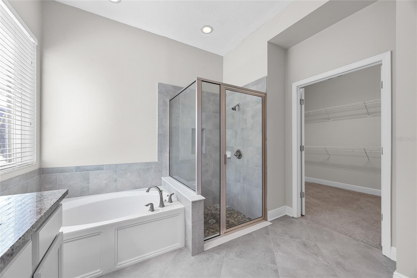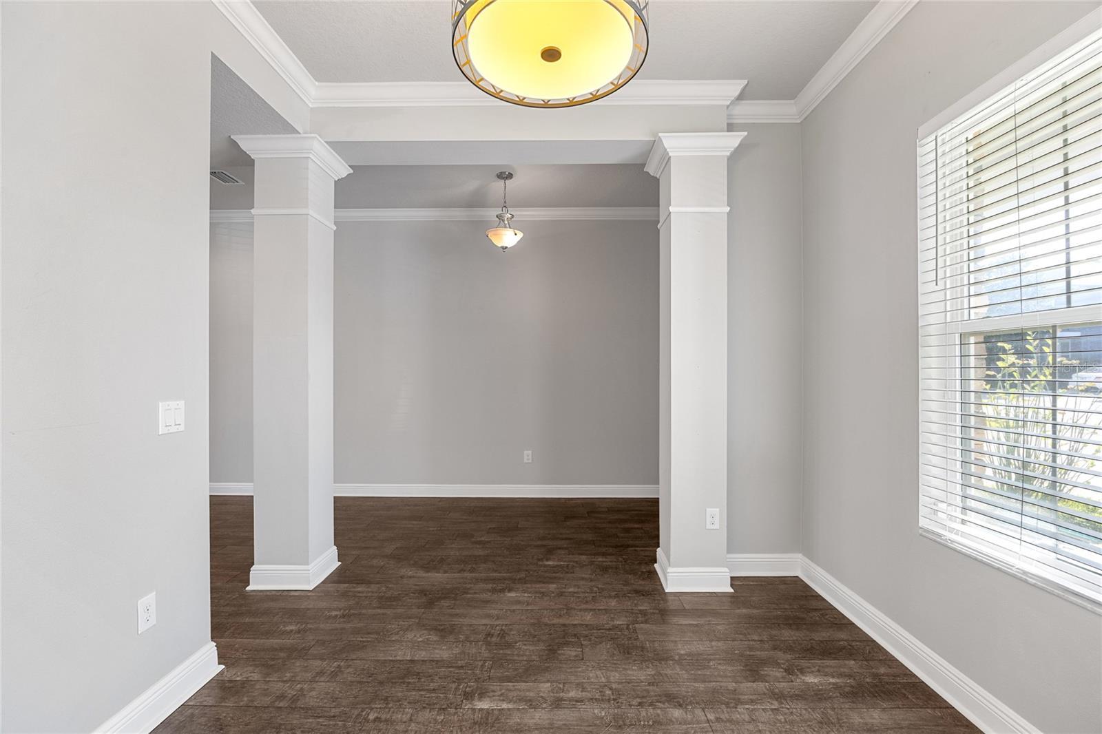 - Crown Molding, Eat-in Kitchen, High Ceilings, Kitchen/Family Room Combo, Open Floorplan, Primary Bedroom Main Floor, PrimaryBedroom Upstairs, Solid Wood Cabinets, Split Bedroom, Stone Counters, Thermostat, Tray Ceiling(s), Walk-In Closet(s), Window Treatments