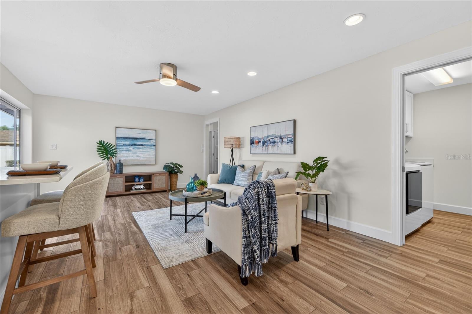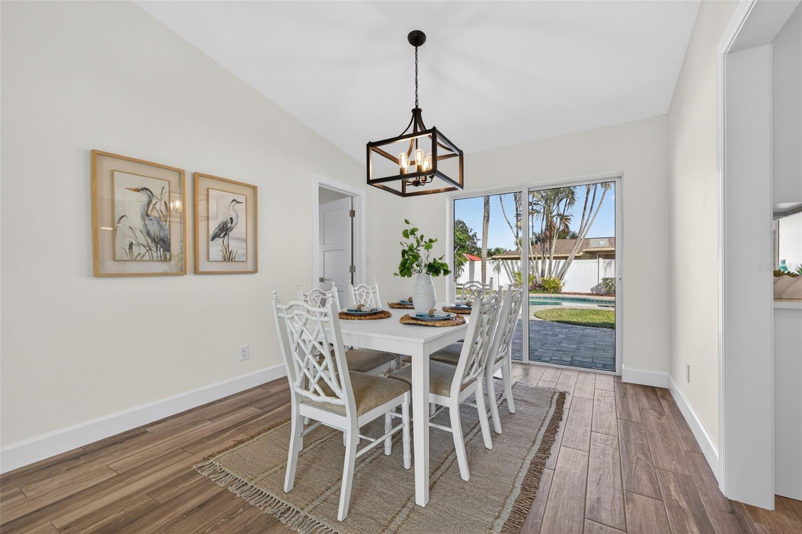 Under contract-accepting backup offers. UNDER CONTRACT, ACCEPTING BACKUP OFFERS. Nestled in the desirable Tanglewood neighborhood, this beautifully updated 4-bedroom, 2-bath POOL home perfectly captures the essence of Florida living. From the moment you enter, stunning pool views set the tone and the vaulted ceiling in the living and dining room create an open, airy atmosphere filled with natural light. This thoughtfully designed split floor plan is perfect for modern living and entertaining. The spacious primary suite serves as a true retreat, featuring two closets, a well-appointed en-suite bath, and direct access to the backyard and pool. The kitchen seamlessly brings the outdoors in, offering a convenient pass-through window, quartz countertops, all-wood cabinetry, a beautiful backsplash, and new stainless steel appliances, perfect for hosting friends and family. The remaining three bedrooms offer generous closet space and share a thoughtfully designed secondary bath. Plantation shutters throughout the home add timeless elegance and enhanced privacy. Step outside to your private backyard oasis, surrounded by lush landscaping. The showstopper is the sparkling pool with an impressive 8½-foot depth accented by beautiful pavers making it ideal for relaxing, hosting, or enjoying year-round sunshine. Additional upgrades provide peace of mind and efficiency, including a tankless water heater (2023), impact resistant windows and doors, and new insulation and ductwork. Impeccably maintained and move-in ready, this exceptional Tanglewood home offers the perfect balance of modern updates, comfort, and outdoor living—conveniently located near golf courses, schools, shopping, dining, and the natural beauty of Weedon Island Preserve.