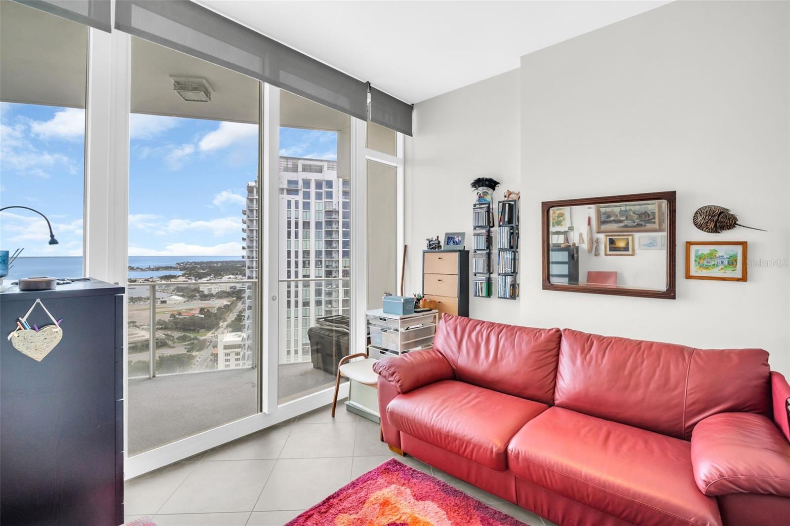 Sky high Water Views, Three private balconies, Iconic downtown living. Discover refined, sky-high living at Signature Place, one of downtown St. Petersburg's most iconic luxury condominium towers. This east-facing 2-bedroom, 2-bath residence spans 1,268 square feet and is perched high above the city, offering beautiful water views and abundant natural light throughout every room. The open living and dining area opens to a large private balcony with jaw-dropping views, creating a seamless indoor-outdoor living experience. High-quality window blinds provide privacy while preserving the stunning vistas. The primary suite is a tranquil retreat, featuring a spa-inspired bath with a soaking tub, pocket door, and a thoughtfully reconfigured hallway that removed the original door to create additional closet space within the bath. The primary bedroom enjoys its own private balcony, while the guest bedroom features a third private balcony, ideal for guests, a home office, or personal escape. Custom closet built-ins throughout offer exceptional storage and organization. Two premium parking spaces and a storage cage are included. Signature Place delivers a true luxury lifestyle with 24-hour concierge, state-of-the-art fitness center, large, heated pool, private cabanas, spa, and two stylish club rooms. Ideally located in the heart of downtown, you're just steps from Beach Drive dining, waterfront parks, museums, galleries, concerts, and St. Pete's vibrant cultural scene. Pet-friendly, this residence presents an exceptional opportunity to enjoy elevated downtown living with skyline height and water views throughout.