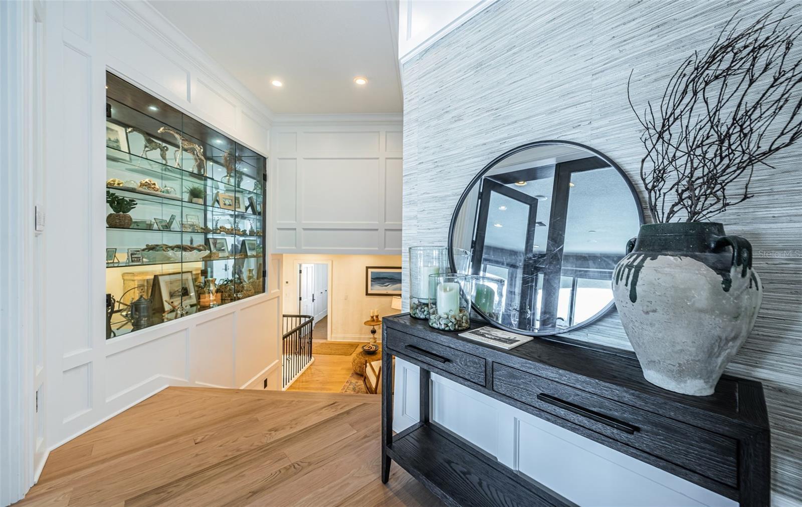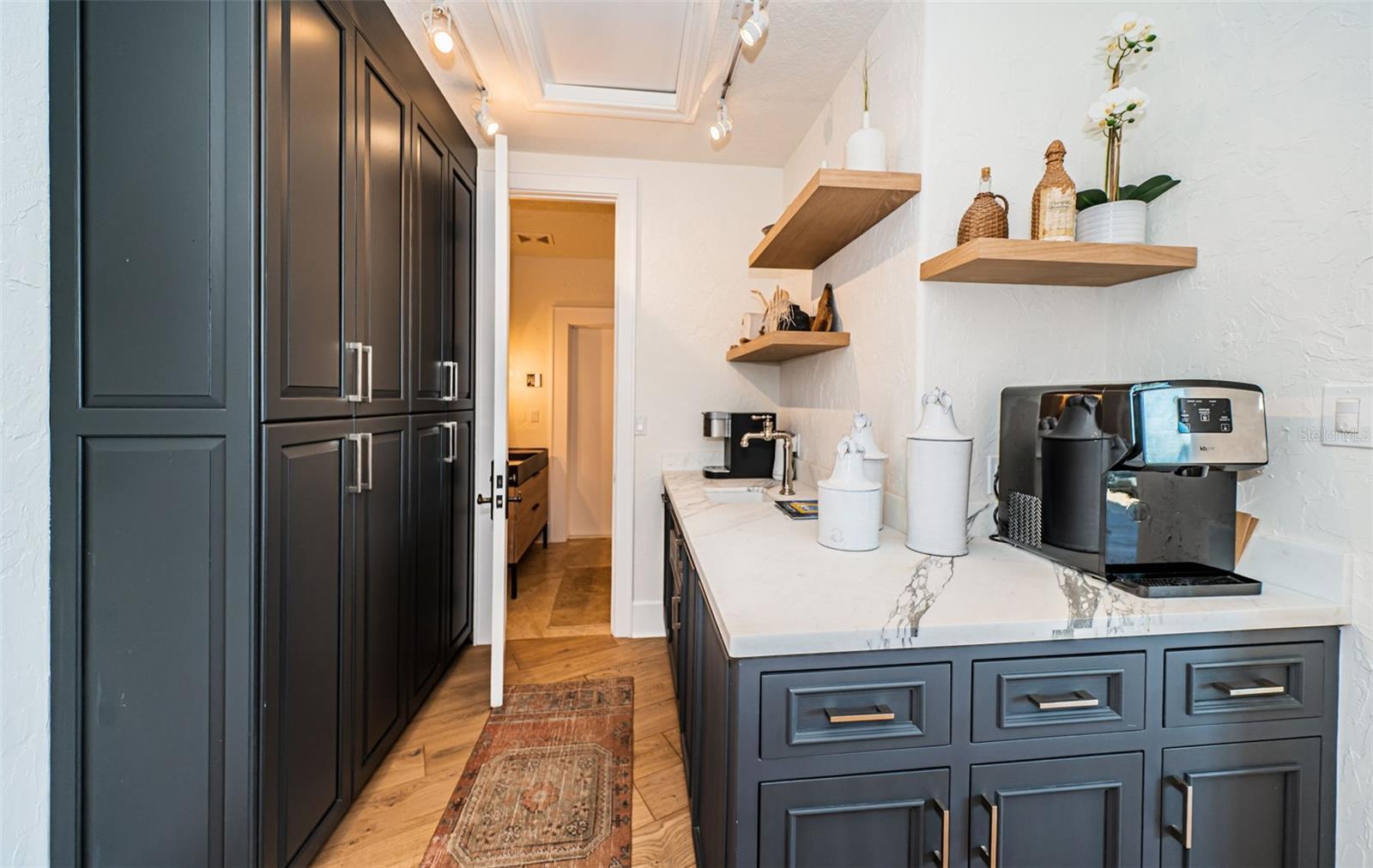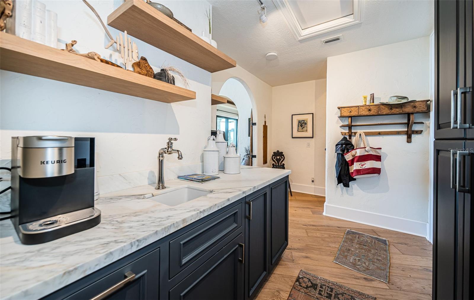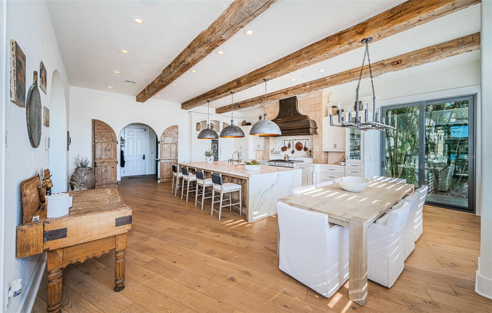 COASTAL CONTEMPORARY LUXURY WITH A UNIQUE TUSCAN APPEAL! Step into a waterfront estate that will raise your senses of sight, sound and touch! Originally built in 1961 but has been rebuilt in 2006. Exquisitely detailed exterior finishes introduce a stately 12ft-high covered entry with splendid arched steel double doors. Inside, discover a spectacular, intricately woven floorplan with dramatic arches, brilliant custom wall finishes, elegant wood flooring, lovely alcoves, superb built-ins and extraordinary woodwork. The expansive great room with its substantial 11ft-high wood ceilings, radiant lighting and cast stone fireplace wall with built-ins, is defined by an amazing wall of 9ft tall sliding glass doors that deliver unforgettable views of the waterfront. The sumptuous open-concept gourmet designer kitchen is a feast of culinary form and function – with aged wood-beamed ceilings, thick Italian marble surfaces, coastal-white raised-panel cabinetry, Wolf/Miele appliances, Bertazzoni gas cooking center, a 3-unit refrigeration wall, full-height wine chiller, huge hammered-copper exhaust, inspired designer lighting, and an incredible island bar with copper farmhouse sink and Italian Marble Waterfall counters (built over a sturdy ancient altar!). You’ll appreciate the fine butler’s pantry and adjacent full-size luxury pool bath. The generous waterfront dining area features two access point to the pool deck. Overlooking the water and opening to a sizable covered deck, the large owner’s suite with dedicated seating area is a welcoming way to begin and end your day. The owner’s bath enjoys beautiful Italian marble surfaces, dual vanities, a dedicated morning bar, an eye-catching all-marble rainshower with digital controls, and a fabulous walk-in closet with built-ins and wonderful center dresser. Upstairs you’ll find an astonishing custom game room with luxurious professional bar; boasting posh wainscoting, rich granite surfaces, custom cabinetry, extensive beverage chilling/refrigeration and surround sound, this will be everyone’s favorite stop to watch the ball game. Step out to the 42ft-wide, 400sqft+ covered balcony and enjoy commanding, panoramic views of the waterfront. Offering an alternative experience, the waterfront fitness room and casual sitting area is a great place to exercise and relax. Two spacious bedrooms share a 20ft-wide waterfront balcony with terrific open water views. A 3rd bedroom is joined to an inviting common sitting area, while the resplendent 4th bedroom provides a Juliette balcony. All bathrooms are lavish in their appointments. Out back you’ll be captivated by a dazzling waterfront setting – a towering 13ft-high 400sqft covered deck with roomy lounging/dining areas and built-in gas cooking center, transitions to a striking Pebbletec pool/spa and your sweeping open water vistas. Impressive travertine paver walkways run the width of the home and are complemented by lush, private subtropical landscaping. You’ll love the dedicated covered waterfront dining area – ideal for large gatherings. The exceptional composite dock features a true rarity, two permanently covered boat lifts with walkway access to both sides of both lifts! Lighting automation, whole house audio, solar electric power and battery backup, and so much more. A magnificent home and tremendous value for all it has to offer. Dimension are estimates, buyer to verify.