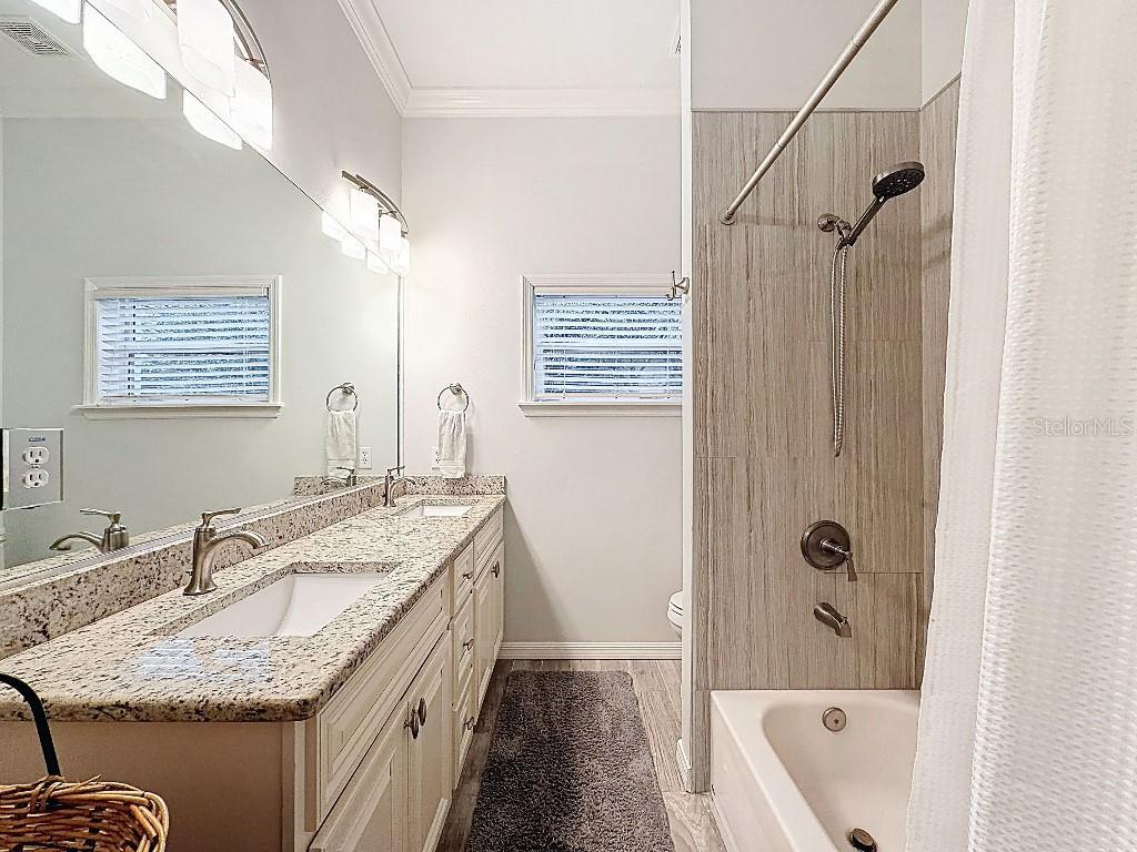 - Cathedral Ceiling(s), Ceiling Fans(s), Crown Molding, Dry Bar, Eat-in Kitchen, High Ceilings, Kitchen/Family Room Combo, Open Floorplan, Stone Counters, Thermostat, Walk-In Closet(s), Window Treatments