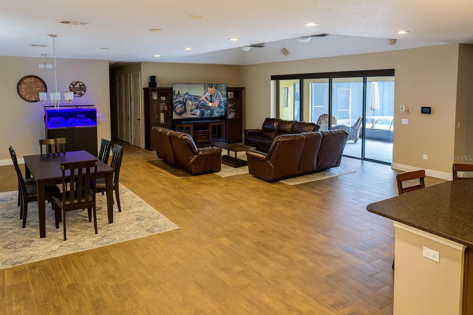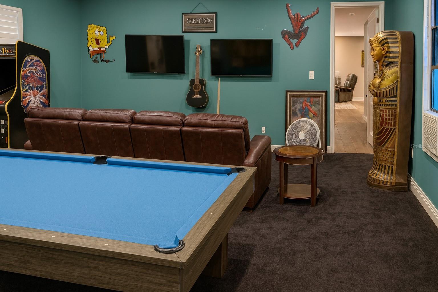 One or more photo(s) has been virtually staged. Stunning HOA-Exempt Estate on 2.33 Acres with Exceptional Indoor & Outdoor Entertaining Spaces This impressive single-story residence offers the perfect blend of privacy, space, and modern comfort—set on 2.33 acres across two parcels (a 1.3-acre homesite plus an adjacent 1.03-acre vacant lot). Huge back and side yard with fenced in areas for dogs etc. Includes raised garden bed for your favorite veggies or flowers Designed for entertaining and everyday enjoyment, the home features 10 ft ceilings (9'4") , 12 foot tray ceilings, 8-ft doors, and thoughtful upgrades throughout. The expansive 31' x 31' great room showcases a tray ceiling and a dramatic 16-ft wide floor-to-ceiling disappearing sliding glass wall, seamlessly connecting the indoors to the resort-style outdoor living spaces. With 12 ceiling fans and open sightlines, the home is airy, bright, and made for gatherings. At the heart of the home is a spacious 24' x 15' kitchen with a large island and stainless-steel sink—excellent for meal prep or hosting. A spacious 24' x 19' game room (with tray ceiling) and a dedicated 12' x 19' theater room featuring a 7" raised rear platform and four real movie theater chairs add to the exceptional entertainment appeal. The private primary suite offers a 19' x 19' retreat with tray ceiling and walk-in closet. Three additional bedrooms (12' x 15', 15' x 14' with WIC, and 16' x 12') plus a generous 16' x 14' office provide space for guests, and work. Outdoor living is unmatched; beginning with a massive 40' x 16' covered and screened lanai with outdoor kitchen (sink, granite countertop, and grill hood). Two additional 30' x 6' screened lanais extend the living space. Step out to the open-air pool featuring 2 large beach shelves with bubbler, four spa jets, and two deck jets—your private oasis. Additional features include: HOA exempt, Adjustable basketball hoop with court markings,RV parking,Two tankless water heaters, Two HVAC zones and systems,Three-car garage,36' x 24' steel building with two 10-ft high overhead doors plus walk-in door—ideal for storage, workshop, or hobbies This unique property offers acreage, privacy, and a floor plan built for fun, comfort, and flexibility—an exceptional opportunity that’s hard to find.