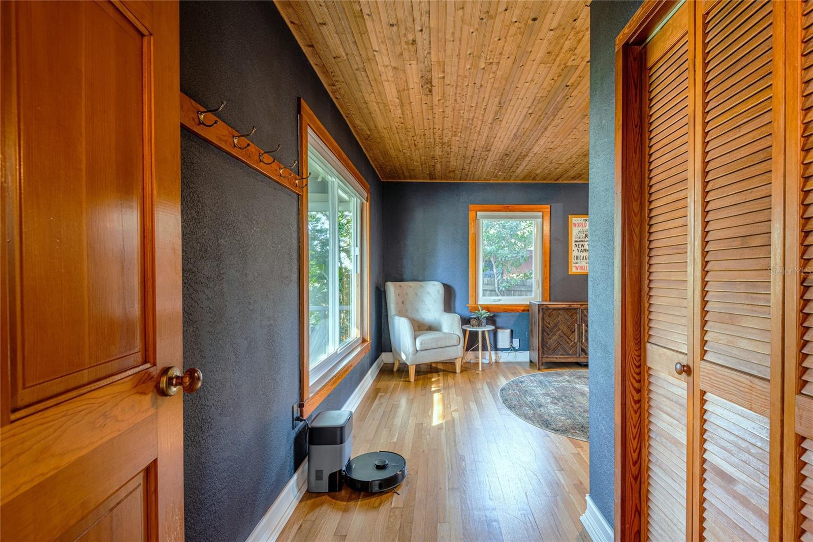 Under contract-accepting backup offers. Custom built in 1987 and lovingly owned by the original owner until 2023, this well-maintained home blends timeless character with thoughtful modern updates. Since 2023, numerous improvements have been completed while preserving the home’s original charm and craftsmanship. Inside, the home offers a spacious yet cozy open kitchen and living area featuring tongue-and-groove wood ceilings, a wood-burning fireplace, and refinished original wood floors. Cedar closets, abundant storage, and a dedicated laundry/mud room add both warmth and functionality. The kitchen and laundry room feature new tile flooring and updated appliances, while both the guest and primary bathrooms have been tastefully improved. Outdoor living is a standout, with a large screened-in porch measuring approximately 40’ x 12’, along with a covered front porch—perfect for relaxing or entertaining. Additional highlights include a two-car garage with an adjacent workshop area and cedar siding that enhances the home’s classic appeal. Recent updates include interior and exterior repainting, new blinds throughout, updated baseboards, energy-efficient windows, a roof replacement, electrical and HVAC improvements, a new water heater, new gutters, and an updated front porch. Located on a quiet street in the well-maintained Greater Pinellas Point neighborhood, the home sits approximately half a mile from Tampa Bay and is situated in Flood Zone X. Enjoy convenient access to major highways, downtown St. Petersburg, and the area’s beautiful beaches. Spacious, inviting, and full of character, this home is a rare opportunity in a sought-after location.