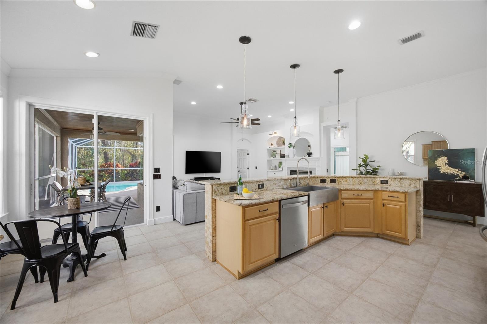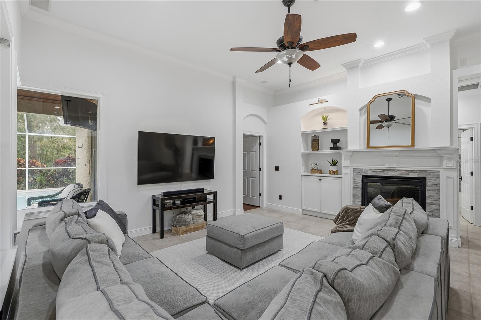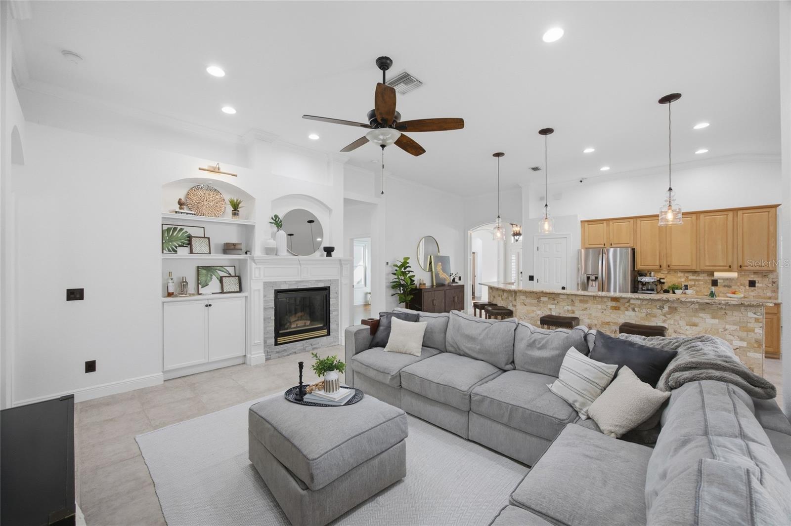 Under contract-accepting backup offers. Experience refined living in this impeccably maintained and thoughtfully updated pool home located in The Greens of Westchase, tucked away on a peaceful cul-de-sac and perfectly situated on a premium conservation lot that offers exceptional privacy and outstanding outdoor living. This move-in-ready residence boasts an impressive list of recent upgrades, including NEW roof, NEW HVAC system, NEW sprinkler system, fresh interior paint, NEW hardwood flooring, NEW pool heater, NEW appliances, updated windows and window treatments, and so much more. Step inside to an inviting foyer that opens to a spacious formal living and dining area, enhanced by elegant crown molding and tray ceilings. This flexible space flows into a separate wing of the home—ideal for a private home office or guest suite—complete with its own full bathroom. At the heart of the home, a bright open-concept living area seamlessly connects the living room and kitchen, highlighted by a custom decorative fireplace and abundant natural light. The stylish kitchen offers both function and charm with warm honey-toned cabinetry, bright granite countertops, stainless steel appliances including a gas range, and a generous breakfast nook overlooking the patio and pool—perfect for enjoying your morning coffee with a view of the backyard oasis. The primary suite is privately tucked just off the main living area, providing a peaceful retreat with direct access to the pool and patio. Two additional bedrooms are thoughtfully positioned near a second full bathroom, ideal for family or guests. Outdoors, the expansive backyard truly shines with lush landscaping, a heated saltwater pool, and ample space for entertaining or relaxing—all enhanced by the serene conservation backdrop. Located within the 24/7 gated community of The Greens of Westchase, residents enjoy an exceptional lifestyle with access to exclusive events, tennis courts, multiple pools, parks, scenic walking and biking trails, and golf at the Westchase Golf Club. Just minutes from the shops, dining, and parks of West Park Village, this home also offers convenient access to Tampa International Airport, Downtown Tampa, major highways, and endless shopping and entertainment. Zoned for highly rated schools, located in a no flood zone, and offering a low HOA, this remarkable home truly checks every box. Schedule your private showing today!