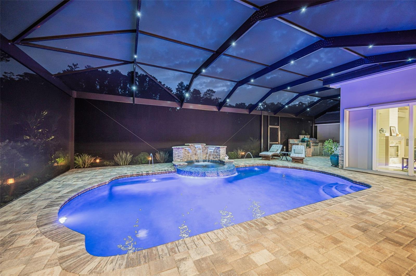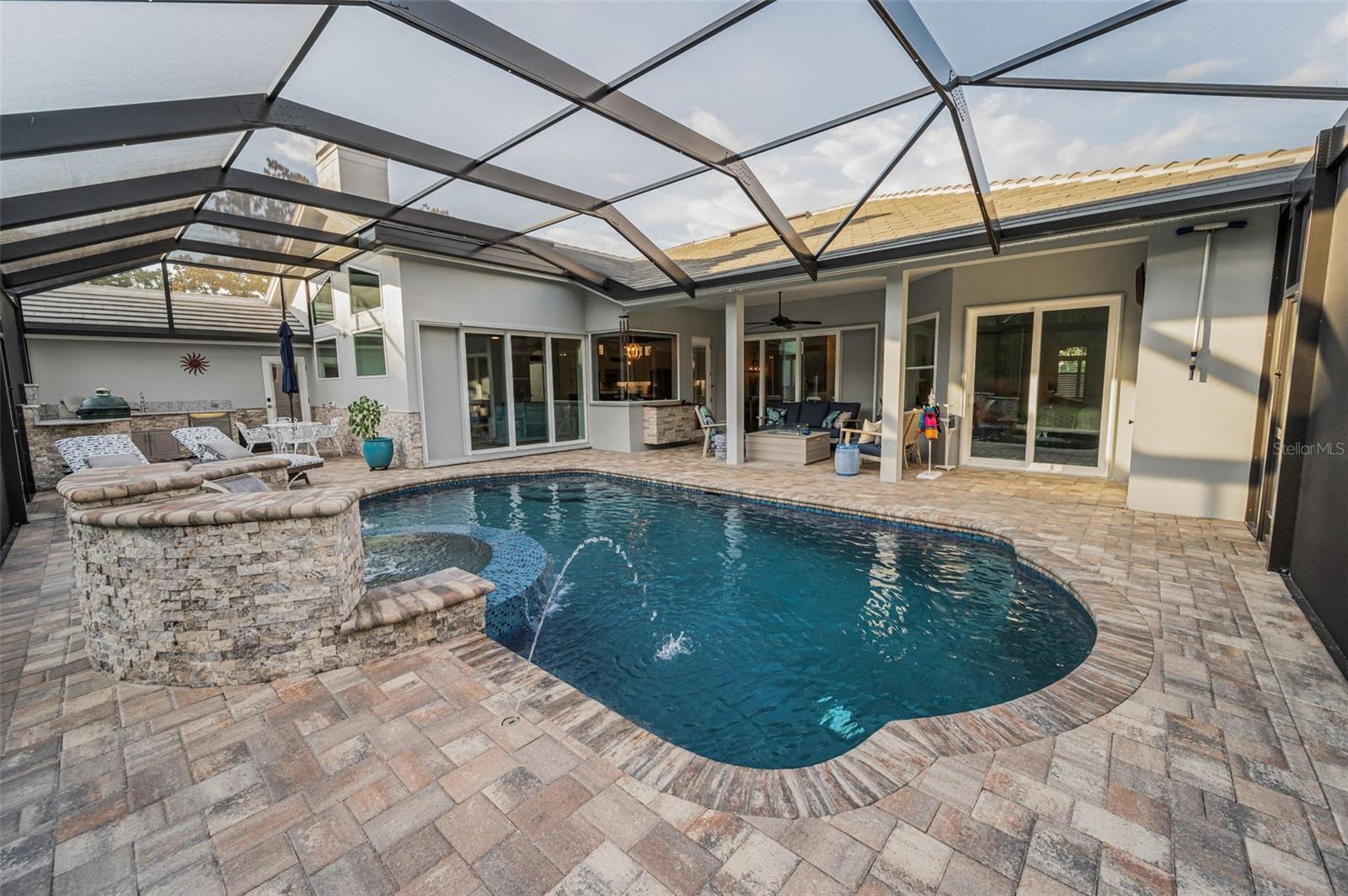 One or more photo(s) has been virtually staged. This AMAZING 4-Bed/3-Bath/Office Home is Located in Aylesford, one of Lansbrook's most Desirable Subdivisions! The following includes some of the property's Features & Recent Upgrades...WINDOWS & SLIDERS: Energy Efficient Double-Paned Windows & Sliders Installed in 2017 - EXTERIOR GARAGE & LANAI PEDESTRIAN DOORS: Installed in 2022 . HVAC SYSTEM: Installed in 2022 - HVAC DUCTWORK: completely replaced throughout in 2023 - APPLIANCES & SUCH: Electrolux Washer 2023 - GE Profile Refrigerator 2023 - Wolf Gas Range 2023 - WaterBoss Water Filtration System 2024 - OUTDOOR KITCHEN: Appliances & Cabinetry replaced in 2022 - ROOF: Tile/Slate Roof replaced in 2021 - CHIMNEY: Inspected Chimney & Replaced Exterior Chimney Cap in 2025 - POOL: Resurfaced Entire Pool & Spa in 2023 - Replaced Pool Motor and Filtration System 2024 - Replaced Waterfall Lighting 2024 - New Underwater Pool Light 2024 - POOL DECK SCREEN ENCLOSURE: Replaced Entire Pool Cage and Added Panoramic “Pano” Screening in 2025 - Installed Two-Zone built in Cage Lighting 2025. PAINTING – INTERIOR & EXTERIOR: - Painted Exterior of House 2025 - Poly Coated Garage Floor 2024 - Painted Interior of House 2022. This house is the Complete Package!! From the Lot location, the picturesque pond/preserve View, and the incredible updates & upgrades... this house is truly a once in a lifetime opportunity to own!! Please View the Virtual Tour to see additional photos