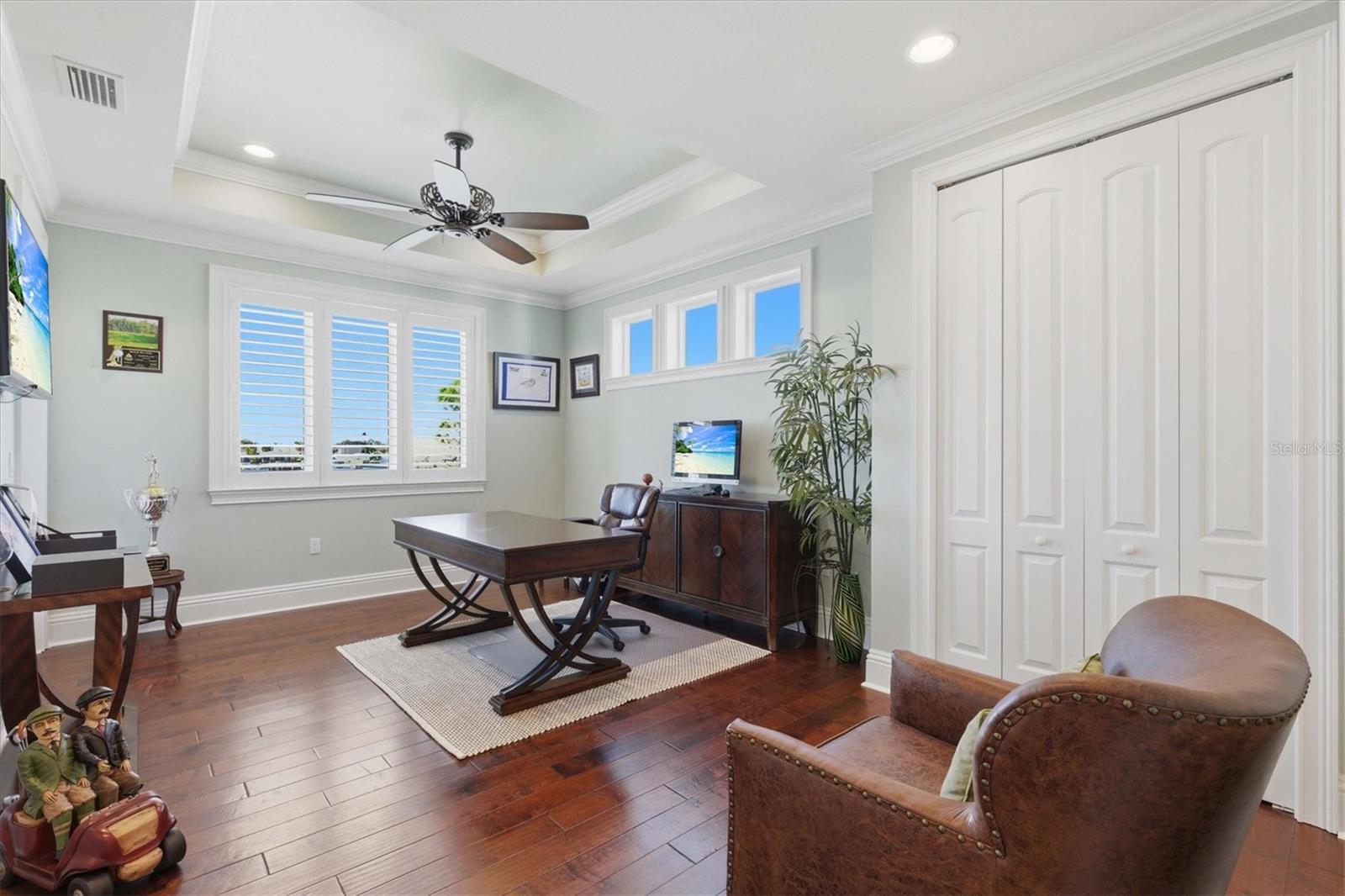 - Built-in Features, Ceiling Fans(s), Crown Molding, Eat-in Kitchen, Elevator, High Ceilings, Living Room/Dining Room Combo, Open Floorplan, PrimaryBedroom Upstairs, Solid Surface Counters, Solid Wood Cabinets, Split Bedroom, Stone Counters, Thermostat, Tray Ceiling(s), Walk-In Closet(s), Window Treatments
