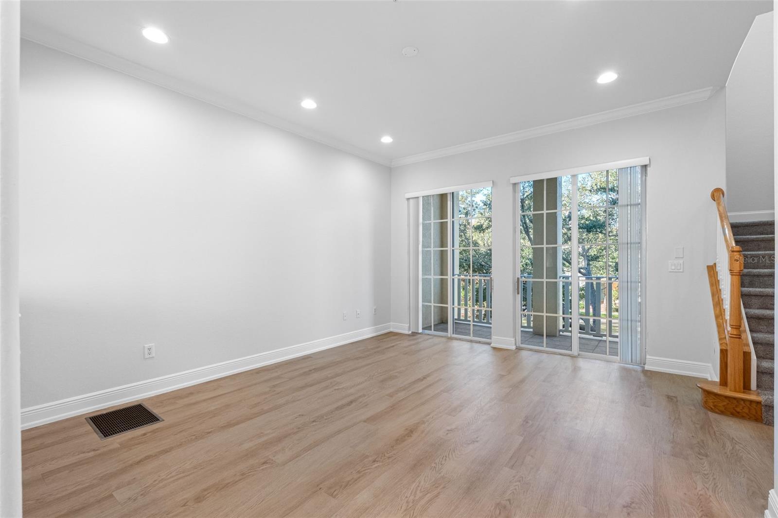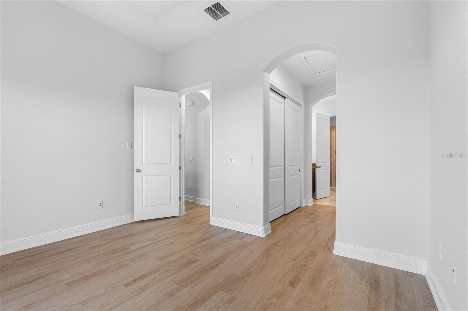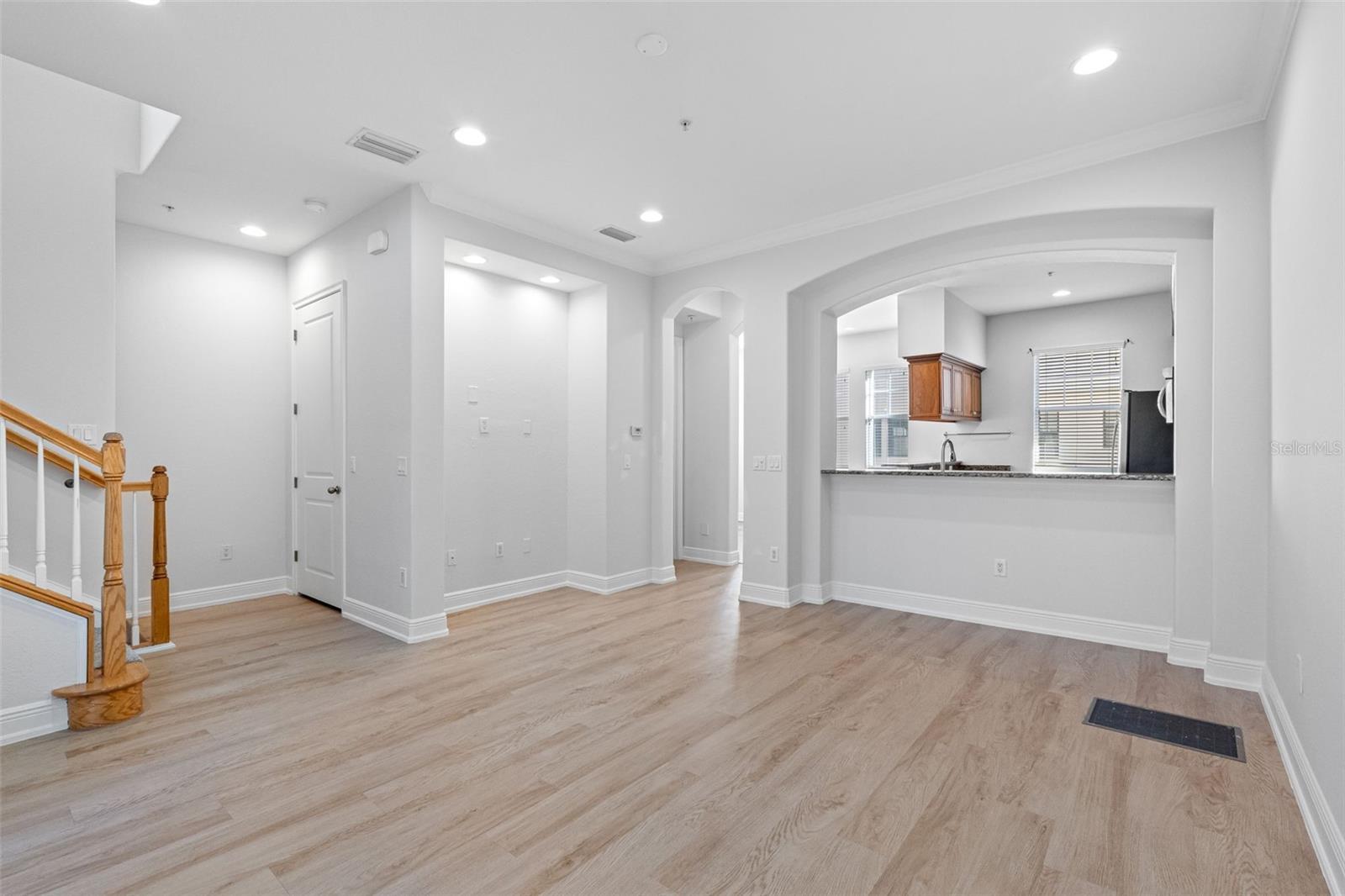 - Ceiling Fans(s), Crown Molding, Eat-in Kitchen, High Ceilings, Open Floorplan, PrimaryBedroom Upstairs, Solid Surface Counters, Solid Wood Cabinets, Split Bedroom, Stone Counters, Thermostat, Walk-In Closet(s), Window Treatments