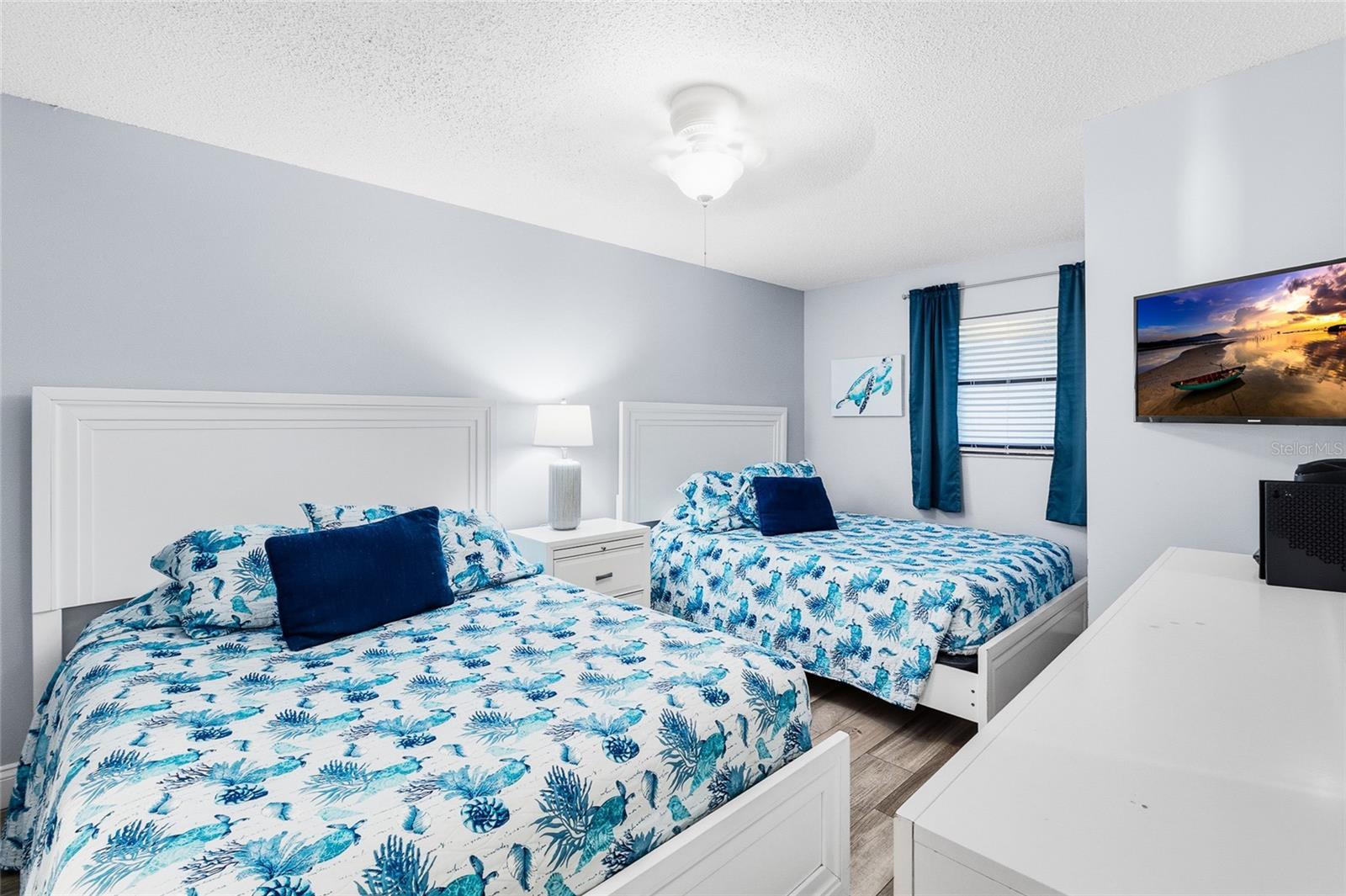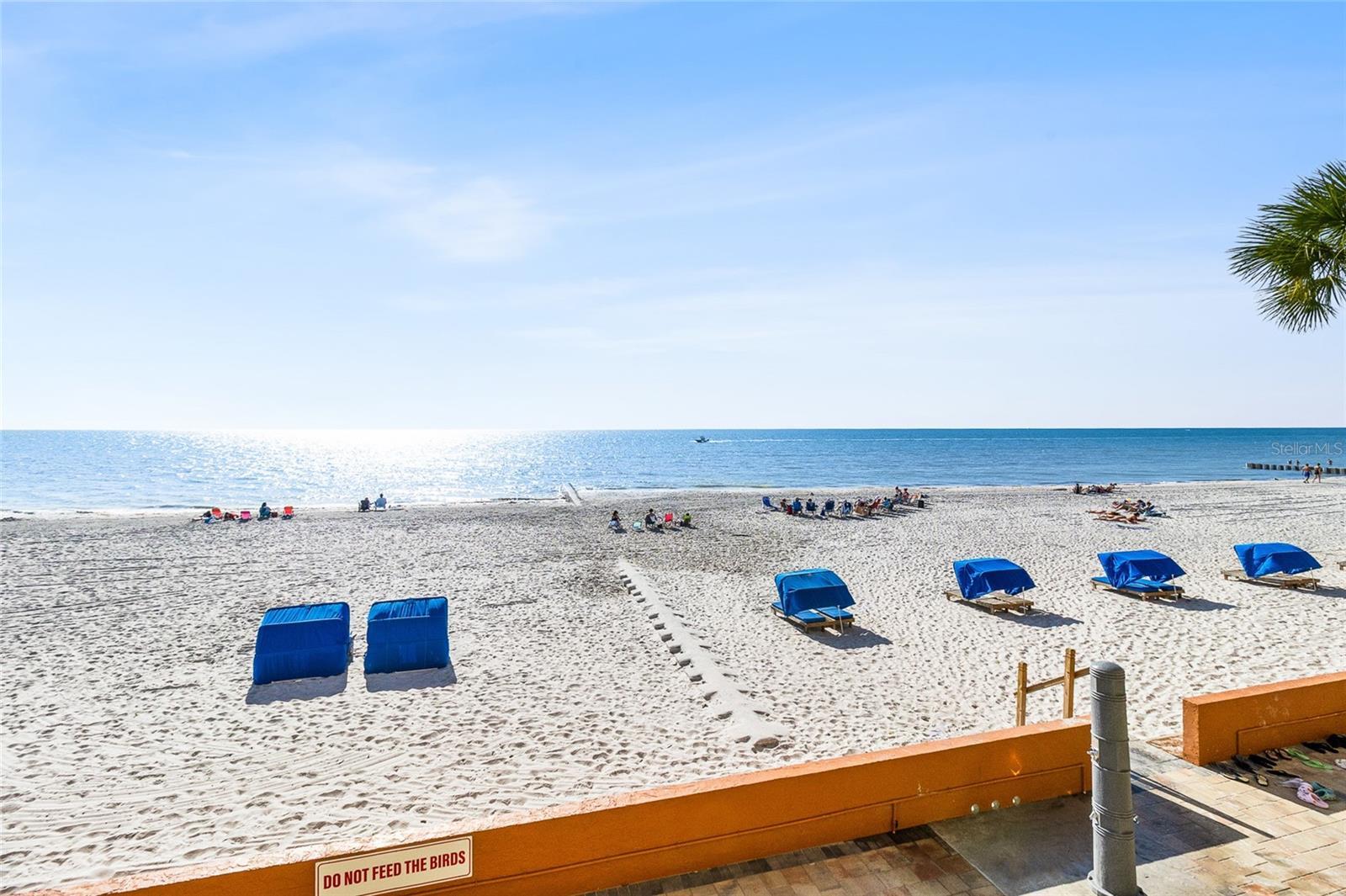 This exceptional income-producing property has consistently generated over $80,000 annually in rental revenue, even though the storms impacted the last two years, owner occupancy and already has solid reservations in place for the coming year. It offers an outstanding opportunity for both personal enjoyment and investment. The residence is a beautifully updated, 1,440 sq. ft., turnkey unit on the lower first floor —perfectly positioned to provide the sensation of being right on the sand while benefiting from a secure elevation. Notably, the condo sustained no flood damage during recent storms. Lovingly updated and maintained, the unit shows like new. Upon entering, you are immediately drawn toward the expansive 25-foot balcony, accessible from both the main living area and the primary bedroom, showcasing stunning panoramic Gulf views. The spacious open-concept living, dining, and kitchen areas feature continuous luxury vinyl flooring that ties the entire unit together. The expansive living room can easily accommodate larger gatherings, creating an inviting space for family and guests to relax. The dining area includes seating for six indoors, with additional dining space along the kitchen bar. The modern updated kitchen is appointed with wood cabinetry, laminate countertops, and bar seating, stainless steel appliances, and unobstructed water views. The primary suite is a standout feature, offering a king-size bed, direct living room access and an elegant en-suite bathroom with a granite double vanity, and an updated tub/shower with upscale tile work. The second en-suite bedroom includes a 2 queen beds, along with a walk-in closet and a beautifully finished bathroom featuring a granite double vanity, tub/shower combination, and a secondary entrance that also serves the third bedroom, which offers a queen bed and ample closet space. Additional conveniences include a large in-unit laundry room with abundant storage and two dedicated covered parking spaces located directly beneath the unit. A/C and water heater less than two years old. This property includes two deeded covered side by side parking spaces. The property is ideally situated close to nearby restaurants, shops, and local attractions—making it highly appealing for both owners and vacation renters.