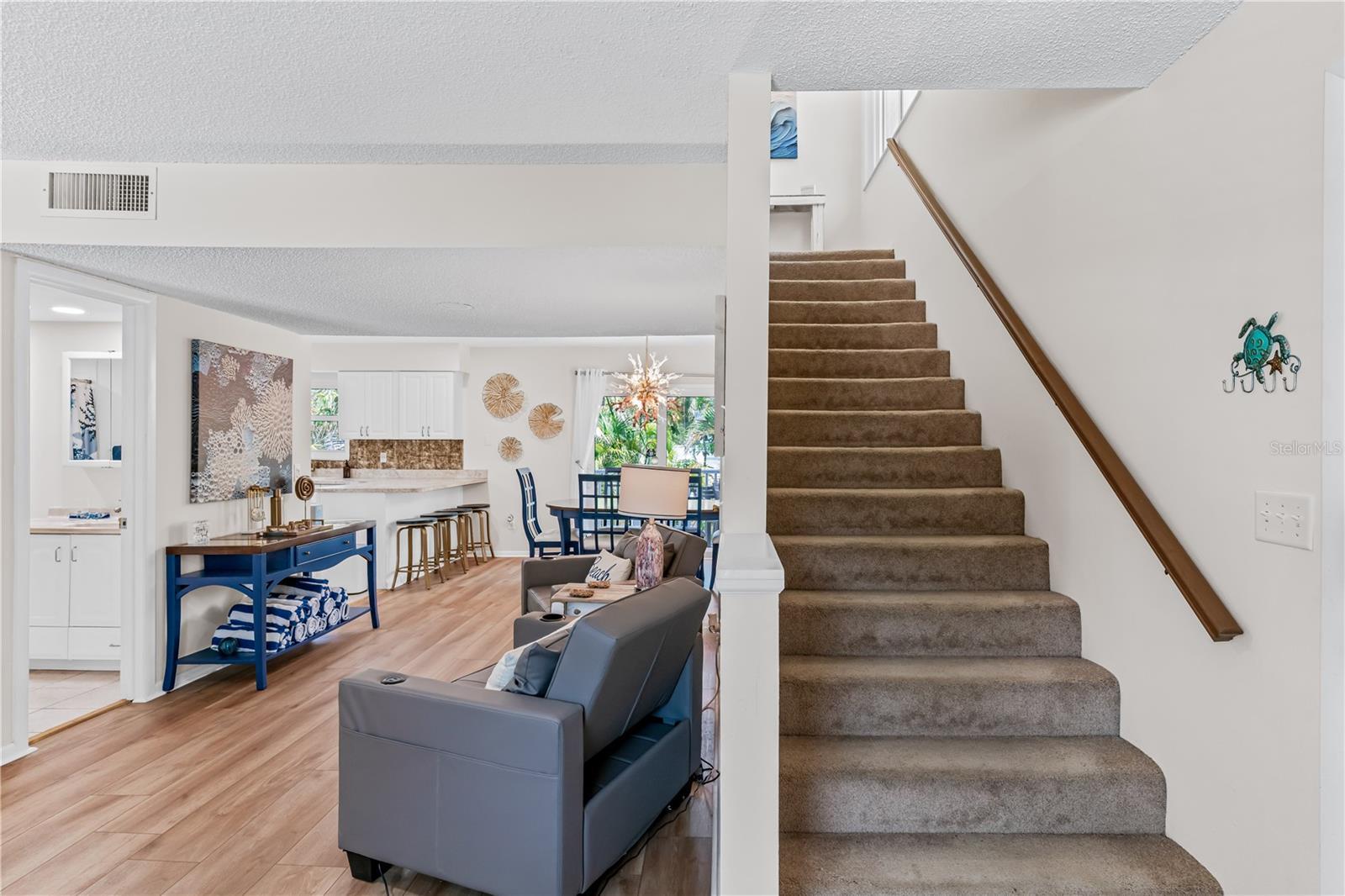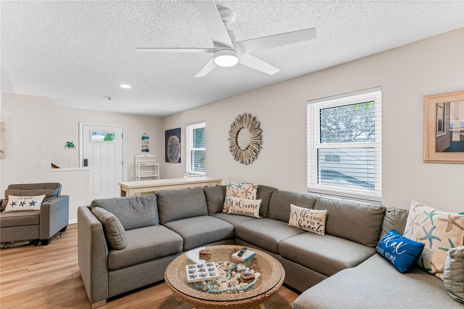 A Hidden Paradise Across from the Beach! Discover a tranquil retreat in this exclusive 3-unit complex, perfectly situated directly across the street from Indian Rocks Beach. This spacious three-story townhome has been thoughtfully and completely renovated, offering both comfort and modern style throughout. The top floor features two well-sized bedrooms and a full bathroom, accompanied by a large balcony accessible from the master bedroom—ideal for enjoying peaceful views or savoring the coastal breeze. On the second level, you’ll find a welcoming living room, a kitchen equipped with newer appliances, and a large breakfast bar perfect for casual dining or entertaining. The dining room opens to another large balcony, providing the perfect space for gatherings, grilling, or simply relaxing outdoors. Enjoy the convenience of oversized, assigned parking spaces under the building, accommodating up to three cars. This townhome is nestled in a very quiet and secluded area, accessible only from a private road with minimal traffic, ensuring privacy and tranquility. Step outside and walk across the street to enjoy the beach or visit nearby restaurants. Relax with stunning sunsets and peaceful views from one of two large balconies or take advantage of the dock for fishing. Bring your kayak or canoe to make the most of the coastal lifestyle. Move-In Ready