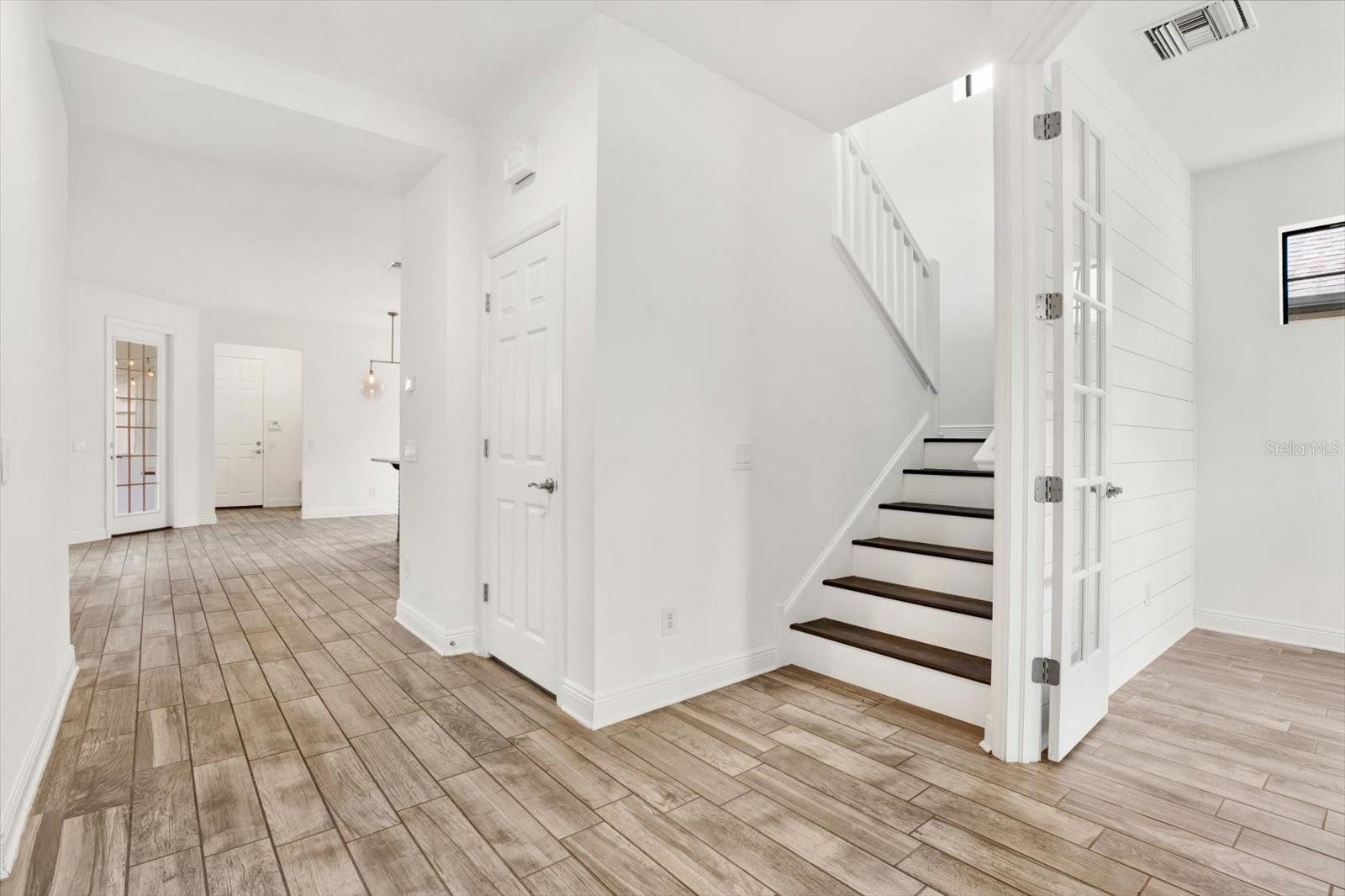 One or more photo(s) has been virtually staged. Welcome to Starkey Ranch! This beautiful 4-bedroom, 3-bath home with an office, upstairs loft, and 2-car garage offers a bright open floor plan and modern finishes throughout. The first floor features wood-plank porcelain tile, a spacious living area, and a well-appointed kitchen with 42” cabinets, island breakfast bar, sleek countertops, and stainless-steel appliances. A guest bedroom, full bath, and office with French doors are conveniently located on the main level. Upstairs you’ll find a large loft, two secondary bedrooms, and the primary suite with an oversized walk-in closet. The primary bath includes dual sinks and a glass-enclosed shower. Enjoy outdoor living on the covered lanai. Additional features include a full-size washer and dryer, whole-house water filtration system, and electric car charging outlet. Ideally located within walking distance to Whitfield Park, offering a community pool, dog park, firepit, and green spaces. Starkey Ranch amenities include multiple pools, trails, parks, tennis and basketball courts, cultural arts center, library, and K-8 school. Convenient to shopping, dining, medical facilities, and the Veterans Expressway. Rent includes lawn care, pest control, and trash service. Available now!