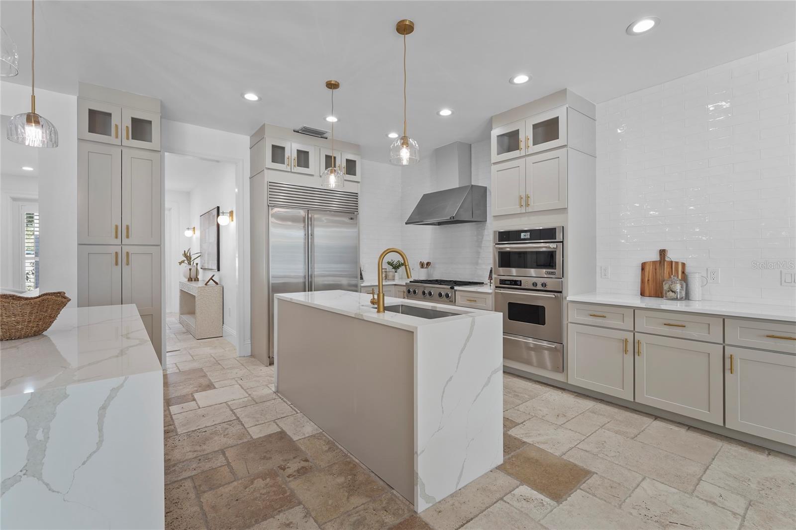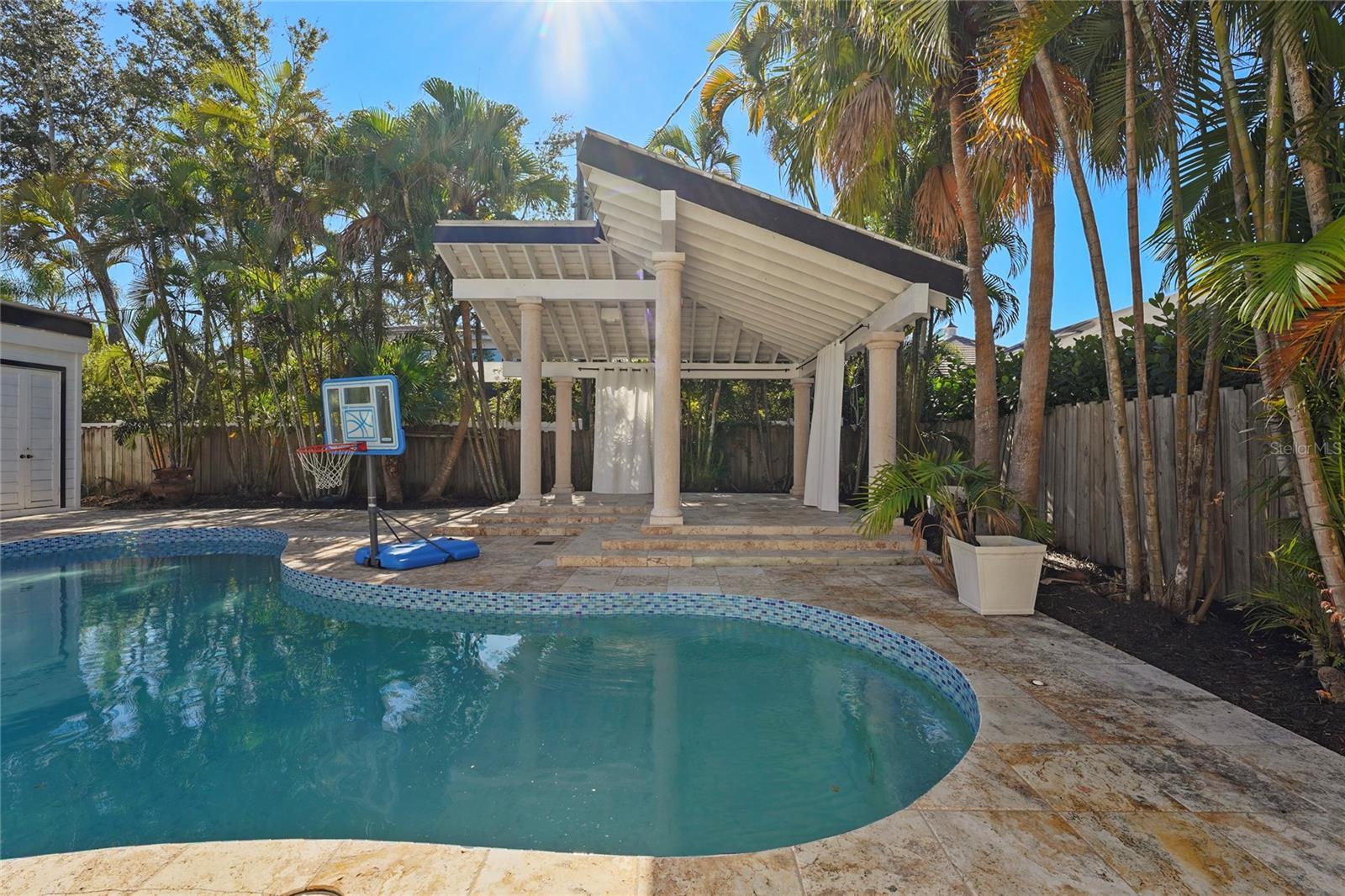 Welcome to this stunning 5-bedroom, 5-bathroom home ideally located near the Hillview District, downtown Sarasota, and just minutes from to Southside Elementary School. Enjoy the best of “West of the Trail” living in this beautifully updated residence that blends timeless architectural charm with modern luxury. The home features a brand-new gourmet kitchen highlighted by a striking double island with quartz waterfall countertops, stainless steel appliances including a gas cooktop and hood, a wine refrigerator, and a custom buffet offering abundant storage. A true formal dining room provides the perfect setting for entertaining. Original travertine tile floors flow throughout the expansive first floor, leading to the primary suite with a large walk-in closet and a spa-inspired ensuite with direct access to the pool deck. The split floor plan also includes a private guest suite with its own ensuite bath. Floor-to-ceiling windows fill the home with natural light and showcase views of the exceptional backyard. Upstairs, you’ll find three additional bedrooms and two fully updated bathrooms. The backyard is truly a rare find—a private oasis featuring a spacious pool, covered lanai, pergola, outdoor shower, storage shed, and full fencing. With its generous size and proximity to downtown, this outdoor space is perfect for relaxing, entertaining, or creating lasting memories. This exceptional home offers comfort, elegance, and an unbeatable location—an opportunity not to be missed.