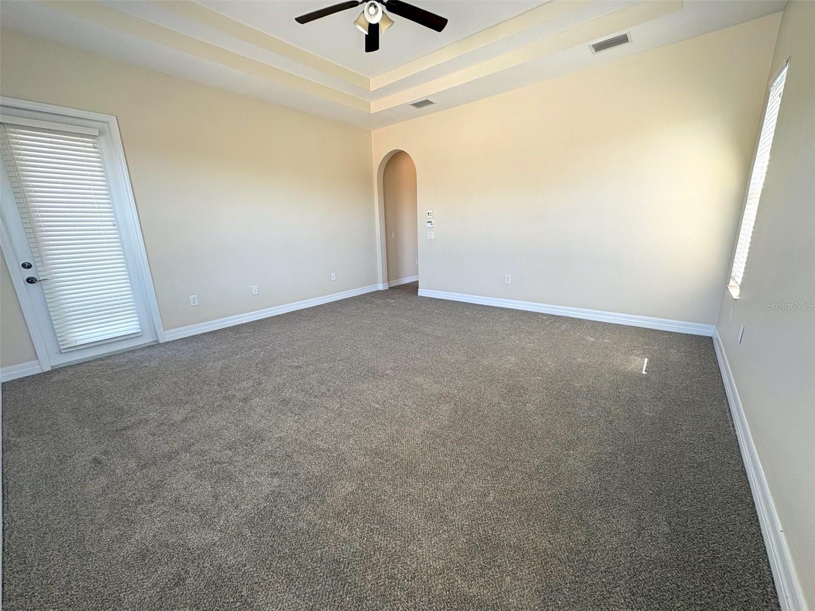 - Ceiling Fans(s), Eat-in Kitchen, High Ceilings, Kitchen/Family Room Combo, Open Floorplan, Primary Bedroom Main Floor, Split Bedroom, Thermostat, Tray Ceiling(s), Walk-In Closet(s)