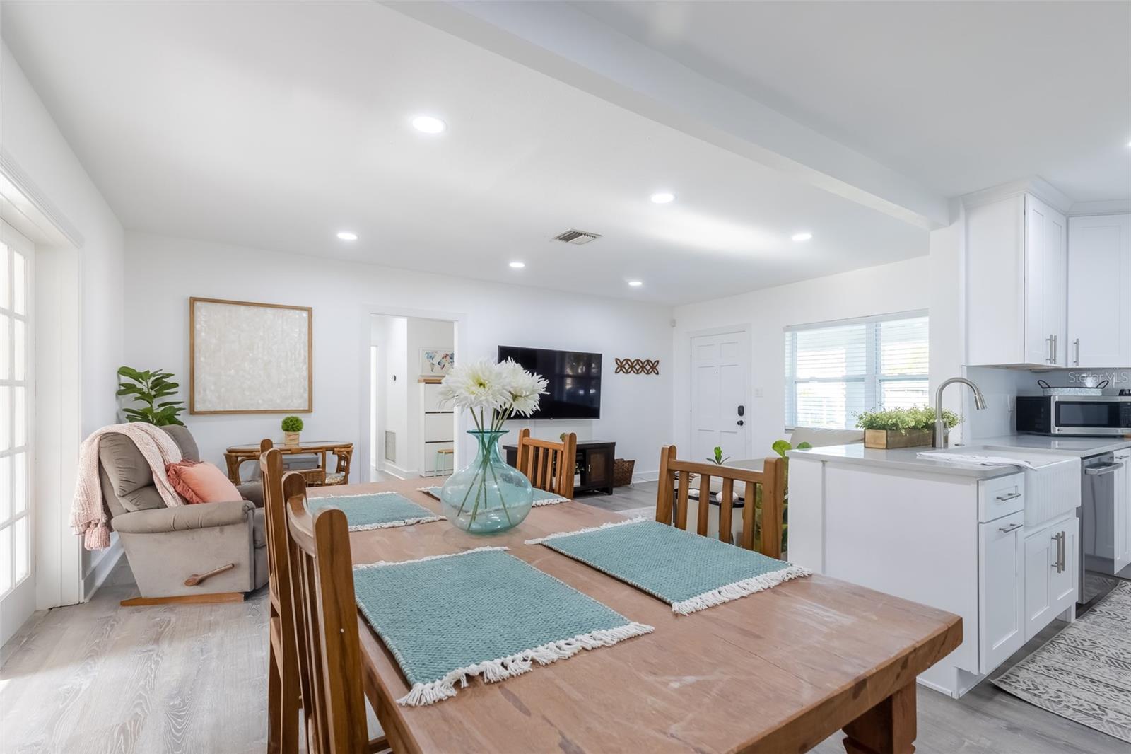 Located in the heart of South Tampa's Palma Ceia West, this beautifully remodeled mid-century modern ranch-style home is a true gem. Situated on a SPACIOUS 0.37-ACRE LOT, where you can bring your recreational toys or build a pool. Currently, the expansive backyard is completely fenced and features a 12’x40’ SUPERIOR SHED to accommodate all your storage needs. The home boasts 3 bedrooms, 1 full bathroom, and 1,484 square feet of heated living space, with a layout that feels remarkably larger. As you arrive, you'll be greeted by an oversized carport with extra storage, brick-wrapped columns, and a charming covered front porch. Inside, the open layout is immediately inviting, with LVP wood-look flooring and ample recessed lighting. The remodeled kitchen, overlooking the main living areas, is a chef's dream with quartz countertops, white shaker cabinets topped with crown molding, a farmhouse sink, stylish hardware, a subway-tiled backsplash, and stainless-steel appliances including a French door refrigerator and slide-in range. The three bedrooms feature closets and have lots of natural light, while the remodeled bathroom offers a new vanity, comfort height toilet, and a tiled tub/shower. A set of double doors opens to the large Florida room, which boasts numerous windows and a shiplap natural wood ceiling, making it a versatile space perfect for a game room, office, playroom, or man cave. The Florida room leads to a completely fenced-in backyard with a large pavered patio, providing privacy and a secure area for storage. ALSO ENJOY NO FLOOD INSURANCE HERE!! Living in this home means enjoying a world of convenience and excitement at your doorstep. Located close to the sun-drenched shores of Ben T Davis Beach are just moments away, and Tampa International Airport ensures effortless travel. Top-rated schools, including Plant High School, Robinson’s Advanced Placement (AP) program, the University of South Florida, and prestigious private institutions like Berkley College Prep, Tampa Catholic High, and Jesuit High School, are all within reach. Close to MACDILL AIRFORCE BASE and within a short six-mile drive, you can easily access Tampa International Airport, Port of Tampa cruise dock, International Plaza and Bay Street, Downtown Tampa, Westshore Business District, Raymond James Stadium, Yankee Stadium Winter Training Facility, Hyde Park Village, Tampa Riverwalk, Davis Islands, Tampa General Hospital, the University of Tampa, Curtis Hixon Waterfront Park, Amalie Arena, Bayshore Boulevard, SoHo District, and the Tampa Museum of Art.