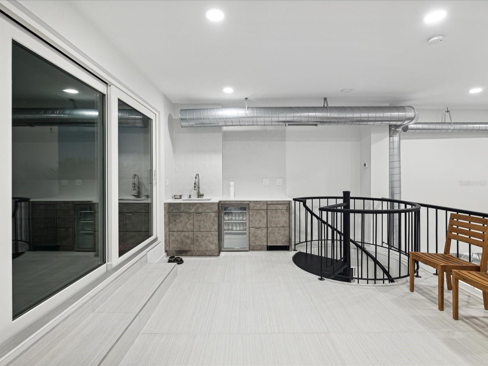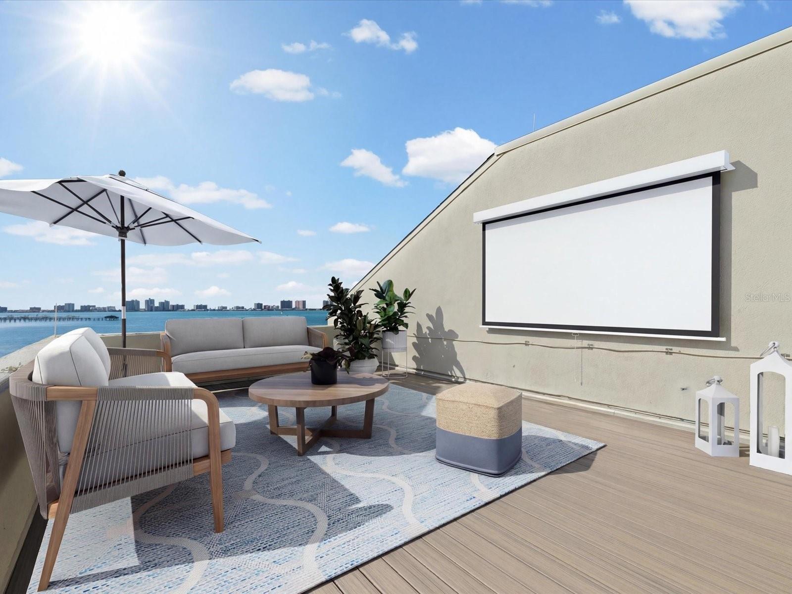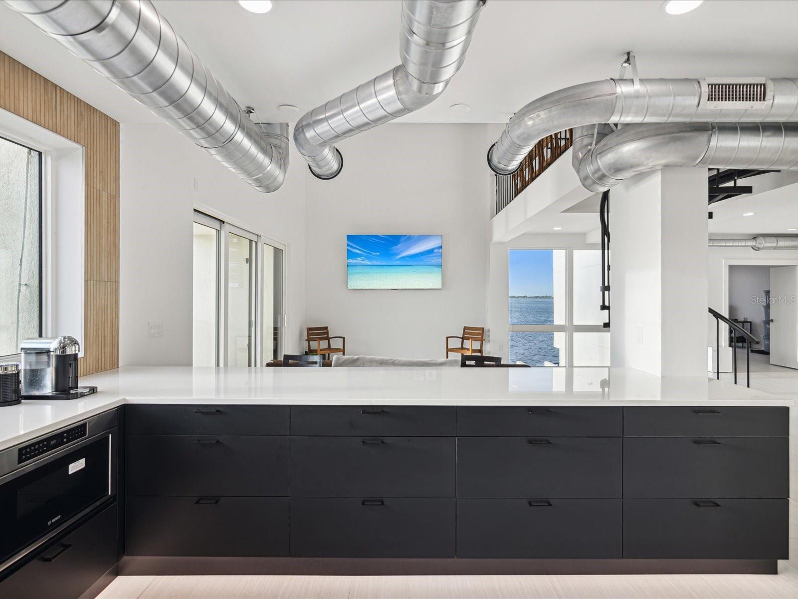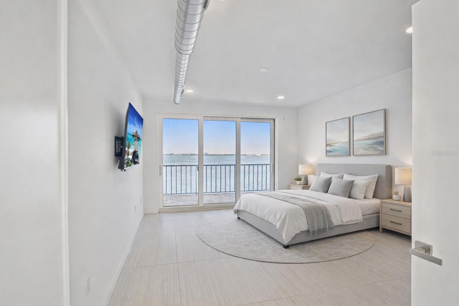 One or more photo(s) has been virtually staged. Welcome to this exceptional top-floor waterfront penthouse in sought-after Belleair, offering breathtaking 180-degree panoramic views of the Intracoastal Waterway and unforgettable sunsets from nearly every room. This fully renovated corner residence features 2 bedrooms, 2 bathrooms, a spacious loft, and an expansive private rooftop deck, creating a rare blend of luxury, design, and lifestyle. The open-concept floor plan is framed by hurricane-rated windows and sliders, filling the home with natural light and sweeping water views. Professionally designed interiors showcase exposed ductwork, refined finishes, and a modern coastal aesthetic throughout. The chef’s kitchen is equipped with all-new Bosch appliances, bar seating, and ample storage—perfect for entertaining or everyday living. A full-size washer and dryer add convenience. A striking spiral staircase leads to the versatile loft, ideal as a guest retreat, home office, or bonus living space, complete with a wet bar, beverage refrigerator, and direct access to the private rooftop entertainment deck—an incredible setting for hosting, relaxing, or enjoying the waterfront scenery. Additional highlights include two private balconies, two assigned parking spaces plus ample guest parking, TVs in every room, and smart home features including thermostat and security cameras. The community offers a heated pool and clubhouse, with utilities included except electricity. Ideally located within walking distance to Belleair Country Club, The Belleview Inn, and Morton Plant Hospital, and just minutes from some of America’s most beautiful beaches, this penthouse delivers an unparalleled Florida waterfront lifestyle.
