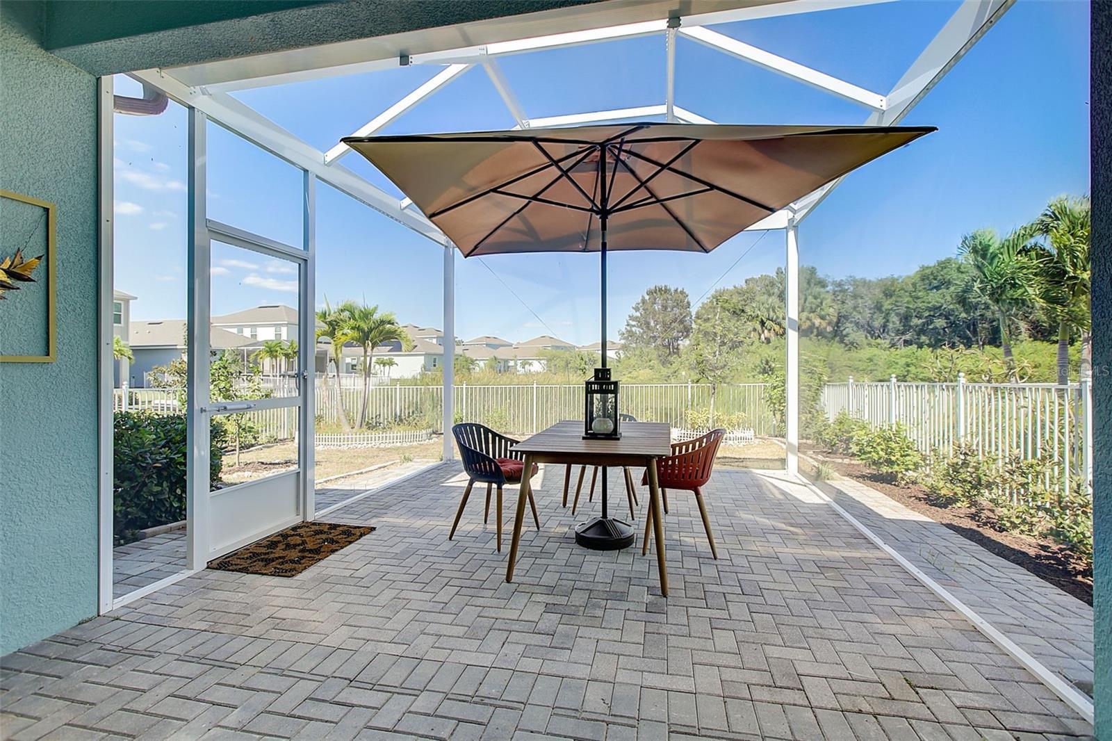 411 Sandsend Court is a 3-bedroom, 2-bath, 1,512 sq ft Mendoza floorplan built in 2021 by Park Square Homes in the gated waterfront community of MiraBay. This home sits on a private rear conservation lot with peaceful pond and wooded views, and is located a short distance from the MiraBay Clubhouse, 24-hour fitness center, café, lounge, heated pools, basketball courts, pickleball courts, tennis courts, parks, playgrounds, and the golf-cart friendly streets the community is known for. Inside, the home features a fully upgraded kitchen with 42” cabinets, quartz countertops, stainless steel appliances, gas cooktop with hood, built-in oven and microwave, and a large center island that opens to the main living area. tile flooring runs through the main living spaces, and the bedrooms feature upgraded wood-look vinyl for added comfort. The split bedroom layout gives privacy for guests, a home office, or multigenerational living. The primary suite includes a large walk-in closet and an ensuite bath with dual sinks and a walk-in shower. A sliding glass door leads to the expanded screened lanai overlooking the pond and conservation area. The lanai is brick-paved and already set up with gas and water connections, making it ready for a future outdoor kitchen or custom outdoor space. The fenced backyard adds privacy and flexibility for outdoor living. Additional upgrades include a tankless water heater, hurricane shutters, stylish window treatments, extra cabinetry in the laundry room, upgraded fixtures, custom cement edging, uplighting, a covered front porch, and a two-car garage with an extended paved driveway. The home has been well maintained inside and out. MiraBay is known for its resort-style living, offering two heated pools, a 24-hour fitness center, courts for basketball, pickleball, and tennis, multiple parks, playgrounds, and access to kayaks and paddleboards for exploring the community waterways. With a low HOA and a location close to beaches, shopping, dining, and everything Apollo Beach offers, this home provides easy, comfortable living. Owner requires first month, last month plus deposit