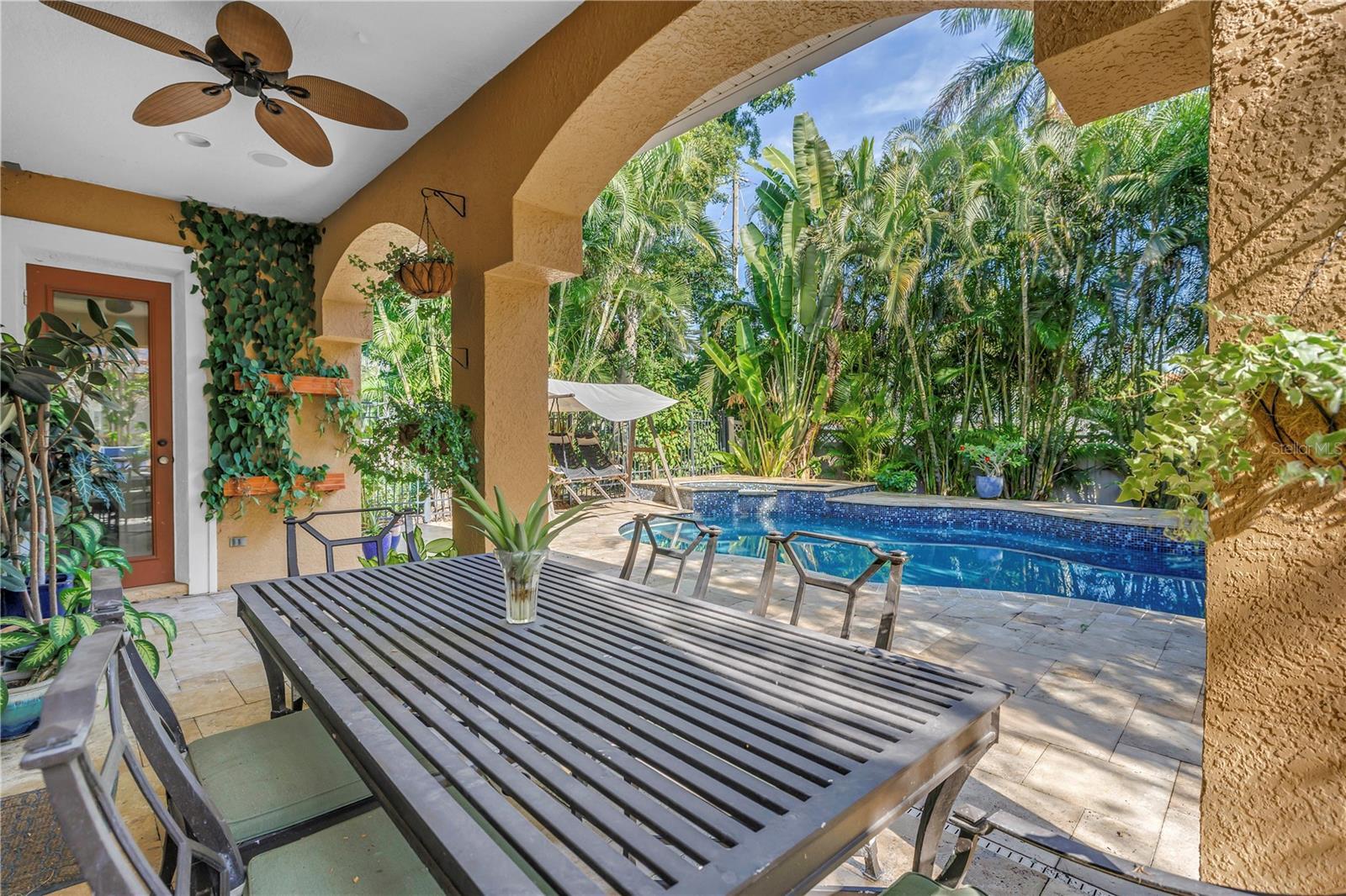 Well-defined spaces and a prime corner lot with lush landscaping set the stage for this coveted Brightwaters Boulevard residence in Snell Isle. Offering 4 bedrooms, 4 bathrooms, and 3,791 heated square feet, this home seamlessly blends generous interior living with exceptional outdoor amenities in a premier residential setting. Upon entry, multiple thoughtfully designed living areas create both comfort and functionality, including a private office ideal for working from home. The main living spaces feel open and expansive, anchored by a gas fireplace and sliding glass doors that open to the pool and expansive outdoor living area. The custom chef’s kitchen serves as the heart of the home, featuring a gas cooktop, built-in ovens, stainless steel appliances, custom wood cabinetry, center island, walk-in pantry, and an eat-in dining area. The kitchen flows effortlessly into the surrounding living spaces, making it ideal for everyday living and entertaining. The primary suite offers a private retreat with two walk-in closets and a luxurious en-suite bath complete with a custom wood vanity, marble countertops, dual sinks, a garden soaking tub, and a custom glass-enclosed shower. Two spacious second-floor bedrooms share a Jack-and-Jill bathroom with separate vanities, while a fourth bedroom with its own en-suite bath provides a comfortable guest suite. Outdoor living is highlighted by a heated saltwater pool with hot tub with waterfall, travertine paver patio, covered lanai, tropical landscaping, and a fully fenced backyard perfect for both relaxation and entertaining. Notable updates include two air-conditioning systems replaced in 2023 and 2024, refrigerator in 2023, hot water heater in 2020, and pool pump replaced in 2017. Ideally located just minutes from Vinoy Golf Club, waterfront parks, downtown St. Petersburg, dining, shopping, and cultural attractions, this Snell Isle home presents a rare opportunity to enjoy space, privacy, and an exceptional location in one of the city’s most desirable neighborhoods