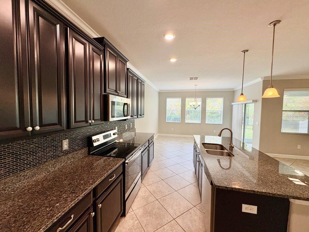 Welcome home to this stunning 4-bedroom, 2.5-bath residence located in the highly desirable Union Park community of Wesley Chapel, offering a spacious and modern living experience. Upon entry, you are welcomed by an open floor plan that seamlessly connects the living, dining, and kitchen areas, creating an inviting space ideal for everyday living and entertaining. The gourmet kitchen is a chefs dream, featuring stainless steel appliances, a large center island, a pantry for ample storage, elegant crown molding, solid wood cabinetry, and granite countertops. Upstairs, all bedrooms are conveniently located together, providing comfort and privacy for the entire household. A spacious loft offers versatile use as a home office, play area, or entertainment space. The primary suite serves as a private retreat with a massive walk-in closet and an en suite bathroom that includes a relaxing jacuzzi garden tub and a separate walk-in shower, creating a spa-like atmosphere at home. Enjoy a brand-new washer and dryer inside the home. Outside, enjoy a large, fenced backyard situated on a conservation lot, perfect for entertaining, hosting gatherings, or simply relaxing outdoors. Residents of Union Park have access to exceptional community amenities, including miles of nature trails, fitness stations, a fire pit, splash pad, expansive open-air clubhouse, resort-style pool, covered cabanas, outdoor kitchen, dog park, and much more. In addition to the advertised base rent, all residents are enrolled in the Resident Benefits Package (RBP) for $50.00/month which includes HVAC air filter delivery, credit building to help boost your credit score with timely rent payments, utility concierge service making utility connection a breeze during your move-in, and much more! More details upon application. Cable and internet are included in the monthly rent for added convenience. Pets welcome, max 3, 100 lbs. Vacant and Available now.