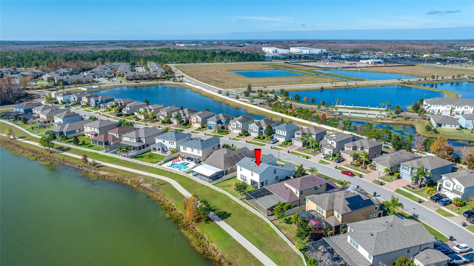 Welcome home to this beautifully upgraded five-bedroom home in Long Lake Ranch, offering the perfect blend of elegance, space, and everyday comfort. From the moment you enter through the grand double doors, the soaring ceilings, wood flooring, crown molding, and plantation shutters set the tone for a home where no detail was overlooked. The elegant kitchen serves as the heart of the home, featuring quartz countertops, stainless steel appliances, designer marble backsplash, and an island ideal for gathering. Natural light fills the expansive family room, creating an inviting space for entertaining or relaxing. The first-floor primary suite provides a private retreat with a spa-inspired bath, oversized walk-in shower, soaking tub, dual vanities, and an exceptional custom walk-in closet. Laundry room with storage and a powder bath complete the first floor living spaces. Upstairs, a spacious loft offers flexible living space, complemented by four additional bedrooms and well-appointed baths to include a full hall bath as well as a Jack & Jill bathroom shared by second & third bedrooms. Enjoy the outdoors on an oversized, fully fenced lot overlooking Long Lake Ranch’s signature 40-acre lake. Residents enjoy resort-style amenities including a pool with splash zone, tennis and basketball courts, playgrounds, dog park, and scenic conservation areas—conveniently located near shopping, dining, major highways, and Tampa International Airport.