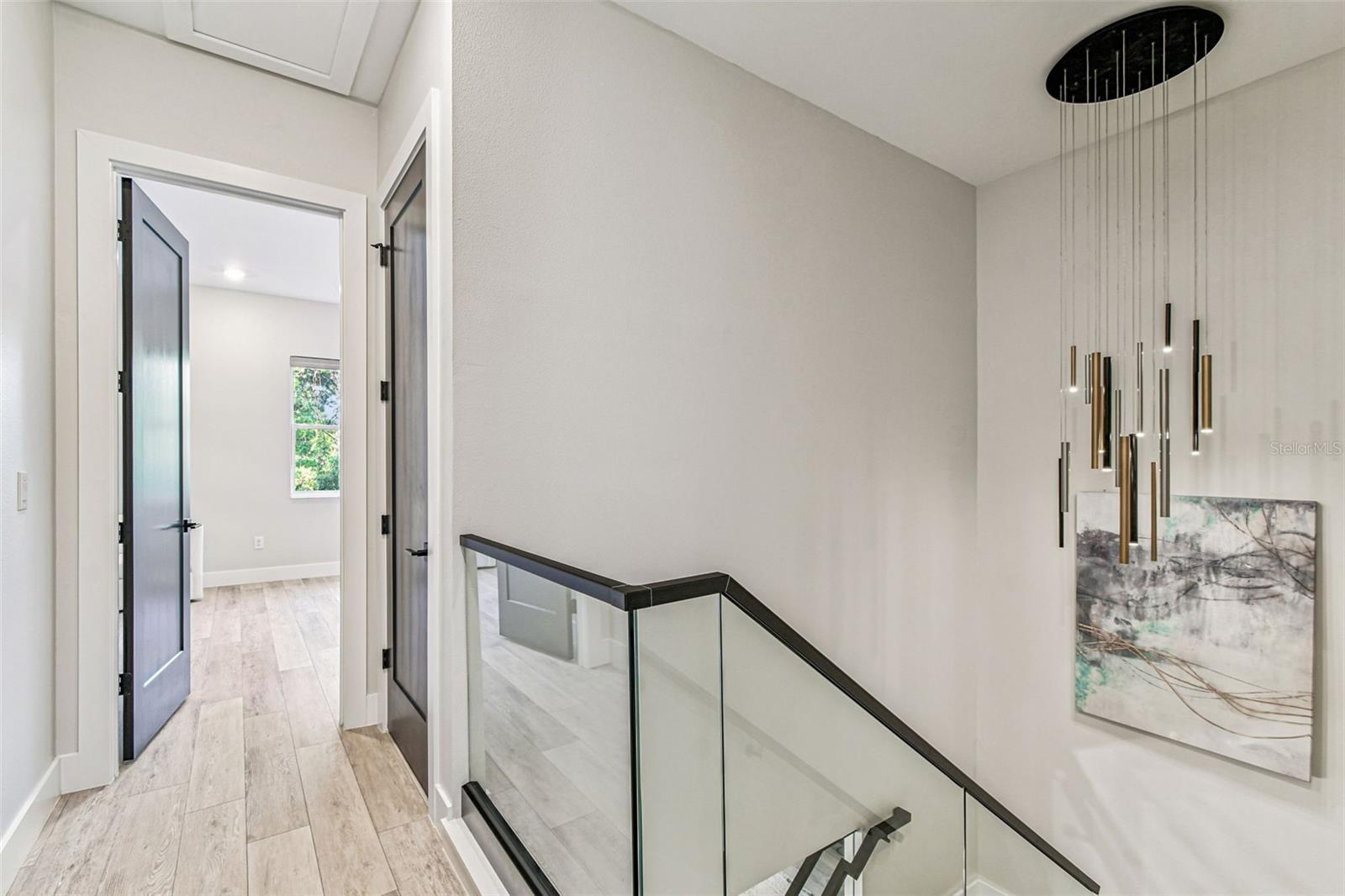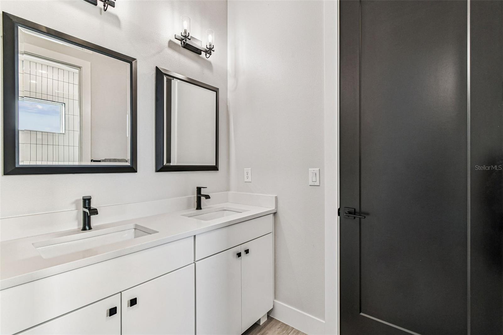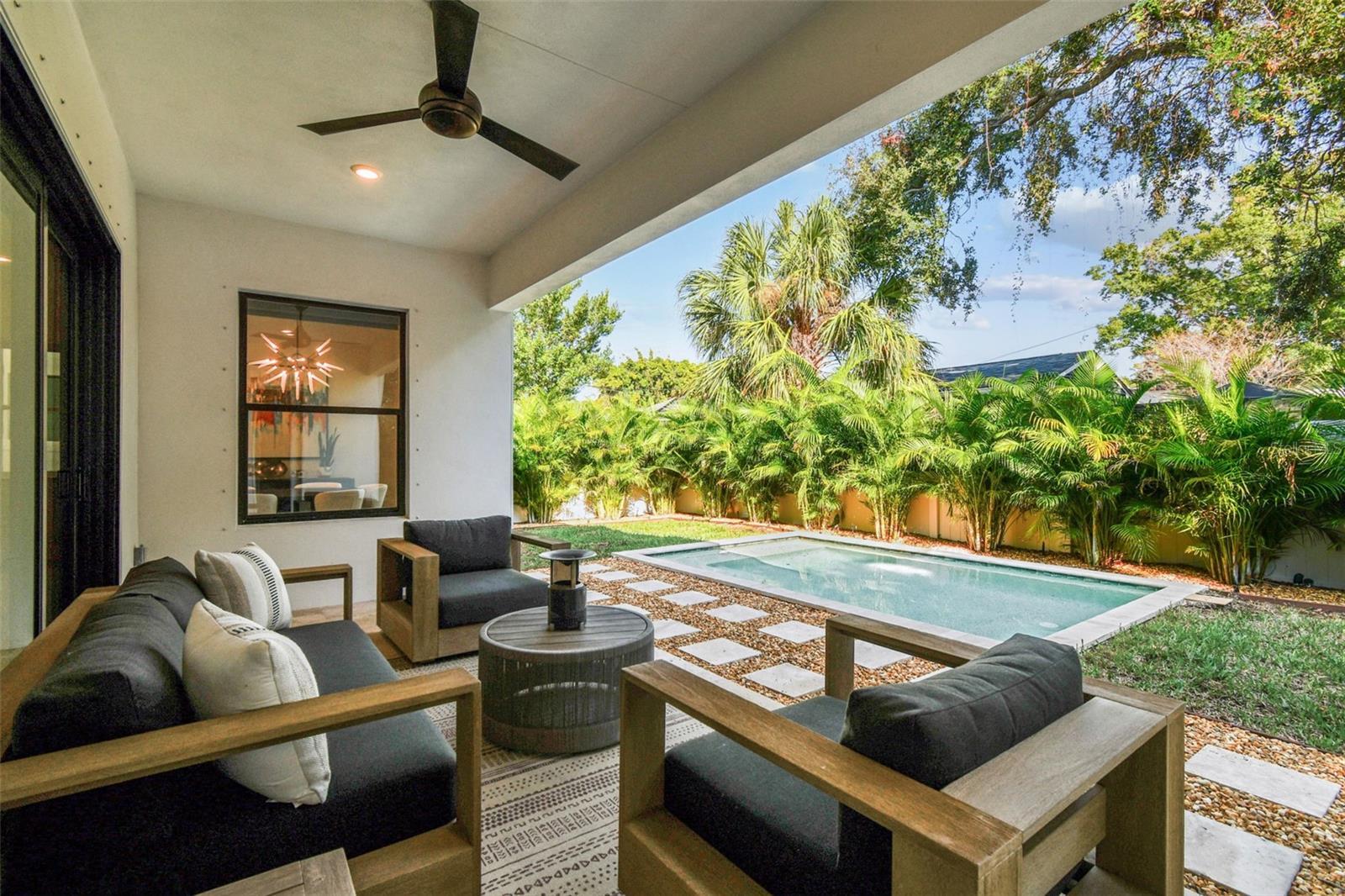 Under contract-accepting backup offers. Masterfully custom built by Schmidt Luxury Homes in the heart of South Tampa, this residence blends modern design with thoughtful, functional spaces. The main level features a stunning kitchen with stainless steel Bosch appliances and an expansive walk-in pantry with custom shelving, flowing seamlessly into the family room through oversized sliders. A walk-in dry bar and wine room with built-in shelving elevate entertaining, while the dining area is tucked into its own corner for intimate gatherings. A downstairs bedroom currently being used as a private office with glass doors and a full bath with walk-in shower complete the first floor. Upstairs, three bedrooms are complemented by a laundry room with built-in cabinetry. The primary suite is a serene retreat, showcasing a spa-like en suite with dual vanities, walk-in shower, and a striking freestanding tub. An adjoining flex space within the primary bedroom offers versatility for a secondary office, fitness studio, meditation room, or expanded closet. Two additional bedrooms share a Jack-and-Jill bath with a walk-in shower. Outdoor living is thoughtfully designed, with a covered rear patio featuring drop-down screens, an exterior half bath for pool convenience, and gas plumbing ready for a future outdoor kitchen. The professionally landscaped yard surrounds a sophisticated spool that functions as both pool and spa, supported by newer electric heating equipment. Additional highlights include a two-car garage with EV charging, remote-controlled blinds in the main living areas, on-demand natural gas water heating, a whole-house generator transfer switch, smart irrigation system, pre-wiring for security and ceiling fans, in-floor outlets in the family room, and a signed TECO project approval for future buried power lines. Move-in ready and impeccably designed, this home combines architectural integrity, modern convenience, and understated luxury in one of South Tampa’s most coveted neighborhoods. Located in the prestigious Roosevelt Coleman Plant District.