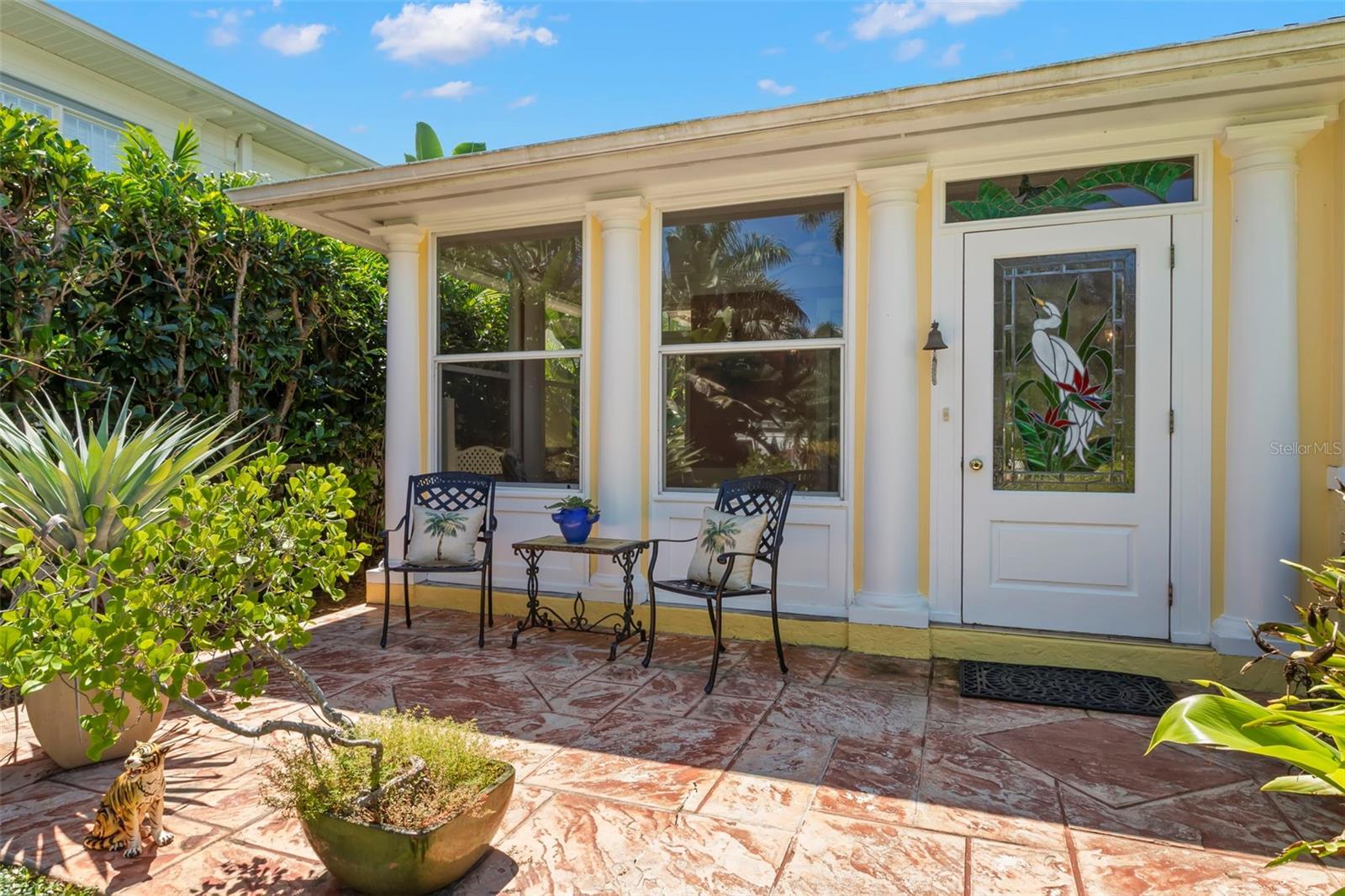 One or more photo(s) has been virtually staged. PRIME LOCATION in the highly sought-after Old Northeast neighborhood of St. Petersburg. This light and bright three-bedroom, three-bath block construction home with a den is perfectly situated just steps from the waterfront and a short stroll to vibrant downtown St. Petersburg. Nestled on a spacious 84 x 110 prestigious corner lot, the property boasts lush tropical gardens and multiple covered and outdoor seating areas, perfect for enjoying the best of Florida living. While the home has been updated over the years, it presents a wonderful opportunity for its next owner to make this location their own. The downstairs features an open and spacious layout, ideal for entertaining, including a large living room, dining room, sunroom, den, kitchen, and a convenient bedroom with an en-suite bath. Bringing in groceries is a breeze with direct access from the attached two-car garage into the home or the laundry room, which offers a sink with folding counter and ample storage. Additionally, a wet bar with built-in cabinets and a wine cooler enhances the entertaining possibilities. Upstairs highlights include a large primary suite with a spacious walk-in closet, shower and soaking tub, and a second bedroom with a full ensuite bath. Plenty of parking is available in the oversized two-car garage or on the parking pad behind with alley access. Schedule a private showing to fully appreciate this unique property in a great location!