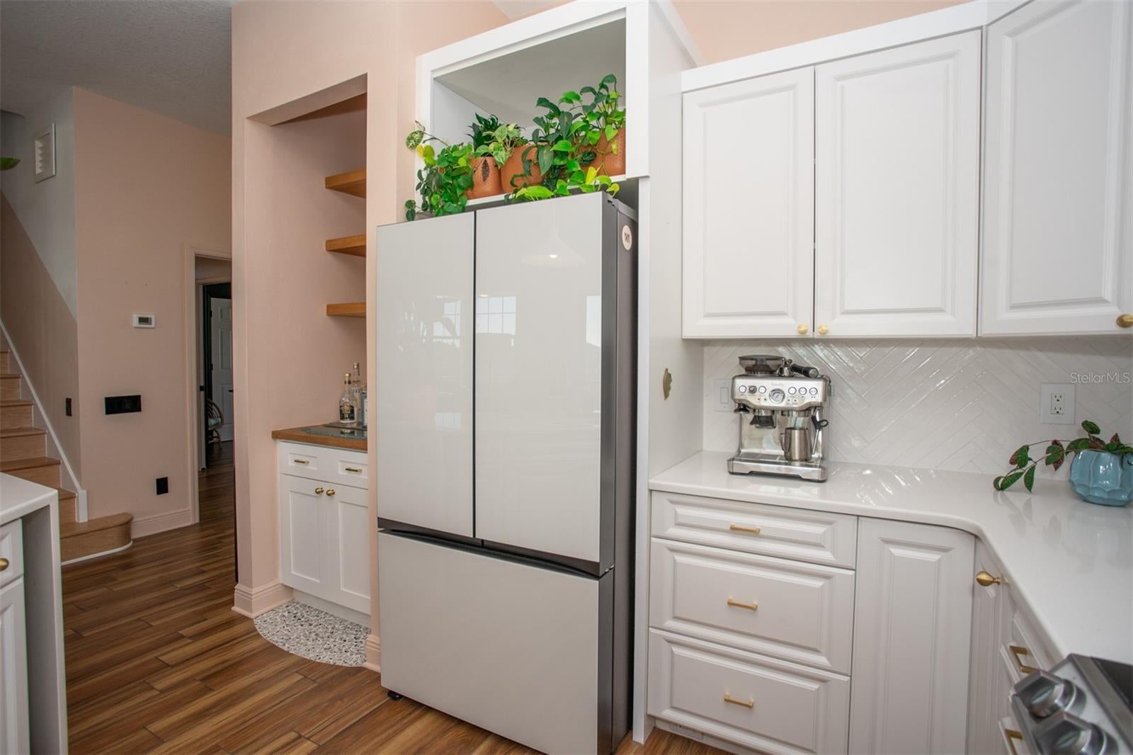 - Built-in Features, Ceiling Fans(s), Dry Bar, High Ceilings, L Dining, Open Floorplan, PrimaryBedroom Upstairs, Solid Wood Cabinets, Stone Counters, Thermostat, Walk-In Closet(s), Window Treatments