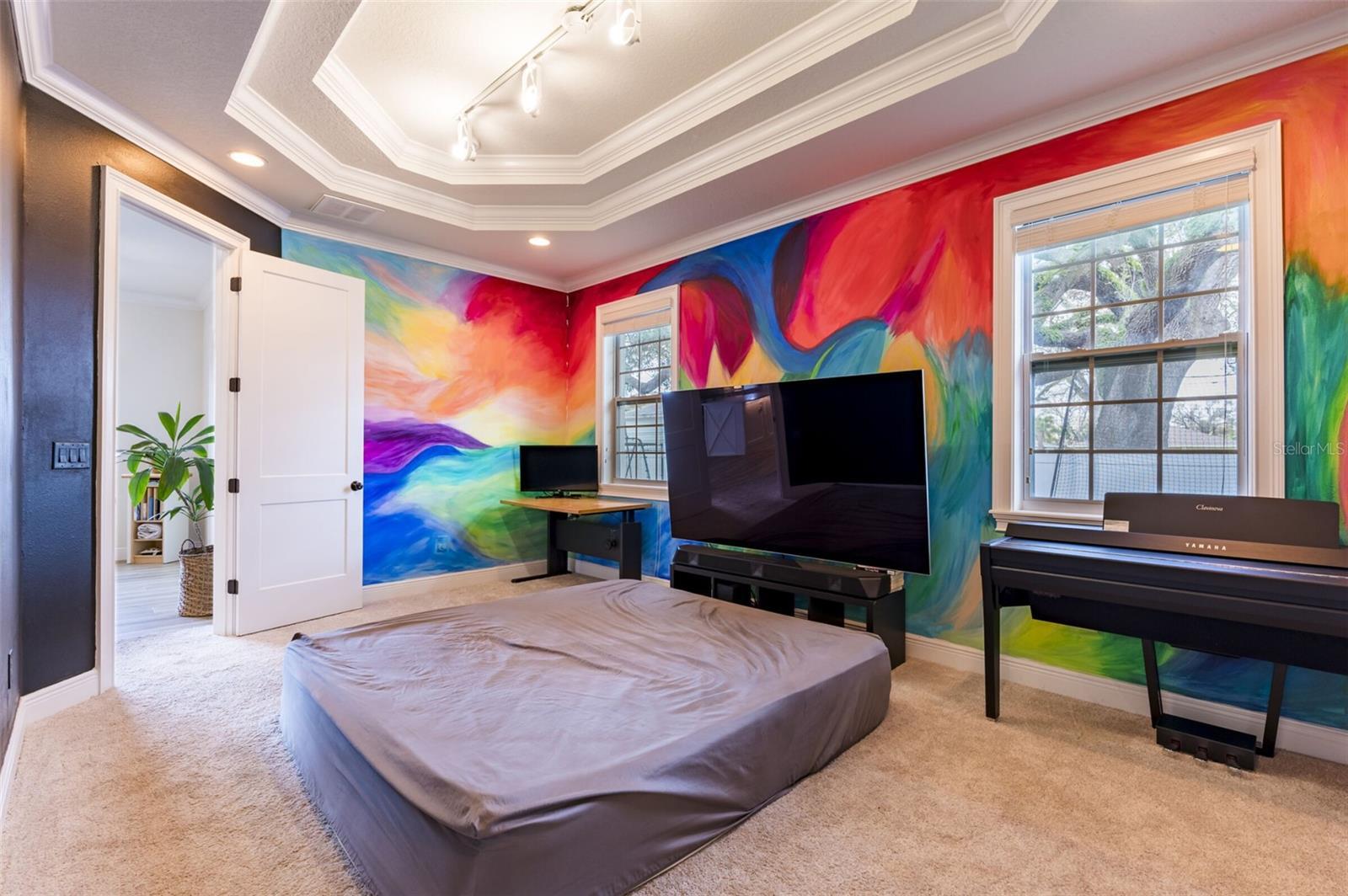 - Crown Molding, High Ceilings, Kitchen/Family Room Combo, Living Room/Dining Room Combo, Open Floorplan, Thermostat, Tray Ceiling(s), Walk-In Closet(s)
