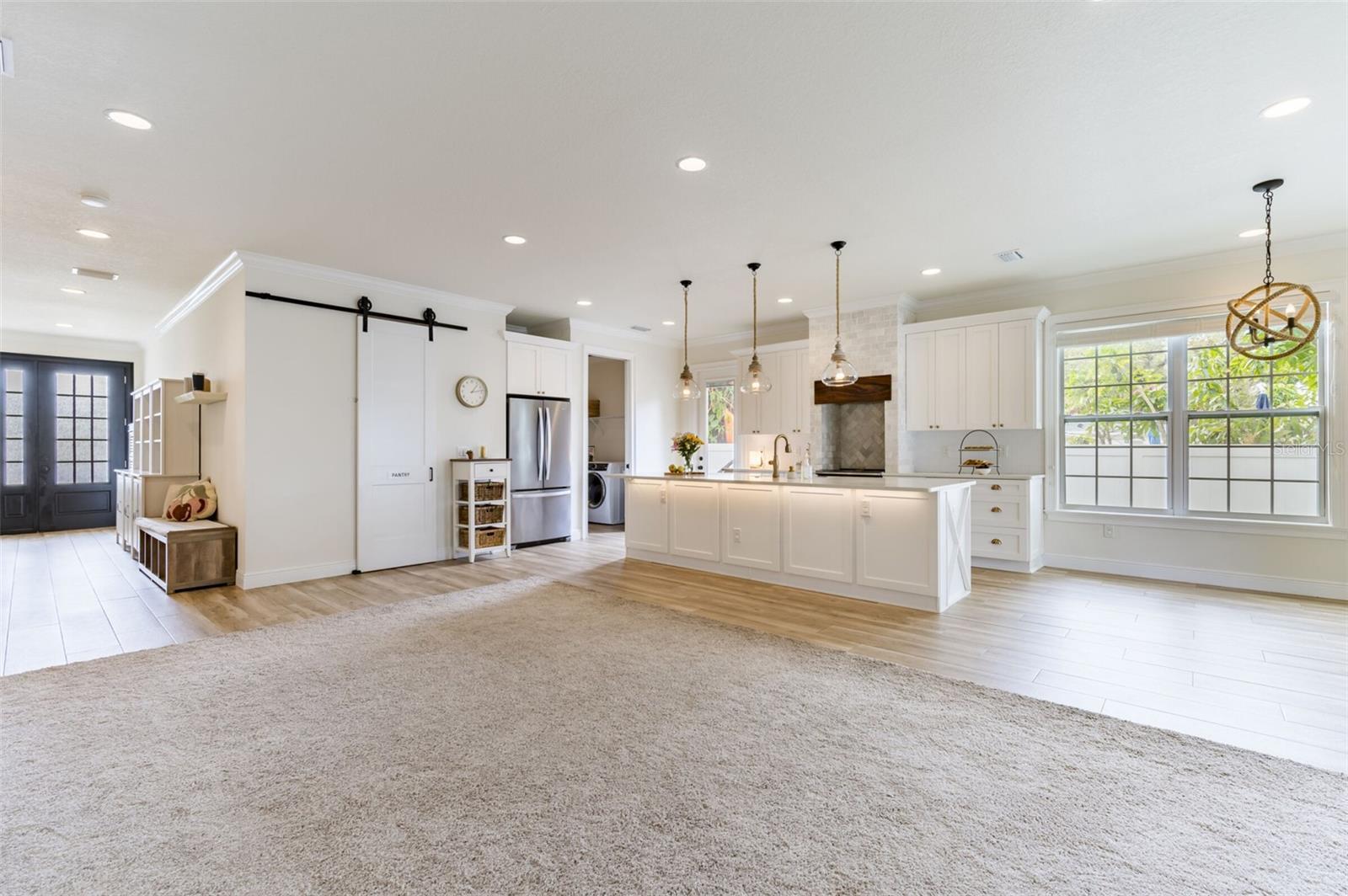 Welcome to your dream home! Nestled in the highly desirable Macfarlane Park & Midtown Tampa area, this 2018 CUSTOM-built property combines modern design, luxurious, thoughtful upgrades, and an exceptional location, just minutes from Tampa’s premier dining, shopping & entertainment. As you step inside, you’ll find the first bedroom or office, bathed in natural light from its large, south-facing bay windows and secluded from the main living area. Moving forward down the spacious hallway, the home opens into a bright, west-facing main living area that seamlessly unites the living, kitchen, enclosed BONUS room & dining spaces—perfect for both cozy evenings and lively entertaining. Beyond this central living space, two additional bedrooms branch off with a shared full bath, while the expansive master suite occupies the rear of the home, offering extra privacy and comfort. MODERN OPEN-CONCEPT LAYOUT - Seamless flow between an oversized living room, dining area, & kitchen creating a spacious and inviting floor plan. High 9.5’ ceilings for an open, airy feel. ELEGANT FINISHES THROUGHOUT - Premium 5” crown molding AND floorboards throughout the entire home. Matching crown molding on cabinetry and ALL windows & doors, adding a cohesive look. Elite, 47” x 9” wood-look tile flooring in the main areas and bathrooms for durability & style. Extra-large front bay windows. Master-suite tray ceiling. CHEF’S DREAM GOURMET KITCHEN - Top-end stainless steel appliances, luxurious quartz countertops, spacious 11’ x 4’ island, farmhouse apron sink, 42” cabinets w/ roll-out shelves, soft-close doors & drawers. A show-stopping custom chimney hood framed in elegant brick-style marble & wood accent from countertop to ceiling, adding timeless charm & sophistication. Full glass door opens to side patio, seamlessly integrating indoor cooking & outdoor entertaining while also flooding the kitchen w/ natural light. Extra-large west-facing 6’ by 6’ picture window off the kitchen, bathing the space in incredible natural light. Oversized pantry for all your storage needs. OUTDOOR OASIS - Low-maintenance backyard, beautifully landscaped w/ high-end turf, fully enclosed by a 7’ privacy fence, ideal for pets & outdoor activities, w/ a paver patio on side of the home, perfect for grilling off the kitchen. Covered back patio off the kitchen extends the kitchen’s flooring & features elegant French doors for seamless indoor/outdoor living. Majestic neighboring trees provide year-round shade, creating a comfortable outdoor living space year-round. ADDITIONAL FEATURES - Frameless glass master bath shower w/ rain shower, wall shower, & hand wand for a true spa-like experience. Extra-high gables & paver driveway for gorgeous curb appeal. Smart home energy efficiency w/ hurricane windows, Ecobee thermostat & Ring doorbell. Ample storage options including expansive, spacious master closet, bonus room, exterior shed & attic access in the garage. Window grilles throughout creating a timeless architectural touch. New gutter guards. Garage gym ready featuring epoxy floor, full-wall mirrors & custom paint. NO FLOOD INSURANCE required. PRIME LOCATION! No HOA. With quick access to the best of Tampa, ~1 mile to Midtown Tampa, Raymond James Stadium, International Plaza, Al Lopez Park, ~3-4 miles to Tampa International Airport, Downtown Tampa, and quick access to I-275, this hidden gem still feels like a private retreat—offering a serene escape right in the heart of the city.