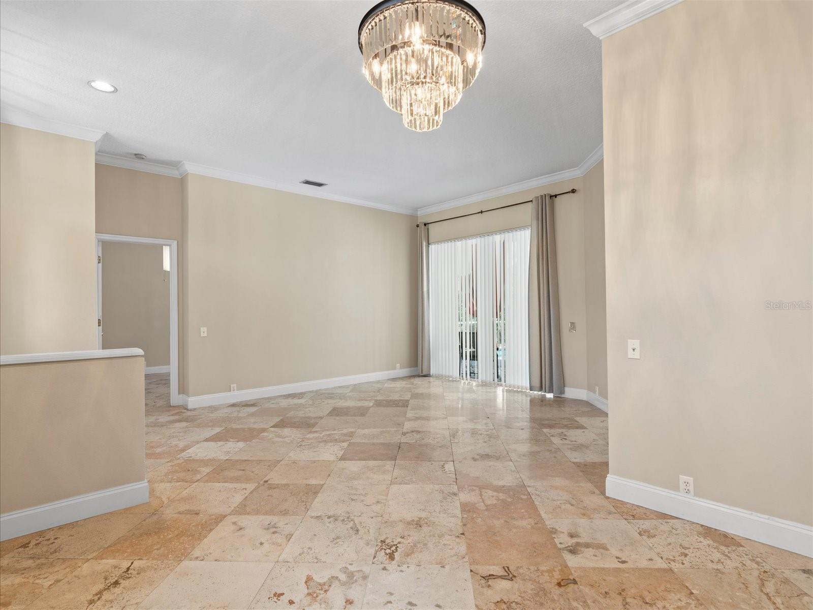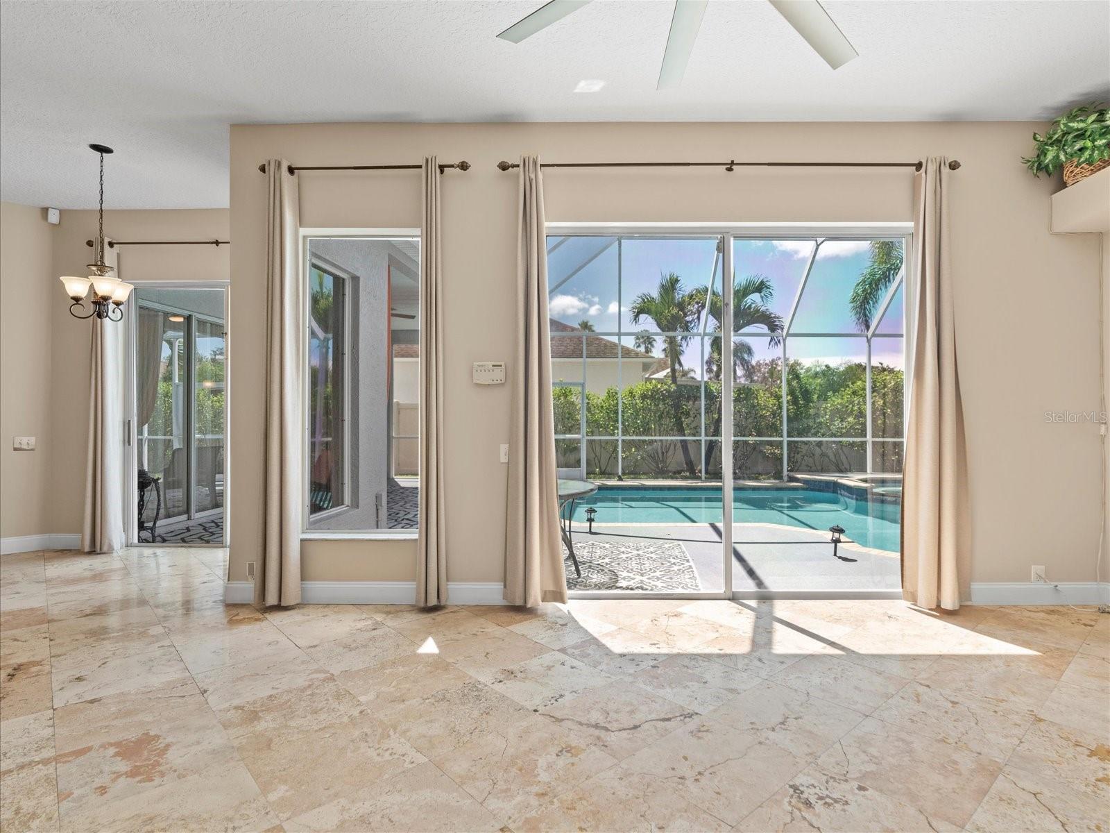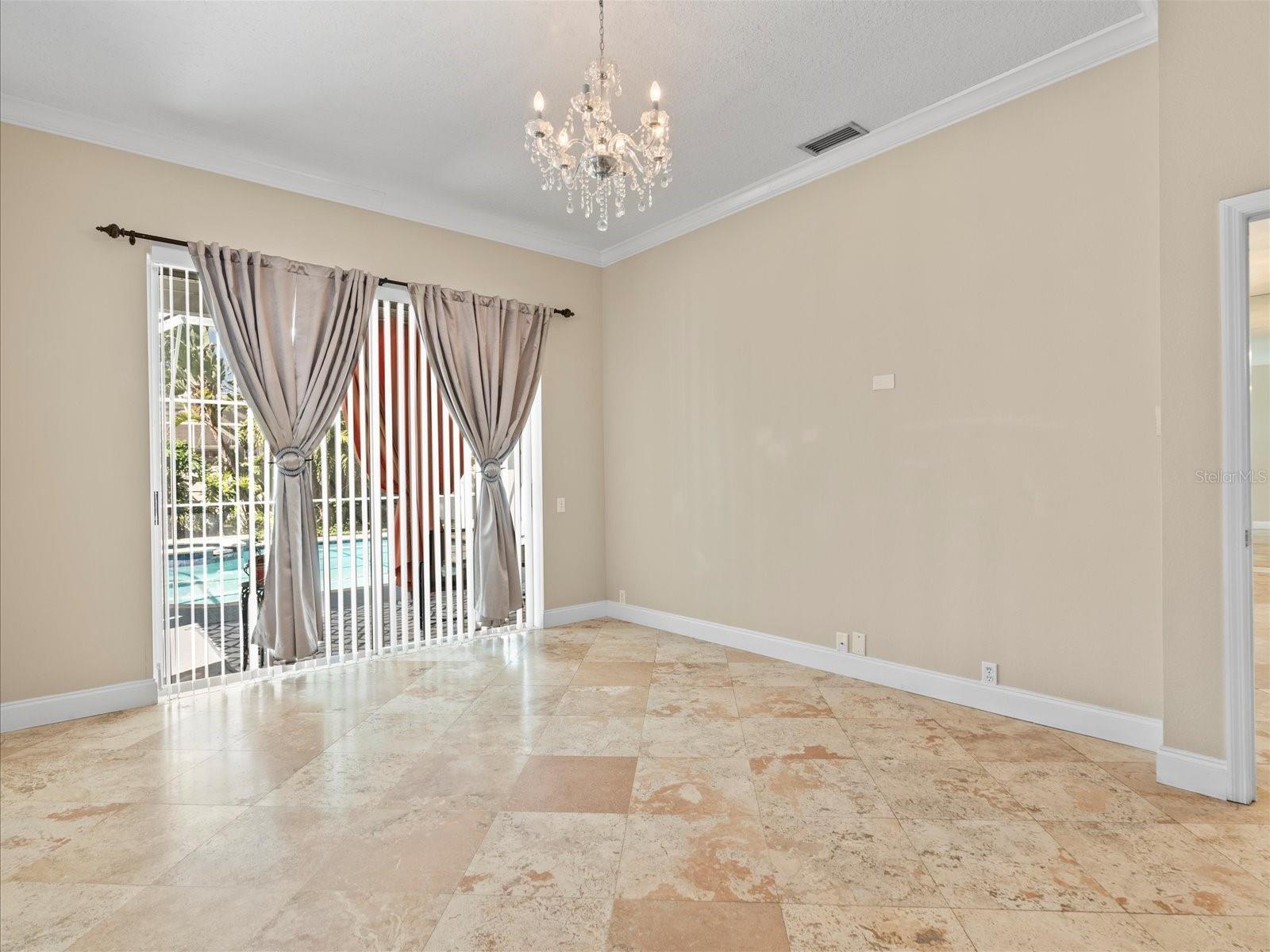 Gorgeously updated pool home in the sought-after subdivision of Woodbay at Westchase! This beautiful home boasts a grand foyer entry into the formal living room with travertine floors and crown molding, gracious formal dining room w/newer chandelier and travertine floors, gourmet, upgraded eat-in kitchen with granite countertops and center island, staggered, paneled, custom, 42” maple cabinetry with LED under counter lighting, mosaic backsplash, pearl nickel fixtures, recess lighting, and stainless steel appliances including a 4 burner GAS range, dynamic, oversized family room with travertine flooring and modern ceiling fan with light kit, plant shelving and dual sliders leading to the gleaming, caged, saltwater pool and spa and to the lusciously landscaped, privacy fenced backyard, master bedroom with gorgeous drop chandelier, travertine floors, dual sliders and double walk in closets with custom built-ins, master bath with garden tub, make-up vanity, double vessel sinks, mosaic wall back drop, custom mirrors, walk in shower with 2 shower heads and mosaic inserts, spacious guest rooms with travertine floor and ceiling fans, guest bath with modern vanity and custom mirror, pool bath with vessel sink, newer vanity and more! Owner maintains pool and yard maintenance for tenant's convenience.