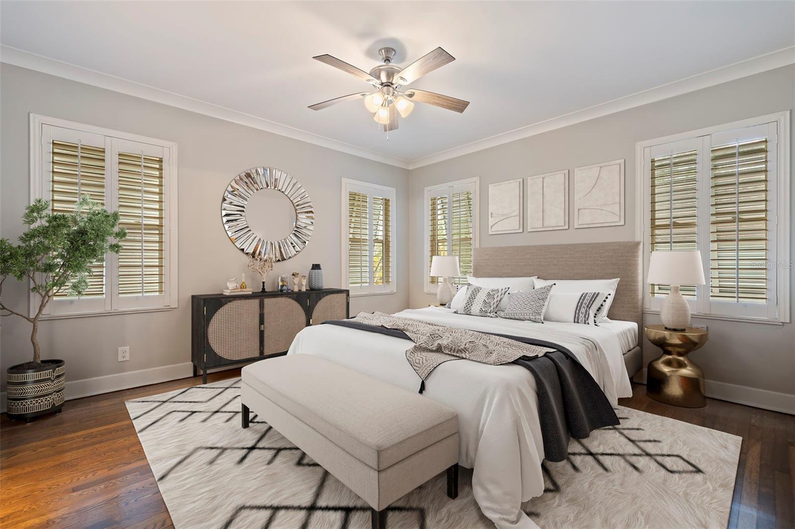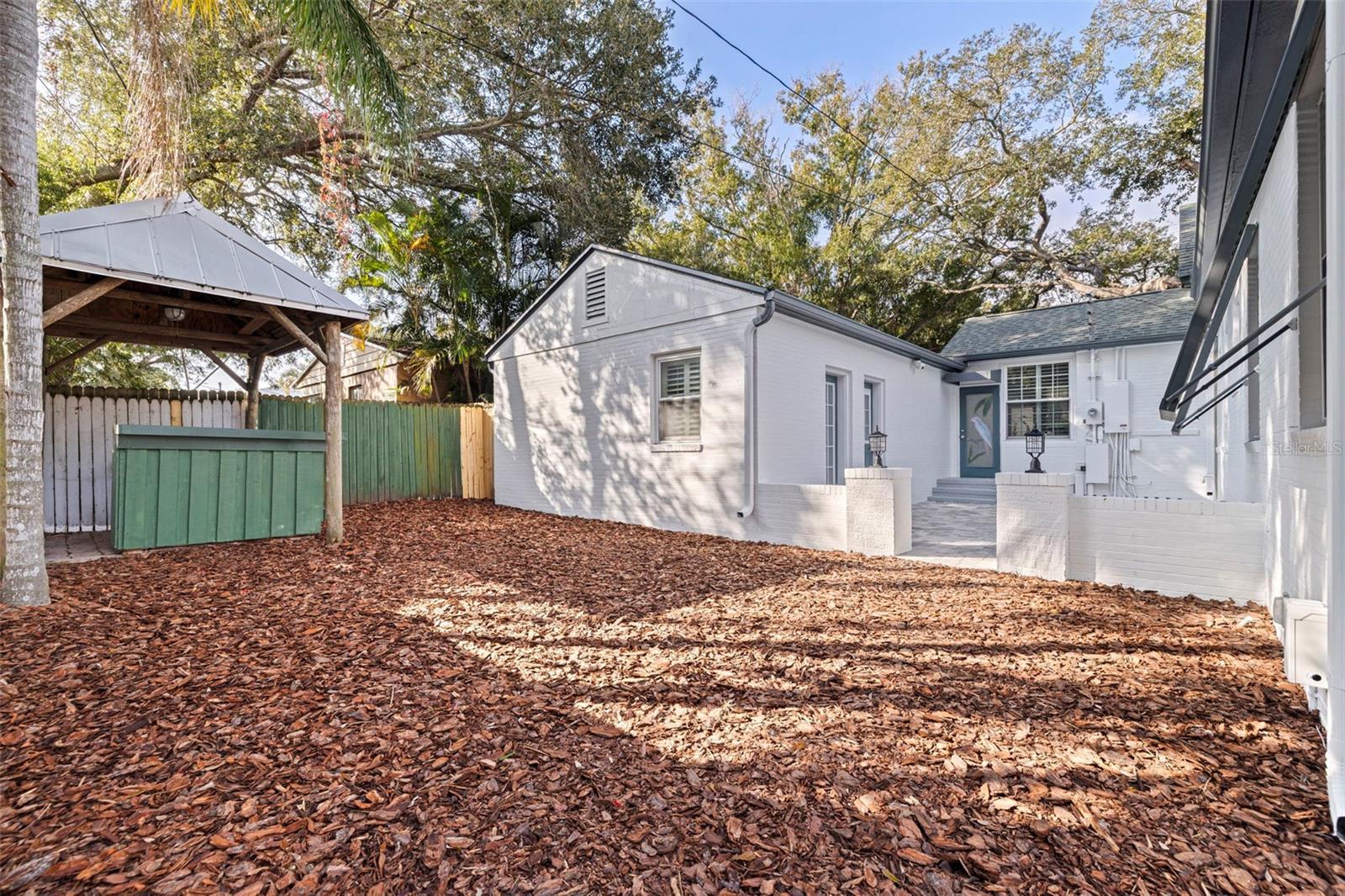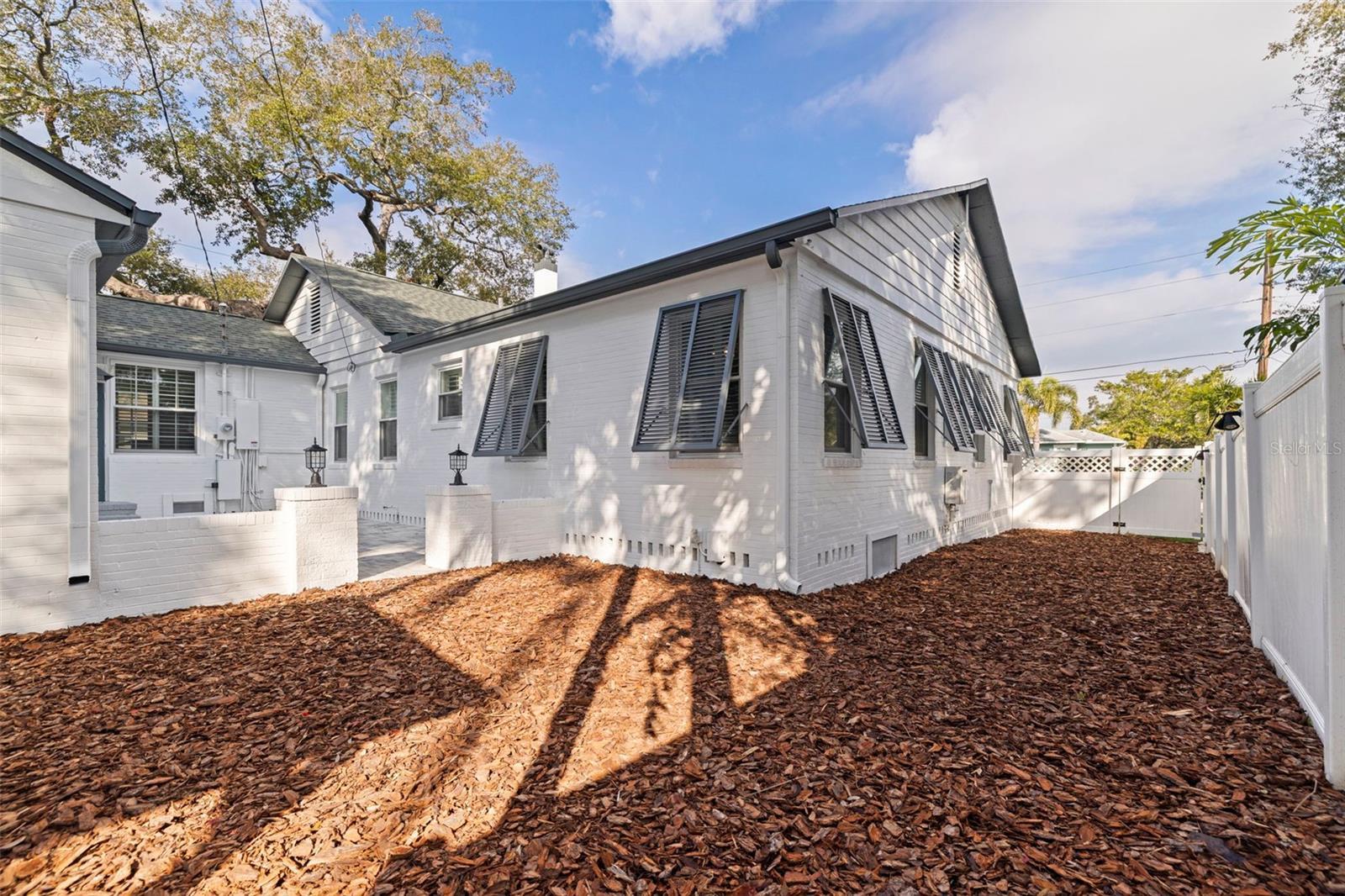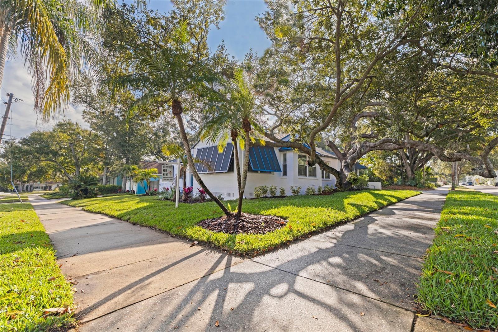 One or more photo(s) has been virtually staged. Immaculate single-level residence located just one block from Coffee Pot Bayou in Granada Terrace within Historic Old Northeast. Situated on a corner lot, this 4-bedroom, 4-bathroom home with an attached 1.5-car garage blends historic character with modern luxury finishes and the convenience of single-story living. The home features sun-filled living spaces, gleaming hardwood floors, a gas fireplace, formal dining room, and flexible sunroom. The spacious kitchen includes two ranges, refrigerator, dishwasher, and wine cooler—ideal for cooking and entertaining. All bedrooms include private en-suite bathrooms, providing exceptional comfort and privacy. The fourth bedroom and bath are separate from the main house, creating an ideal guest suite, office, studio, or in-law/visitor retreat. The freshly painted exterior opens to a large private courtyard with new pavers designed for outdoor entertaining. Recent upgrades include a NEW A/C system installed in 2025, NEW landscaping with fresh sod and sprinkler system, and a powerful 22-kW whole-home generator. No flood insurance required. Located minutes from vibrant downtown St. Petersburg, dining, shopping, museums, galleries, and the St. Pete Pier, and convenient to Tampa International Airport and award-winning Gulf beaches. A rare opportunity to own a single-level home in Historic Old Northeast with modern updates in a premier location.