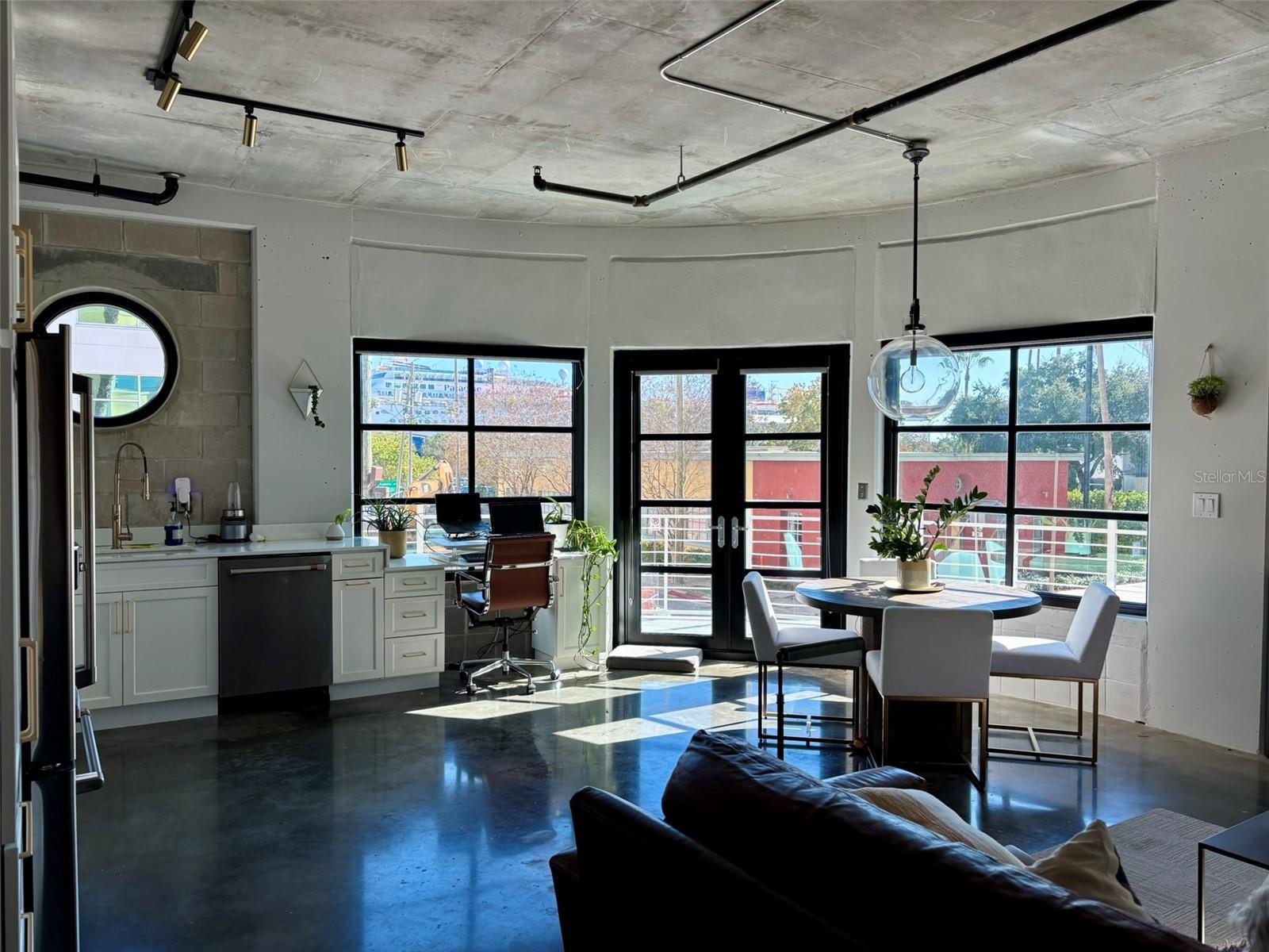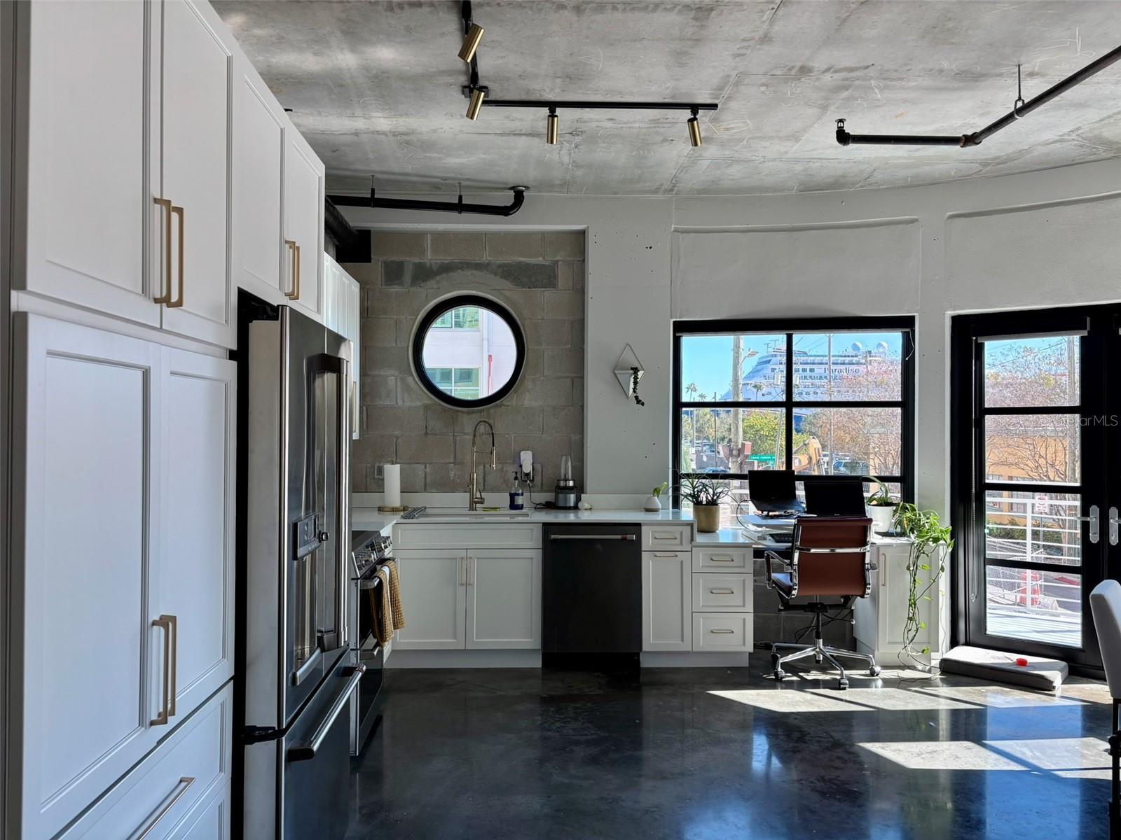 Welcome to one of Channelside’s most sought-after boutique buildings, offering a rare opportunity to lease a truly exceptional residence-- ONE OF A KIND UNIT. RENT INCLUDES EVERYTHING—an assigned garage parking space, internet, cable, water, sewer, and trash—making for effortless, all-inclusive living (tenant responsible only for electric). This beautifully renovated one-bedroom, one-and-a-half-bath home spans 925 square feet and features ONE OF THE LARGEST PRIVATE OUTDOOR SPACES IN CHANNELSIDE, making it a highly desirable and rarely available unit. Enjoy breathtaking downtown skyline and cruise ship views from both inside the residence and the expansive outdoor terrace—perfect for entertaining, unwinding, or working from home in an inspiring setting. The thoughtfully designed interior blends modern elegance with industrial character, featuring polished concrete floors, exposed brick, and freshly painted interiors accented by black ductwork and window and door frames. The renovated kitchen is a standout, showcasing white and gold cabinetry, quartz countertops, and high-end appliances, including a coveted double oven. Additional upgrades include electric window shades throughout, all designer lighting from Restoration Hardware and West Elm, a newer washer and dryer, and a newer AC system (just three years old). A built-in window workspace offers an ideal work-from-home setup. The bedroom serves as a serene retreat with custom wall coverings, elegant lighting, and a walk-in closet, complemented by additional hallway storage and a beautifully updated wood panel accent wall. Located in a secure building with a guest parking pass for no-charge street parking, this residence offers an exceptional combination of luxury, convenience, and lifestyle. With unmatched outdoor space, premium finishes, and a prime Channelside location, this is truly a standout opportunity. This residence is available March 15, 2026.