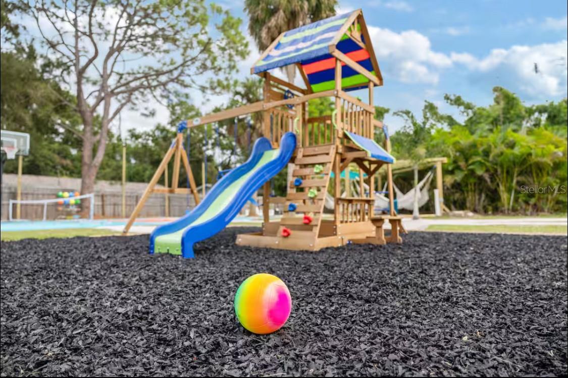 - Basketball Court, Fire Pit, Outdoor Grill, Outdoor Kitchen, Playground, Private Yard