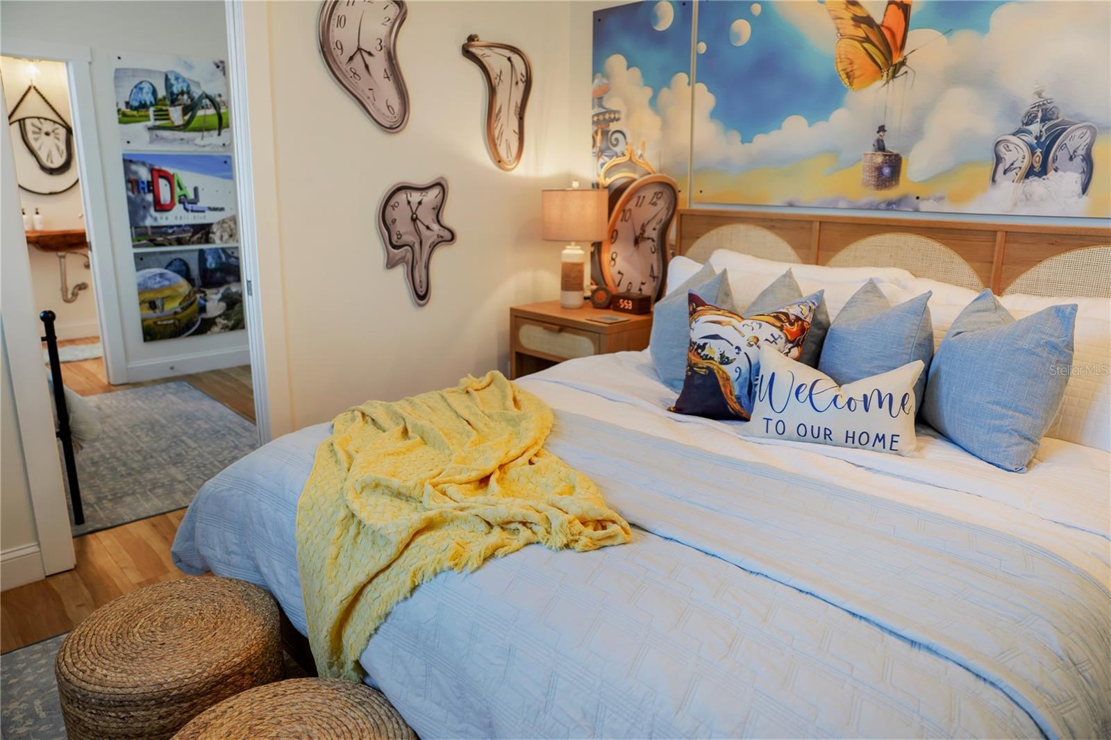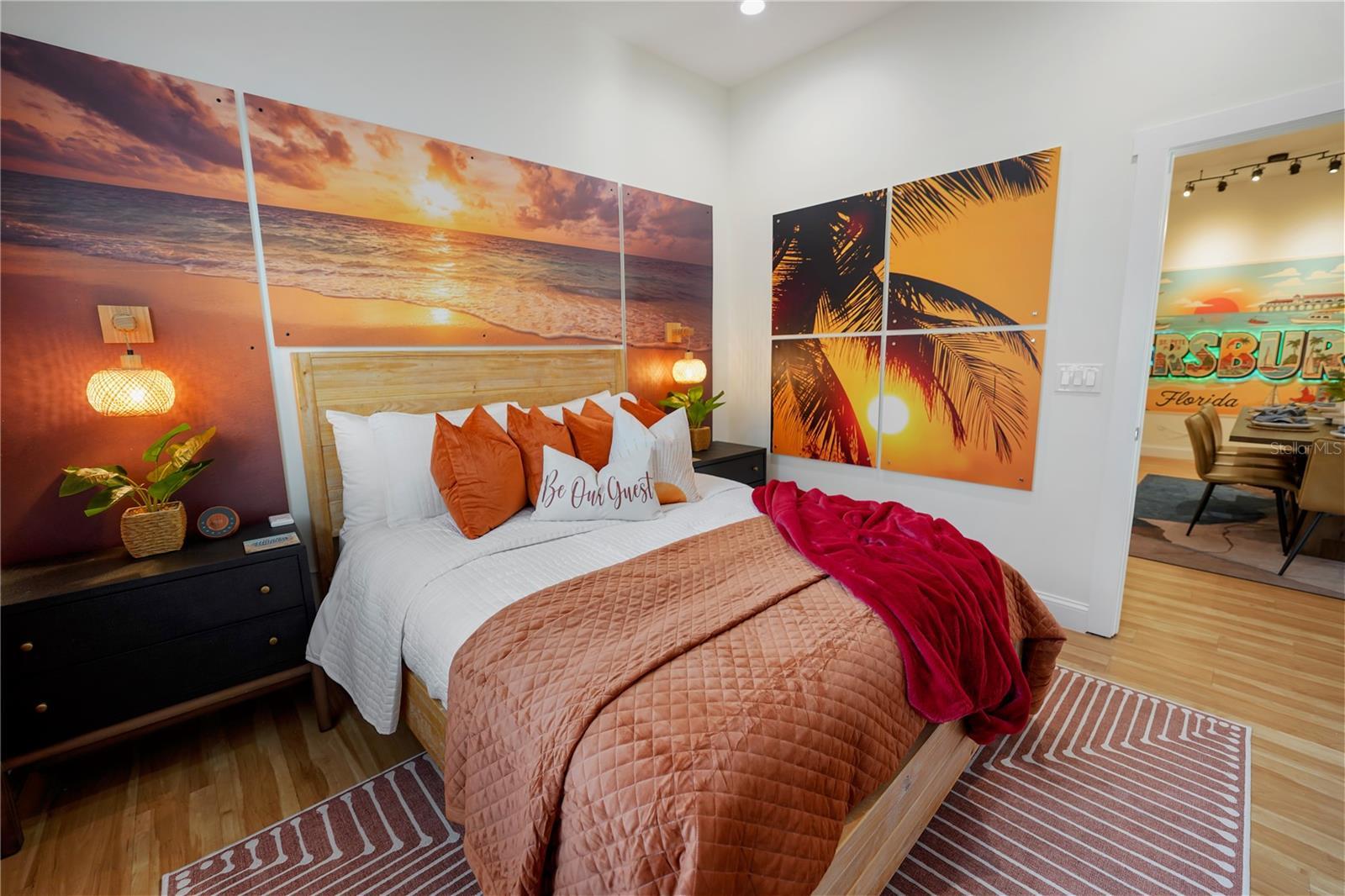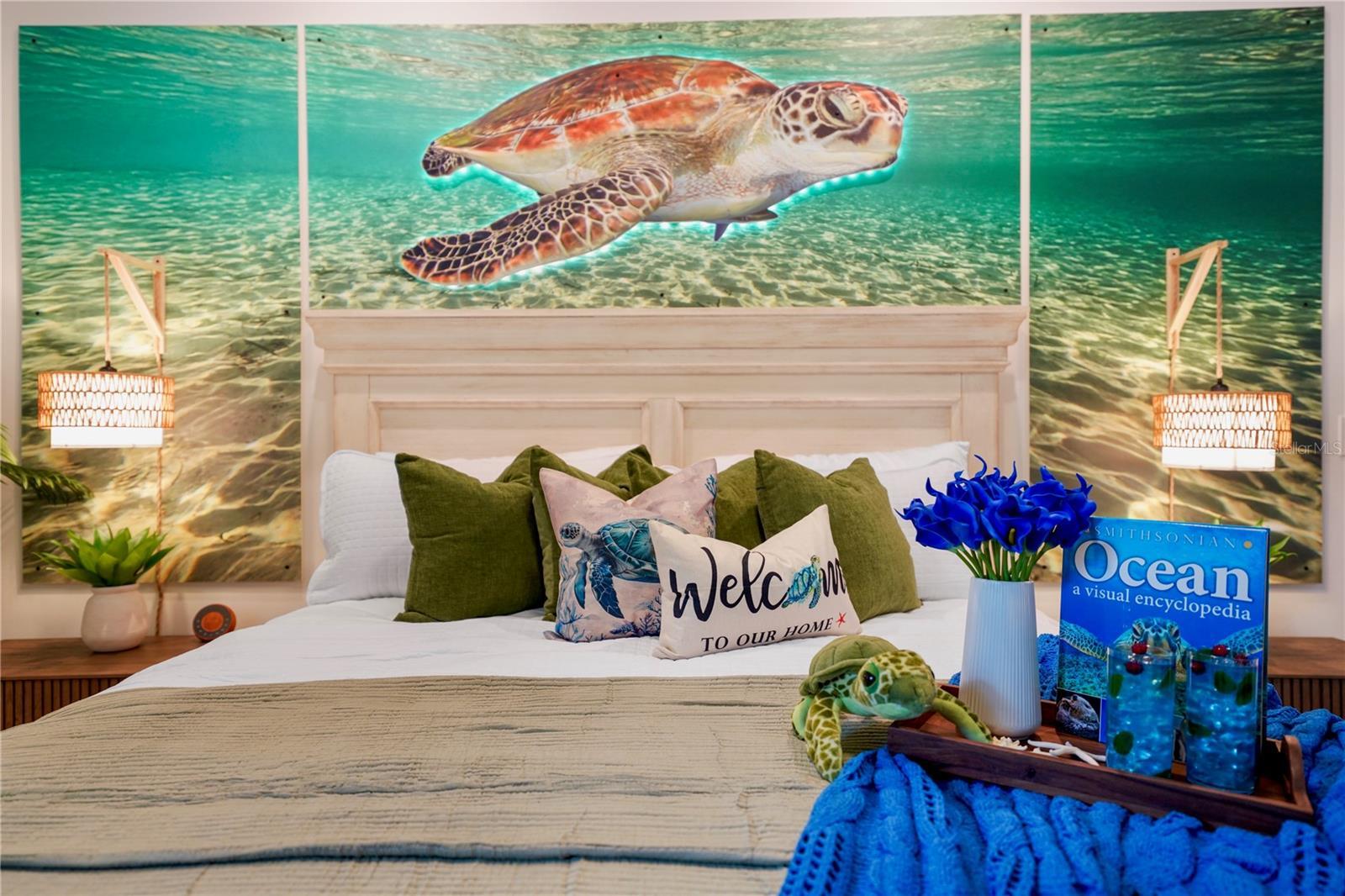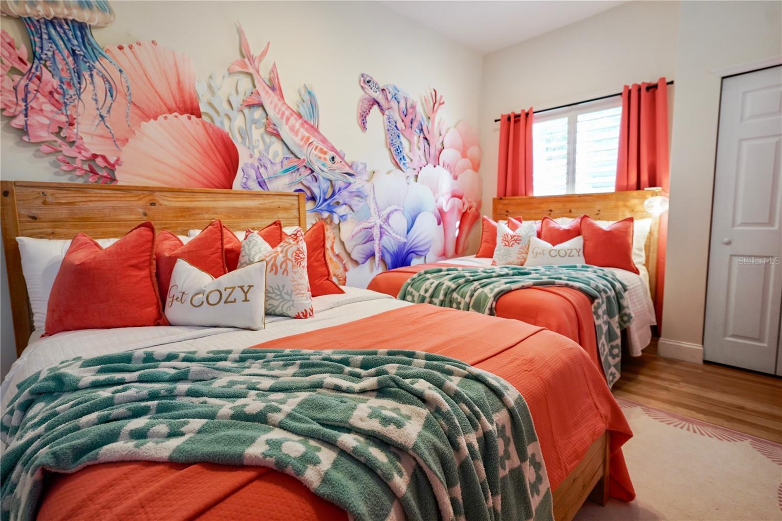 Hidden Lagoon is a one-of-a-kind tropical oasis tucked into a quiet St. Petersburg neighborhood, just minutes from world-class beaches, downtown dining, shopping, and entertainment. This exceptional five-bedroom, three-bath residence is thoughtfully designed to deliver both unforgettable family living and consistent short-term rental success. Step into a private, resort-style backyard anchored by one of the largest lagoon-style pools in Pinellas County, featuring optional seasonal heating, a soothing spa, and dramatic resort lighting for day-to-night enjoyment. The outdoor experience is further elevated by a tiki bar and BBQ pavilion with built-in gas grill and griddle, flat-screen TV, and Bluetooth sound system, creating an ideal setting for entertaining or relaxed poolside afternoons. Exterior amenities rival a true vacation destination and include a full sports court for pickleball and basketball, a custom mini-golf course, firepit lounge, bocce ball court, giant outdoor chess, a playground, and expansive patios with string lighting and multiple lounge areas, all intentionally designed to maximize guest enjoyment and rental appeal. Inside, the home features a gourmet chef’s kitchen with quartz countertops and premium stainless steel appliances, open-concept living spaces filled with natural light and designer finishes, and a dedicated arcade game nook that keeps guests of all ages entertained year-round.