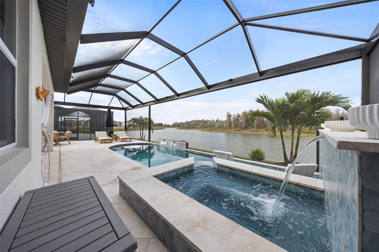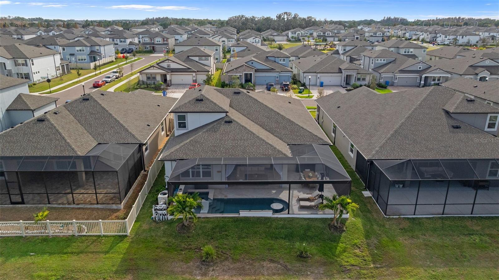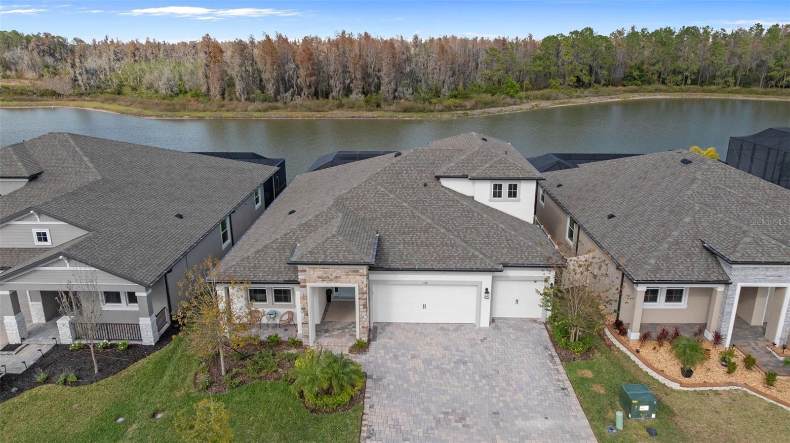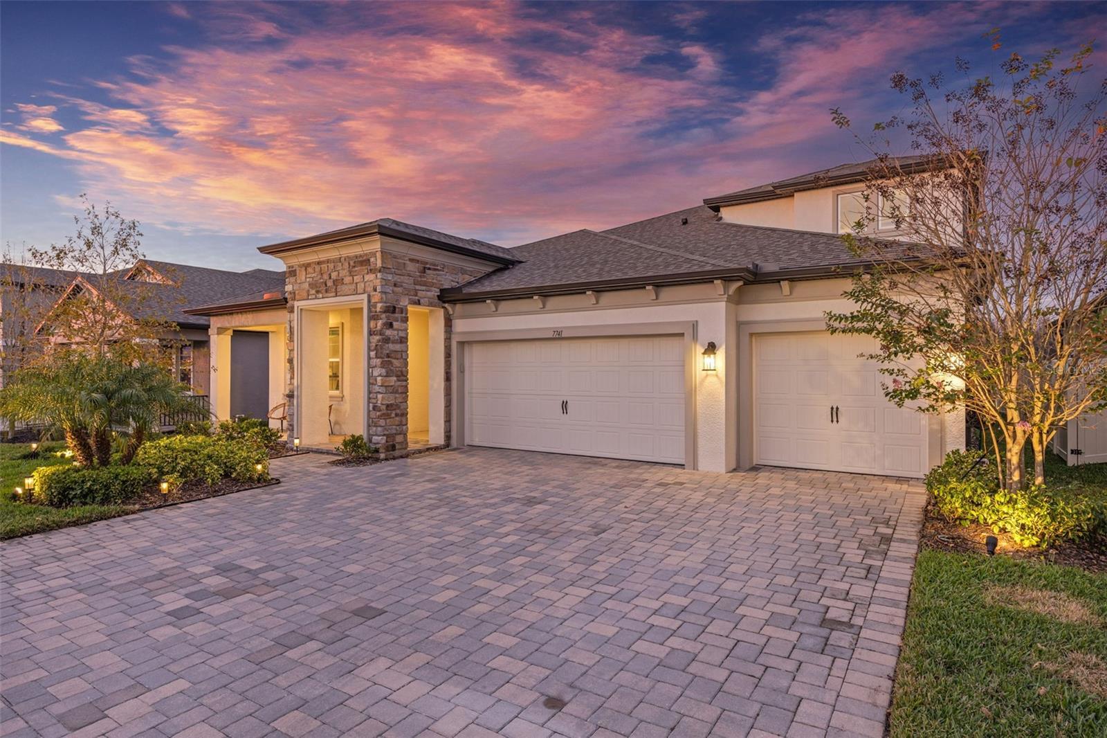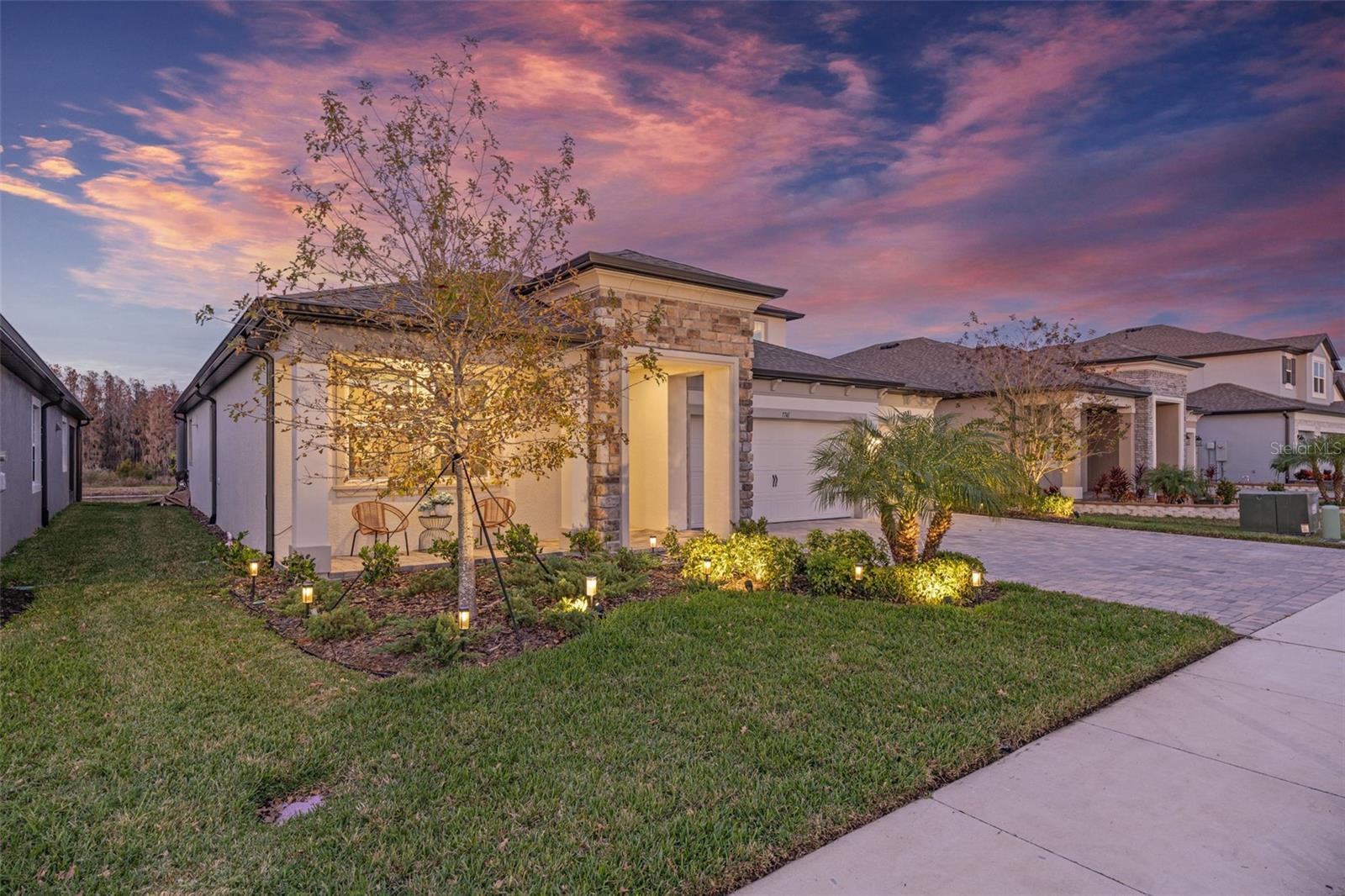 Under contract-accepting backup offers. This future home of yours is proof that you can really have it all! Welcome Home to 7741 Notched Pine Bend, Wesley Chapel, FL 33545. Whether you are looking for a primary home, investor home, or a 1031 exchange, this home is for you! This master planned community is regulated by a pass code secured 24/7 entry gate. Built in 2024 and extensively upgraded and personalized by the current owner, this home is simply breathtaking. There are no CDD or Master Association fees! HOA dues are currently only $98 a month! Over $100k in upgrades and design were invested into this house and it shows. Before you enter the home, you'll notice plenty of driveway space and a cozy front porch area. A grand foyer entry greets all who enter the front door. The spacious primary bedroom, 2.5 bathrooms and a bonus/gym/office room are located downstairs. The downstairs primary bedroom has an en suite bathroom with dual sinks, garden tub, spacious glass and tile shower stall suite, and a custom magnificent walk-in closet (you must see the pictures)! There is a family room/bonus room/loft upstairs, along with another upstairs 1 bedroom and 1 bathroom. The three car garage is incredibly spacious with storage spaces abounding. The under-stair area has been transformed into a separately glass-enclosed wine cellar, and can easily shift to another creative use. The downstairs bonus room is currently a gym and can switch easily to become your own home office suite, playroom, or many other uses. The laundry room is downstairs. Separate living, dining, and breakfast areas rest in a open layout. The kitchen is quart-adorned, full of cabinets, and has a pantry room. The custom electric fireplace brings the hearth of home with a modern flare. There is no carpet flooring in this home. Gigantic sliding glass doors can completely open the home to the vast lighted screened-in porch and a pool deck with a phenomenal vista view. This pool is amazing! It's heated, saltwater, lighted, and has sitting areas with an in-pool table! The day and night views from the outdoor deck are incomparable. Once exiting the screened in pool deck area, you are welcomed to a grassy back yard opening up to a vast private pond. Whispering Oaks Preserve is nestled in a hub easily accessible to the interstate, airport, downtown Tampa, St Petersburg, Clearwater and only 90 minutes from Disney/Orlando. The home is minutes away from Publix, Starbucks, healthcare providers, financial institutions, and shopping. When you come to visit your future home, please drive around this amazing neighborhood and surrounding amenities. This description cannot do the home justice- you simply must see the home portal website and video at: https://listings.textured.media/sites/jggeoje/unbranded and Matterport 3D walk through at: https://my.matterport.com/show/?m=kjMwZTjUqqe&brand=0&mls=1&. The serenity of this space is astounding and requires a personal visit. Please schedule a showing with your agent or contact the listing agent for a showing as soon as possible. This is the one you've been looking for! Don't forget to look through over 100 pictures, video and 3D Matterport so you can plan your future life in this amazing home. They rarely make homes like this and they are not on the market often. Furnishings are negotiable with home sale! Statements and measurements are believed accurate by Seller/Agent, however they cannot be guaranteed. Buyer and Buyer's agent must confirm all statements and measurements for themselves.