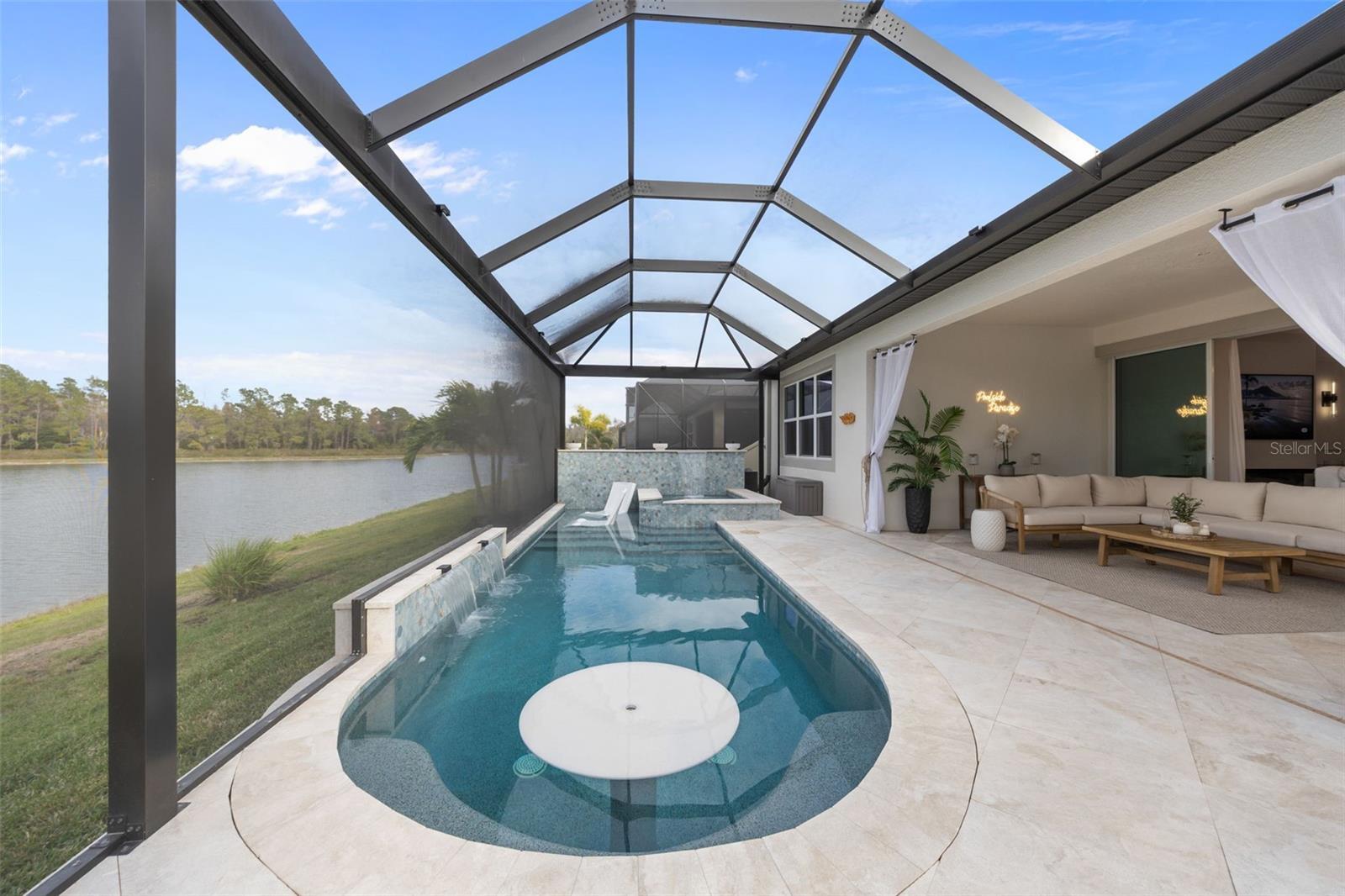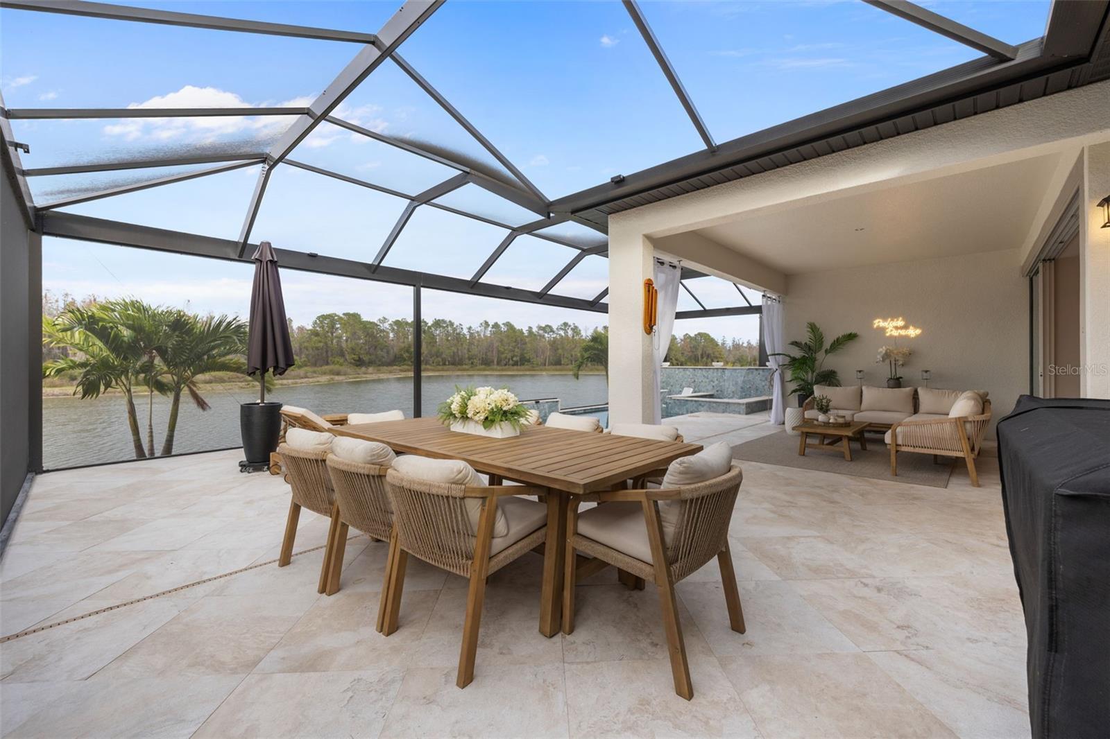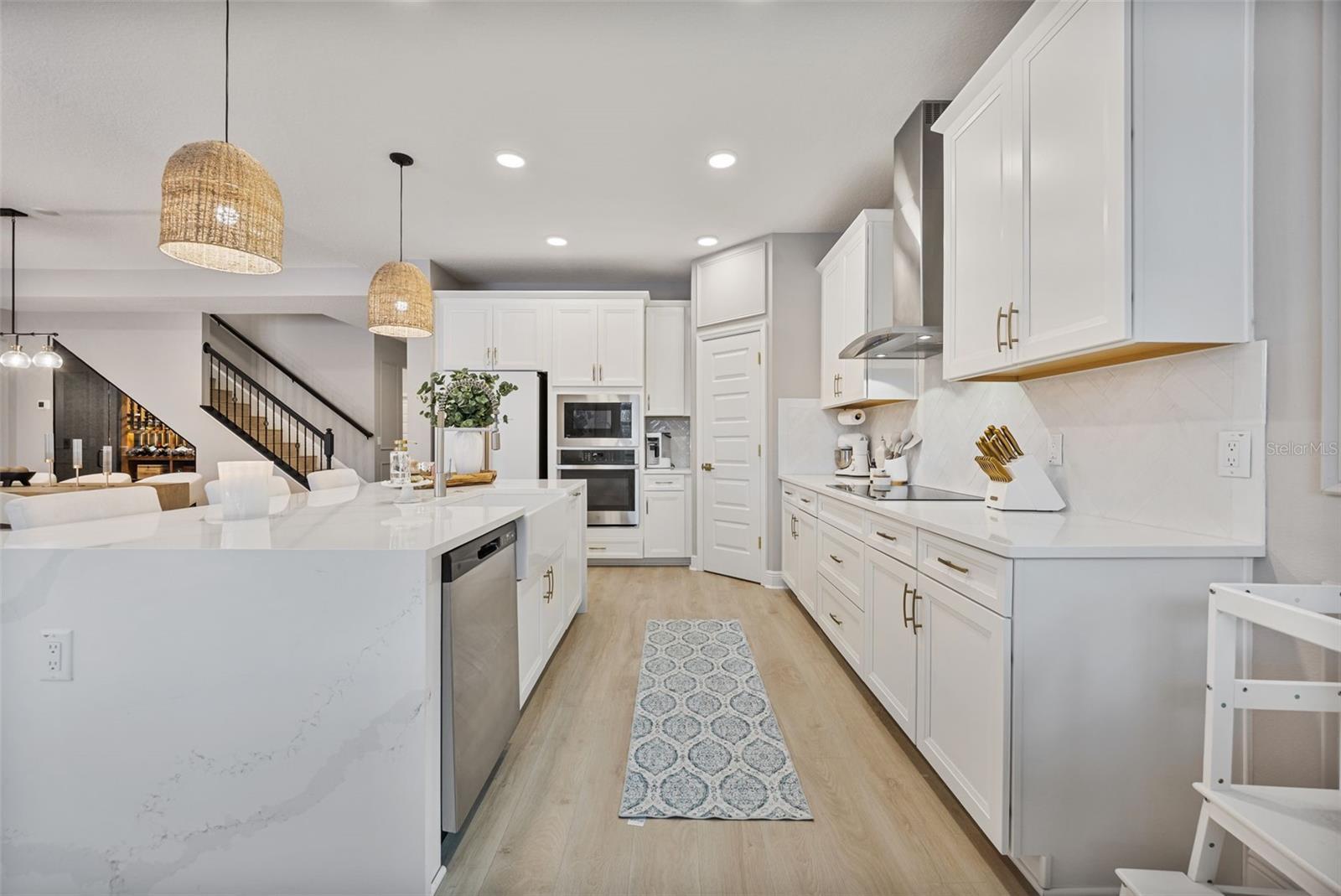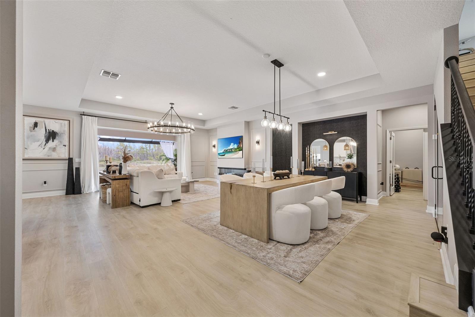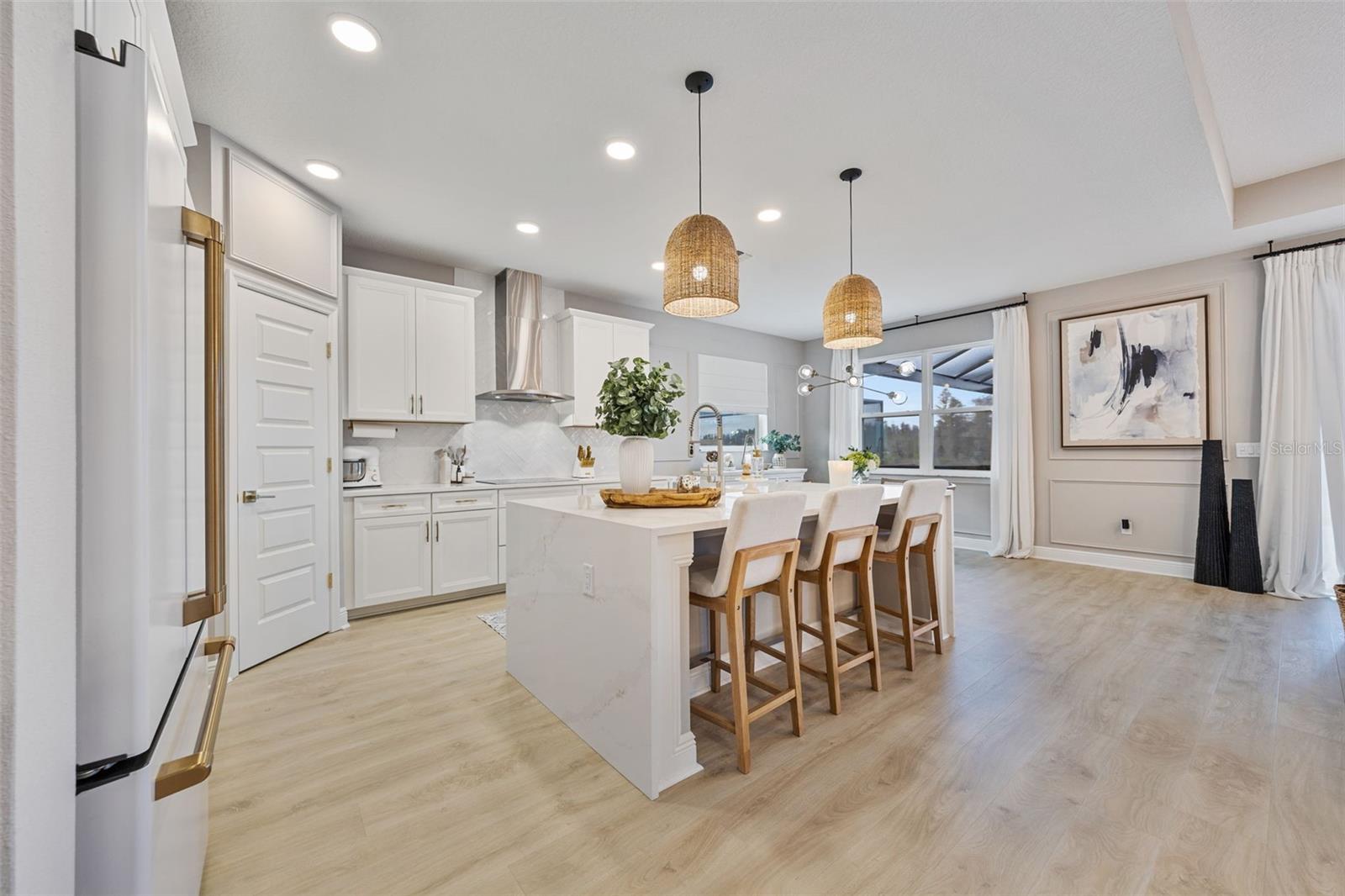 Under contract-accepting backup offers. This future home of yours is proof that you can really have it all! Welcome Home to 7741 Notched Pine Bend, Wesley Chapel, FL 33545. Whether you are looking for a primary home, investor home, or a 1031 exchange, this home is for you! This master planned community is regulated by a pass code secured 24/7 entry gate. Built in 2024 and extensively upgraded and personalized by the current owner, this home is simply breathtaking. There are no CDD or Master Association fees! HOA dues are currently only $98 a month! Over $100k in upgrades and design were invested into this house and it shows. Before you enter the home, you'll notice plenty of driveway space and a cozy front porch area. A grand foyer entry greets all who enter the front door. The spacious primary bedroom, 2.5 bathrooms and a bonus/gym/office room are located downstairs. The downstairs primary bedroom has an en suite bathroom with dual sinks, garden tub, spacious glass and tile shower stall suite, and a custom magnificent walk-in closet (you must see the pictures)! There is a family room/bonus room/loft upstairs, along with another upstairs 1 bedroom and 1 bathroom. The three car garage is incredibly spacious with storage spaces abounding. The under-stair area has been transformed into a separately glass-enclosed wine cellar, and can easily shift to another creative use. The downstairs bonus room is currently a gym and can switch easily to become your own home office suite, playroom, or many other uses. The laundry room is downstairs. Separate living, dining, and breakfast areas rest in a open layout. The kitchen is quart-adorned, full of cabinets, and has a pantry room. The custom electric fireplace brings the hearth of home with a modern flare. There is no carpet flooring in this home. Gigantic sliding glass doors can completely open the home to the vast lighted screened-in porch and a pool deck with a phenomenal vista view. This pool is amazing! It's heated, saltwater, lighted, and has sitting areas with an in-pool table! The day and night views from the outdoor deck are incomparable. Once exiting the screened in pool deck area, you are welcomed to a grassy back yard opening up to a vast private pond. Whispering Oaks Preserve is nestled in a hub easily accessible to the interstate, airport, downtown Tampa, St Petersburg, Clearwater and only 90 minutes from Disney/Orlando. The home is minutes away from Publix, Starbucks, healthcare providers, financial institutions, and shopping. When you come to visit your future home, please drive around this amazing neighborhood and surrounding amenities. This description cannot do the home justice- you simply must see the home portal website and video at: https://listings.textured.media/sites/jggeoje/unbranded and Matterport 3D walk through at: https://my.matterport.com/show/?m=kjMwZTjUqqe&brand=0&mls=1&. The serenity of this space is astounding and requires a personal visit. Please schedule a showing with your agent or contact the listing agent for a showing as soon as possible. This is the one you've been looking for! Don't forget to look through over 100 pictures, video and 3D Matterport so you can plan your future life in this amazing home. They rarely make homes like this and they are not on the market often. Furnishings are negotiable with home sale! Statements and measurements are believed accurate by Seller/Agent, however they cannot be guaranteed. Buyer and Buyer's agent must confirm all statements and measurements for themselves.