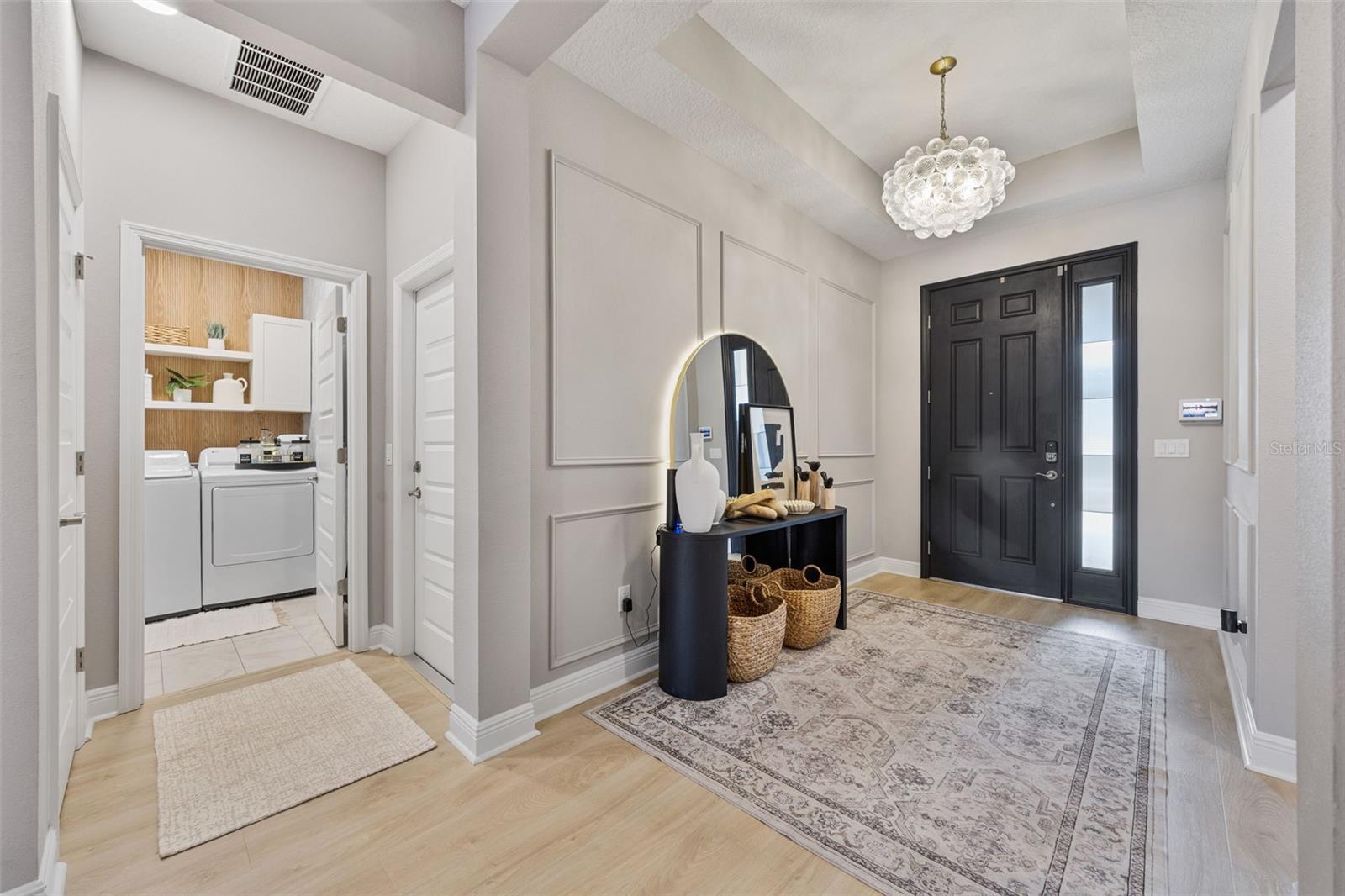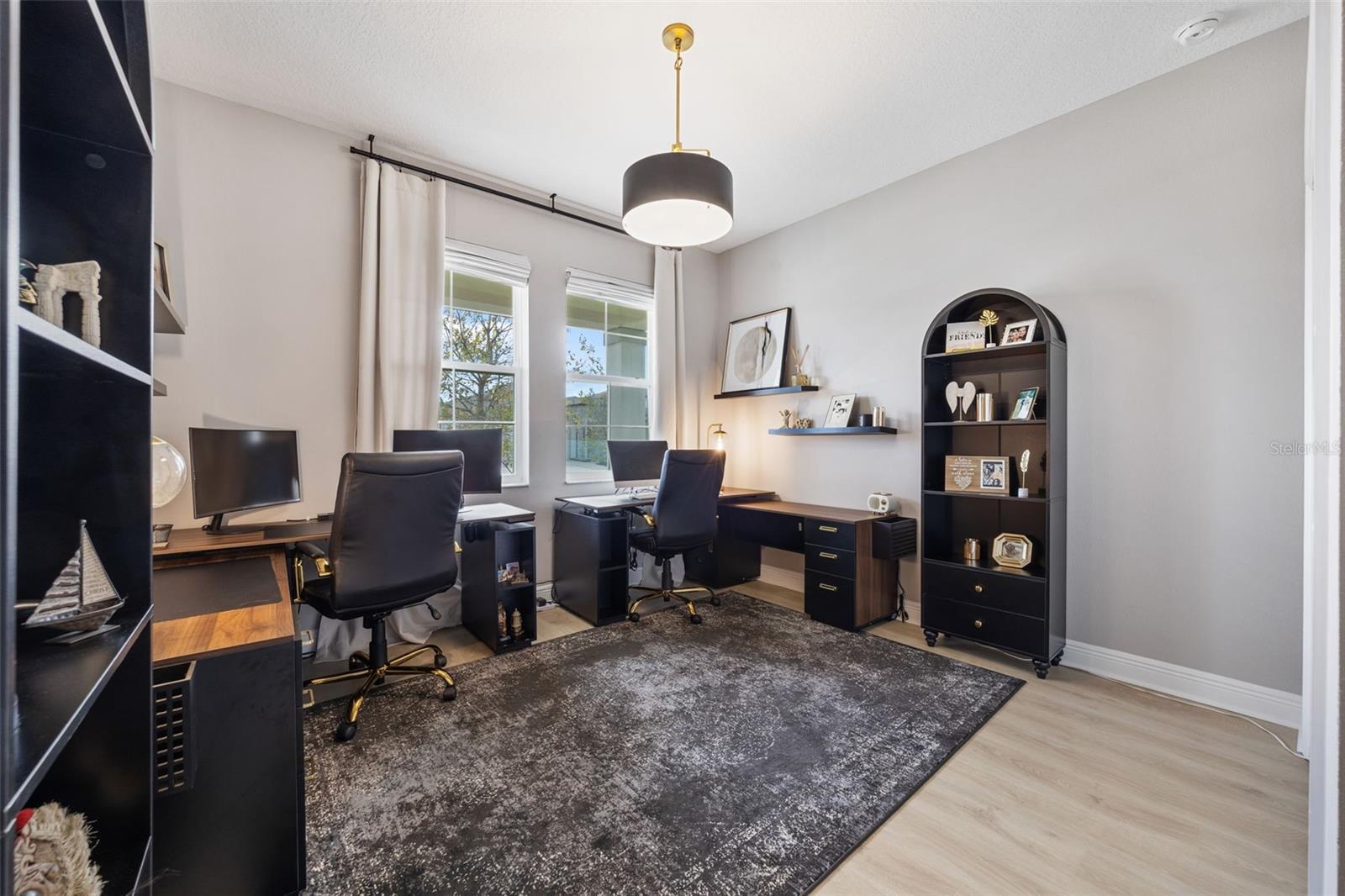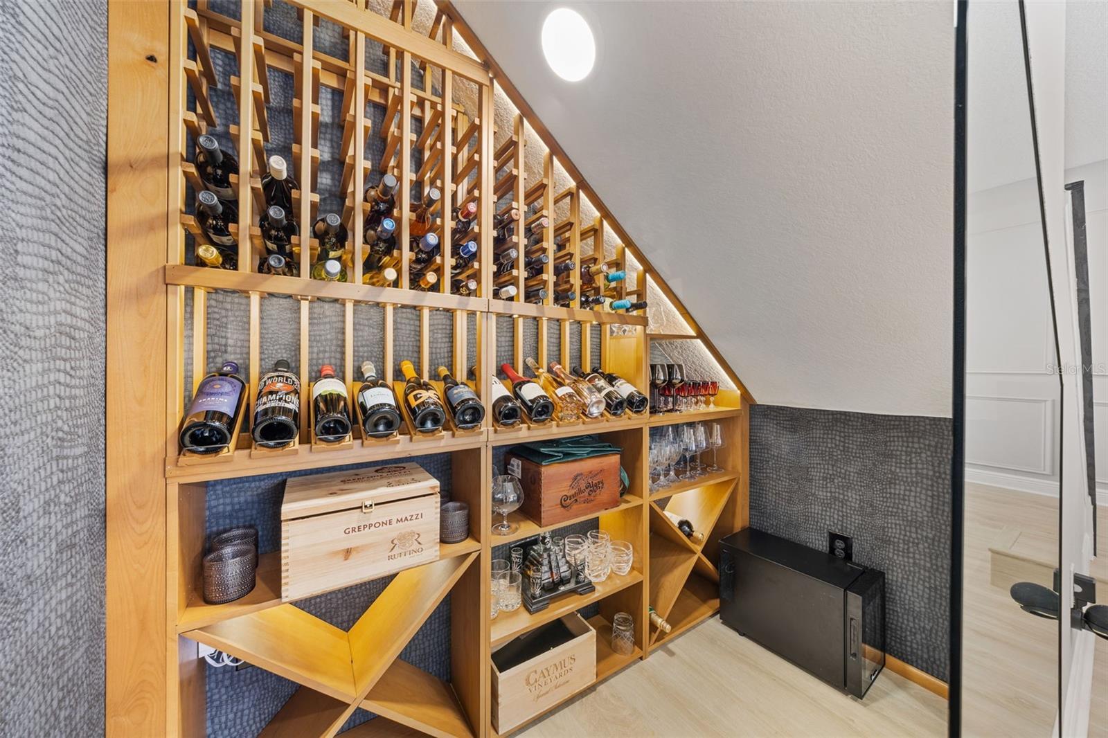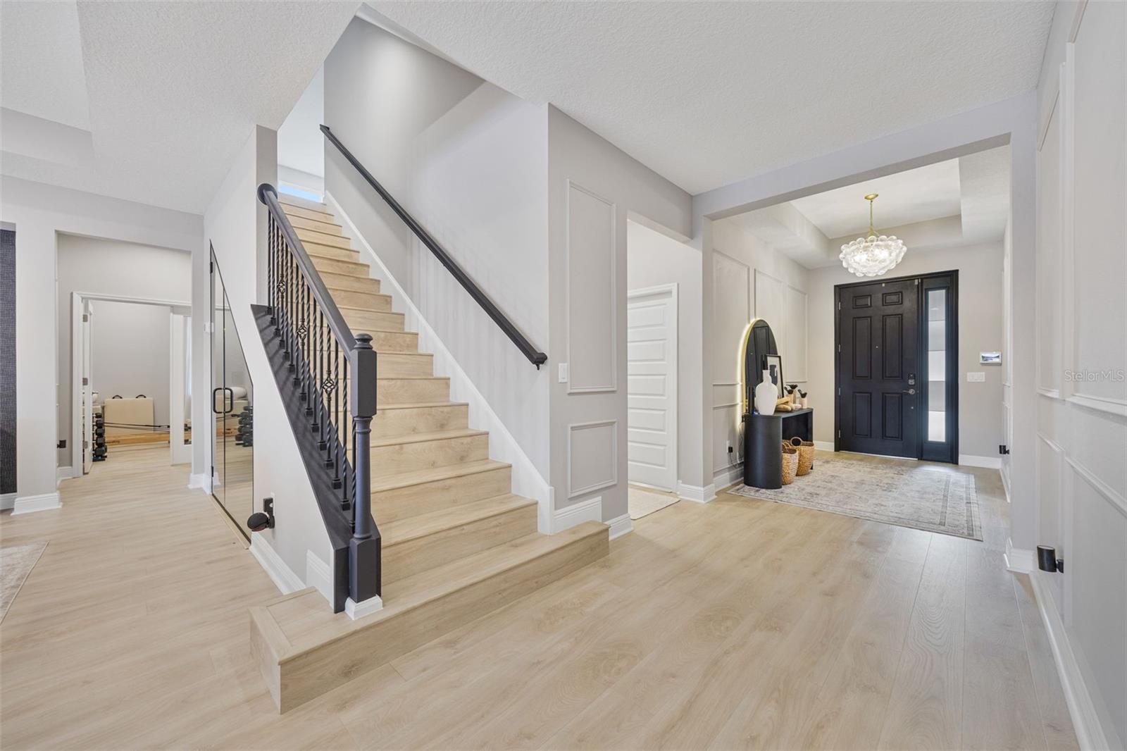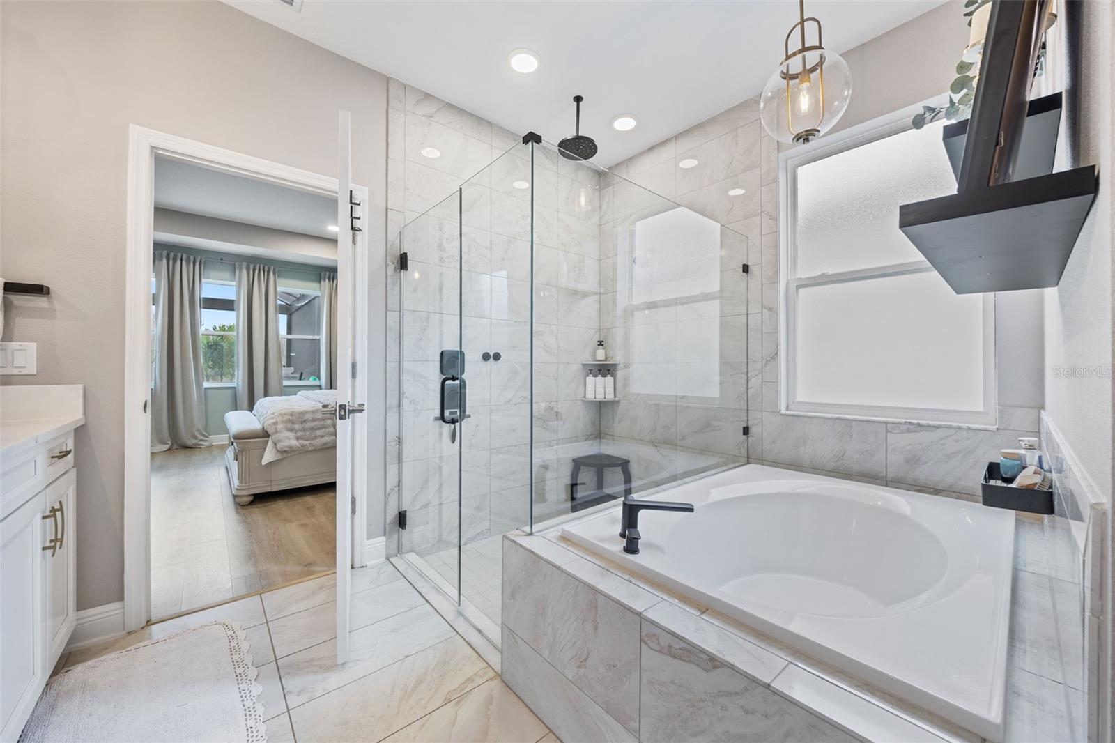 Under contract-accepting backup offers. This future home of yours is proof that you can really have it all! Welcome Home to 7741 Notched Pine Bend, Wesley Chapel, FL 33545. Whether you are looking for a primary home, investor home, or a 1031 exchange, this home is for you! This master planned community is regulated by a pass code secured 24/7 entry gate. Built in 2024 and extensively upgraded and personalized by the current owner, this home is simply breathtaking. There are no CDD or Master Association fees! HOA dues are currently only $98 a month! Over $100k in upgrades and design were invested into this house and it shows. Before you enter the home, you'll notice plenty of driveway space and a cozy front porch area. A grand foyer entry greets all who enter the front door. The spacious primary bedroom, 2.5 bathrooms and a bonus/gym/office room are located downstairs. The downstairs primary bedroom has an en suite bathroom with dual sinks, garden tub, spacious glass and tile shower stall suite, and a custom magnificent walk-in closet (you must see the pictures)! There is a family room/bonus room/loft upstairs, along with another upstairs 1 bedroom and 1 bathroom. The three car garage is incredibly spacious with storage spaces abounding. The under-stair area has been transformed into a separately glass-enclosed wine cellar, and can easily shift to another creative use. The downstairs bonus room is currently a gym and can switch easily to become your own home office suite, playroom, or many other uses. The laundry room is downstairs. Separate living, dining, and breakfast areas rest in a open layout. The kitchen is quart-adorned, full of cabinets, and has a pantry room. The custom electric fireplace brings the hearth of home with a modern flare. There is no carpet flooring in this home. Gigantic sliding glass doors can completely open the home to the vast lighted screened-in porch and a pool deck with a phenomenal vista view. This pool is amazing! It's heated, saltwater, lighted, and has sitting areas with an in-pool table! The day and night views from the outdoor deck are incomparable. Once exiting the screened in pool deck area, you are welcomed to a grassy back yard opening up to a vast private pond. Whispering Oaks Preserve is nestled in a hub easily accessible to the interstate, airport, downtown Tampa, St Petersburg, Clearwater and only 90 minutes from Disney/Orlando. The home is minutes away from Publix, Starbucks, healthcare providers, financial institutions, and shopping. When you come to visit your future home, please drive around this amazing neighborhood and surrounding amenities. This description cannot do the home justice- you simply must see the home portal website and video at: https://listings.textured.media/sites/jggeoje/unbranded and Matterport 3D walk through at: https://my.matterport.com/show/?m=kjMwZTjUqqe&brand=0&mls=1&. The serenity of this space is astounding and requires a personal visit. Please schedule a showing with your agent or contact the listing agent for a showing as soon as possible. This is the one you've been looking for! Don't forget to look through over 100 pictures, video and 3D Matterport so you can plan your future life in this amazing home. They rarely make homes like this and they are not on the market often. Furnishings are negotiable with home sale! Statements and measurements are believed accurate by Seller/Agent, however they cannot be guaranteed. Buyer and Buyer's agent must confirm all statements and measurements for themselves.