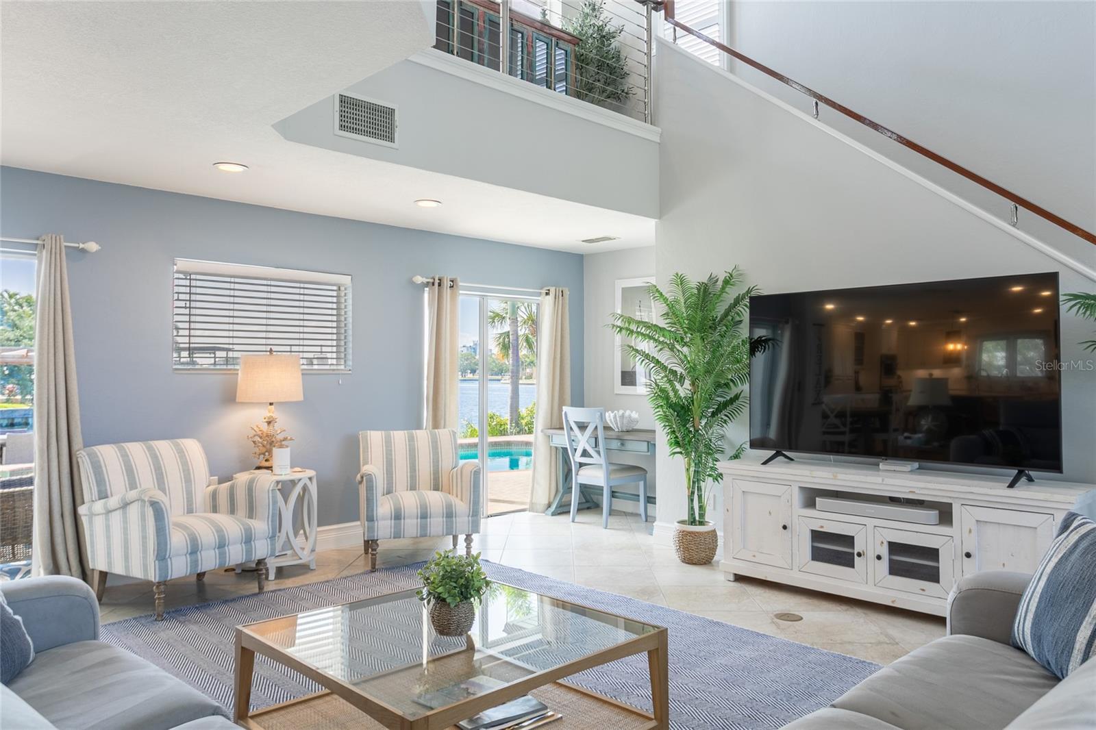 Welcome to your private waterfront retreat an exceptional turn-key, fully furnished pool home designed for elevated coastal living. This two-story residence features four bedrooms and four bathrooms and offers breathtaking 180-degree water views over Smacks Bayou. Enjoy Florida living at its finest with expansive outdoor spaces, including an upstairs balcony, a heated saltwater pool, and a brand-new dock complete with new pilings, a 16,000-lb boat lift, and jet ski lift mechanicals perfect for boating and water enthusiasts. Inside, more than 3,000 square feet of thoughtfully designed living space awaits. The chef’s kitchen features quartz countertops, a built-in Thermador refrigerator/freezer, double ovens, and a gas cooktop, wine cooler, ice maker ideal for entertaining and everyday living. The soaring ceilings in the main living area create a light and airy ambiance, while the upstairs loft offers flexible space for a home office, media room, or game area. The spacious primary suite is a serene retreat, highlighted by a spa-inspired bathroom with a freestanding soaking tub and separate walk-in shower. Key system updates include a newer roof (2022), hot water heater (2022), and two new A/C units (2024 and 2025). Added bonus is an 11.47 KW solar electric system, enhancing energy efficiency and long-term savings. Ideally located near the Shore Acres Recreation Center, downtown St. Petersburg and just one mile from Whole Foods and Publix, this home offers the perfect blend of waterfront living and everyday convenience. Don’t miss your chance to make this exquisite property your own!