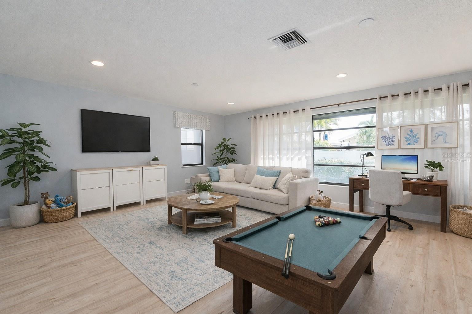 Live the Belleair Beach lifestyle—just one block from the Gulf! This fully renovated 2-bedroom, 2-bath home is perfectly situated in the exclusive community of Belleair Beach, offering modern comfort, coastal charm, and an unbeatable location. Completely updated inside and out, this solid residence features a brand-new kitchen with all new appliances, designed to open seamlessly to the living spaces through a convenient pass-through layout. The home offers a great open floor plan with separate living and dining rooms, a comfortable family or multi-purpose room—ideal for everyday living or entertaining. Split bedrooms provide privacy, while the inside utility room and two-car side-entry garage add functionality and convenience. One of the home’s standout features is the huge screened Florida room, accessible through large sliding glass doors from the living room, creating an expansive bonus space for relaxing, entertaining, or enjoying views of the lush, tropical backyard oasis. Offering 1,682 sq. ft. of beautifully remodeled interior living space and an impressive 2,459 total square feet including the screened lanai and garage, this home lives larger than expected and offers exceptional flexibility. Enjoy easy access to both the Gulf of Mexico and the Intracoastal Waterway, along with nearby parks, a boat ramp, community center, basketball and tennis courts, and a variety of beachside cafés and restaurants. Meticulously updated and perfectly positioned, this coastal gem delivers peace of mind, modern finishes, and the ultimate Florida beach lifestyle. This is your chance to live in Belleair Beach—where coastal living meets everyday comfort.