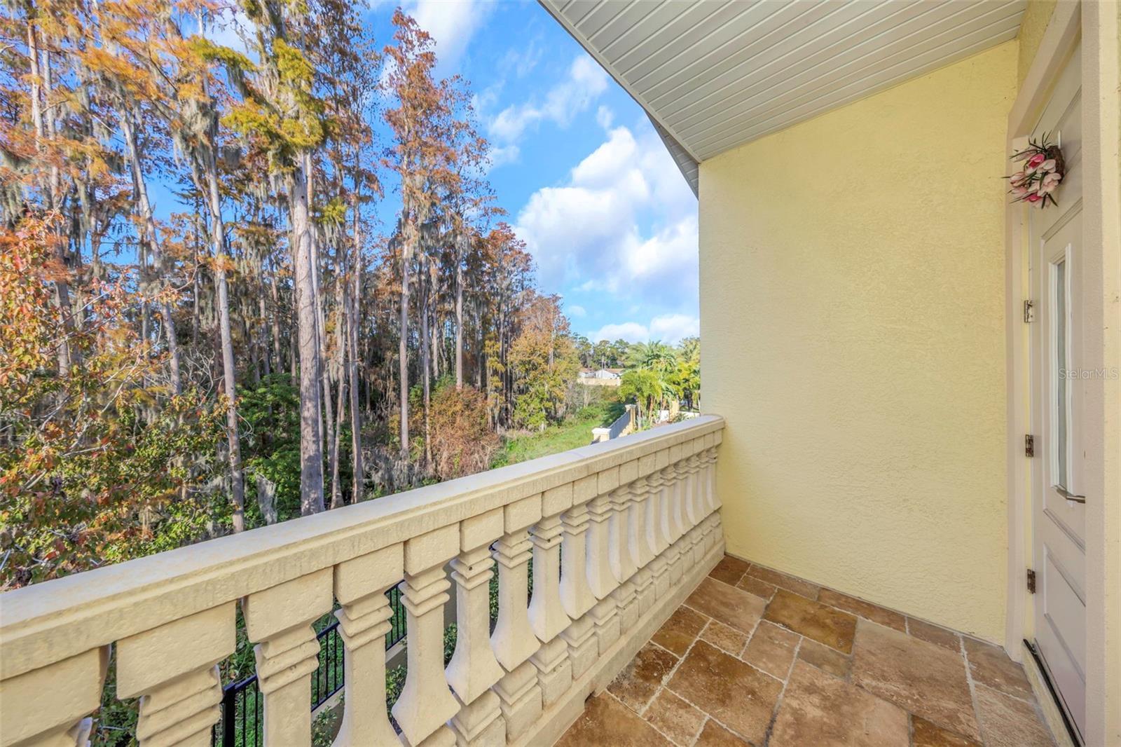 One or more photo(s) has been virtually staged. This meticulously maintained luxury townhome with 3 bedrooms, 2.5 baths, and 2 car garage is in the luxury community of Cypress Trails, on higher ground in Flood Zone X for extra peace of mind. Step inside to an open floor plan with 10’ ceilings, engineered hardwood flooring, and crown moldings throughout. The designer kitchen anchors the main living area with 42 inch soft close cabinetry, undermount lighting, quartz countertops, full height backsplash, brand-new dishwasher, gas range, and French door refrigerator. The oversized breakfast bar makes entertaining easy, while the adjacent dining area flows seamlessly into the living room. Glass sliders lead to a screened travertine patio, complete with newly installed screen enclosures completed in December 2025. The perfect spot to unwind and take in tranquil and protected Cypress conservation area, with no rear neighbors in sight. A staircase with wrought iron banister leads to three bedrooms upstairs along with a conveniently placed laundry room with washer, dryer (with gas option), and utility sink and cabinetry. The primary suite offers a peaceful retreat with crown molding, a private balcony, and a spa-like bathroom featuring dual vanities with quartz counters, a makeup station, walk-in shower, and a custom walk-in closet with built-ins. Two additional bedrooms share a beautifully appointed full bath with decorative tile and a tub/shower combo. The home has been thoughtfully upgraded with smart switches throughout and a smart garage door system that allows for remote access. An integrated security system includes a Ring doorbell and built-in alarm covering all windows and doors. And the in-home sprinkler system adds an additional layer of convenience. Additional highlights include impact resistant windows and sliders, a gas tankless water heater, and two-story concrete block construction for lasting durability and energy efficiency. Community amenities include an impressive clubhouse complete with a resort style pool, spa, and fitness center. This home offers luxury and comfort. Schedule your showing and step into the Florida lifestyle.