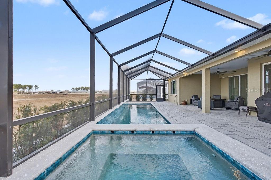 Located in the desirable Ashford neighborhood of Ocala’s renowned On Top of the World 55+ community, this stunning 2023-built home blends modern luxury with resort-style living. Featuring 3 bedrooms, 3 bathrooms, a desirable split-bedroom layout, and both a 2-car plus separate 1-car garage, this residence is loaded with premium upgrades throughout. The heart of the home showcases new Bosch appliances in a true chefs kitchen, Luxury Italian tile flooring throughout, custom lighting, Minka Aire ceiling fans, and beautifully upgraded showers in both primary suites with rain heads. Stone accents enhance both the interior and exterior, while custom closet shelving adds everyday convenience. Step outside to your private oasis—an enclosed heated saltwater pool and spa, finished with pavers, natural gas heat, safety barrier, and pre-plumbing for a future summer kitchen. The covered patio includes ceiling fans and natural gas for grilling, perfect for year-round enjoyment. Professionally designed landscaping features block walls, new plants and trees, rock beds, and app-controlled architectural and landscape lighting with endless color options. The garage space is equally impressive with full insulation, insulated doors, polyaspartic floors, custom shelving, and mini-split climate control. Residents enjoy access to unmatched community amenities with multiple golf courses, fitness centers, and even more to come—including a high-end fitness center and 9-hole golf course just a couple turns away. This home offers the perfect balance of luxury, comfort, and an active lifestyle—schedule your private showing today.