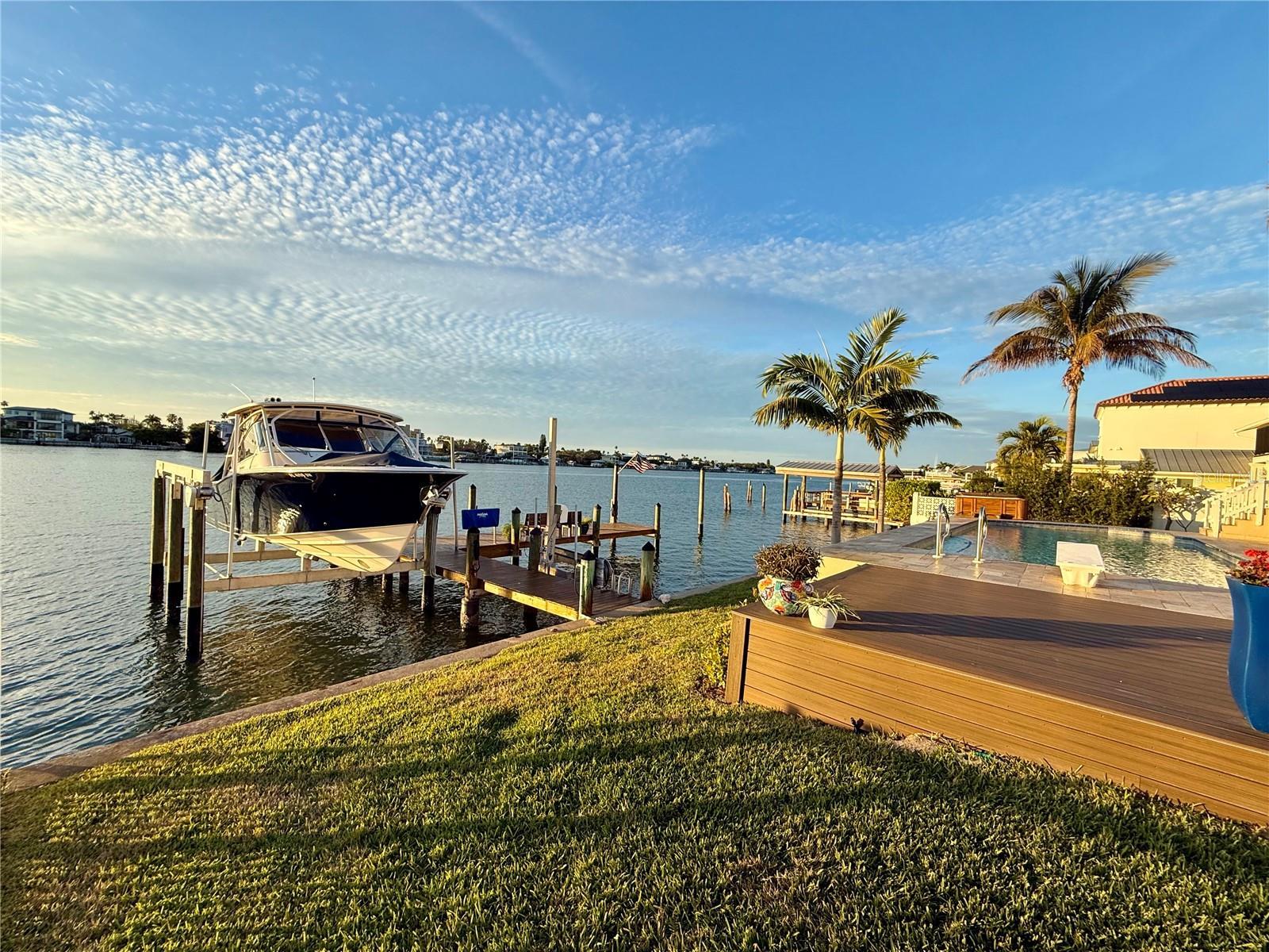 The Ultimate Waterfront Sanctuary on 'MANDALAY CHANNEL" , in Island Estates Experience the pinnacle of coastal living in this brilliantly designed 3,500 sq. ft. estate, perfectly positioned on the deep waters of Mandalay Channel. Notably High and Dry through recent storms, this residence offers rare peace of mind alongside unparalleled luxury. Designed for the serious mariner, the property boasts an elongated deep-water dock—ideal for a sailboat or yacht—a 20,000 lb boat lift, and a dedicated jet ski lift. Inside, the home balances grandeur with warmth. The formal living room features soaring vaulted ceilings and a wood-burning fireplace, while the dining room provides a sophisticated backdrop for entertaining with stunning water views. The chef’s kitchen serves as the heart of the home, featuring sprawling granite counters, a four-seat breakfast bar, and a dedicated coffee station. Transition seamlessly from a casual afternoon by the travertine-wrapped pool to "sunset cocktails" on the screened porch or at the interior bar—both providing breathtaking, year-round views of the channel. Upstairs, the master suite serves as a private retreat with a generous en-suite bath and walk-in closet. Three of the four spacious bedrooms open directly onto an expansive balcony, offering panoramic vistas. Located just a short bike ride from the sugar sands of Clearwater Beach and the charm of Downtown Dunedin, this isn't just a home—it’s a lifestyle.