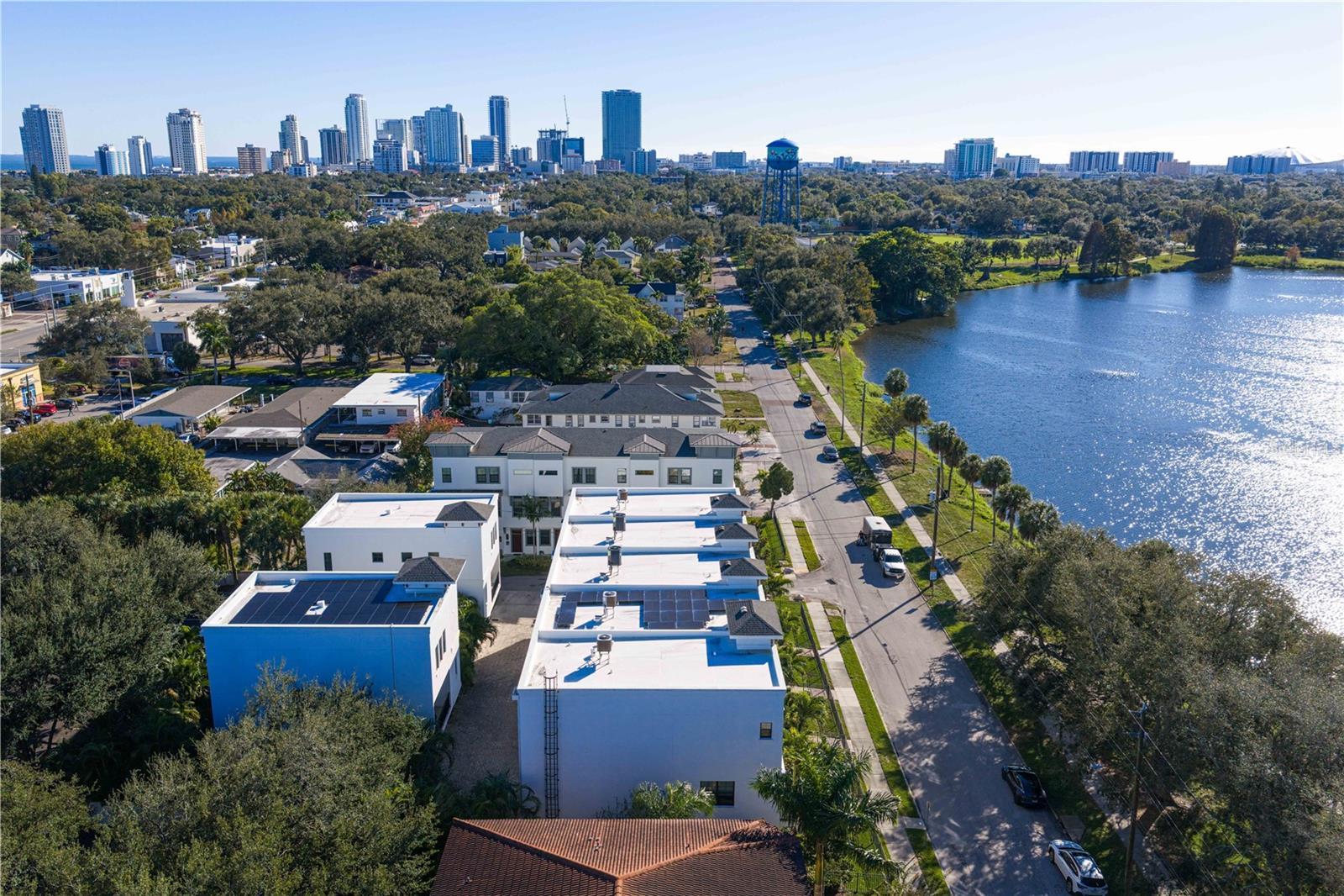 Under contract-accepting backup offers. MOVE IN READY! Lake & Park Views. Downtown Convenience. Lifestyle. Located on Crescent Lake Park, this luxury end-unit townhome offers serene water views, lush green space, and the energy of city living. With 2,550 SF, 3 bedrooms, 3.5 baths, and a 2-car garage, this residence delivers space, style, and one of St. Petersburg’s most desirable locations. • ICONIC ST. PETE SETTING: Just steps from Crescent Lake Park and minutes from downtown St. Petersburg, enjoy a scenic lake, mature banyan trees, walking and recreation trails, dog park, playground, and community activities, all while being close to Central Avenue, waterfront parks, local dining, shopping, museums, nightlife, beaches, major roadways, and everything Tampa Bay has to offer. • END-UNIT ADVANTAGE: Sought-after end unit offering added privacy, extra windows, and abundant natural light throughout the home. • FLEXIBLE FLOOR PLAN: Three bedrooms and 3.5 baths, including a first-floor bedroom with full bath, ideal for guests, a home office, or multigenerational living, plus the convenience of an attached 2-car garage. • MAIN LIVING LEVEL: The second level features high ceilings, an open-concept living, dining, and kitchen layout, a conveniently located half bath, and updated wood floors. Wood flooring was also replaced on the first level, creating a cohesive and refreshed look throughout the home. • DESIGNER KITCHEN: Featuring shaker cabinetry, quartz countertops, stainless steel appliances, gas range, farmhouse sink, custom backsplash, spacious pantry, and two islands, one with bar seating and a built-in wine cooler. Refrigerator approximately 1 year old and dishwasher approximately 2 years old. • PRIVATE BALCONY: Spacious balcony ideal for entertaining or relaxing while enjoying lake and park views, especially at sunset. • PRIMARY SUITE RETREAT: The top-floor primary suite offers peaceful views, dual walk-in closets with custom built-ins, and a spa-inspired en suite bath with dual vanities and a walk-in shower with overhead rain feature. • ADDITIONAL SUITE AND CONVENIENCE: Third-level secondary bedroom with en suite bath and a centrally located laundry area. • A rare opportunity to enjoy lake and park views, luxury finishes, and downtown St. Petersburg convenience in one beautifully maintained end-unit townhome.
