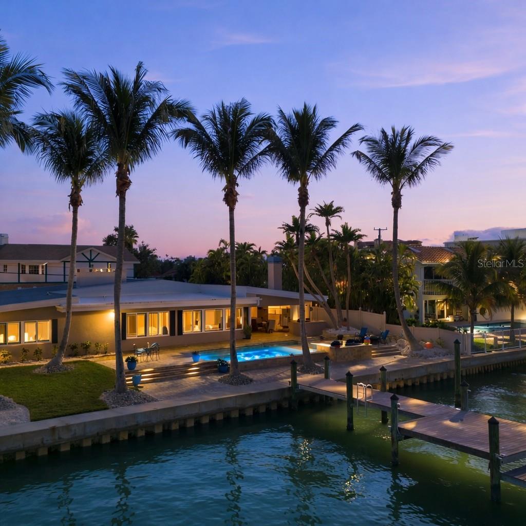 Unparalleled Waterfront Living in the Heart of St. Pete Beach Discover an exceptional opportunity to own a sophisticated waterfront retreat in the prestigious community of Brightwater Beach Estates—a rare enclave of approximately 100 waterfront homes located just across the street from the beach. This stunning single-family residence offers breathtaking, expansive water views that create a serene backdrop for both everyday living and unforgettable entertaining. Inside, an open-concept floor plan with soaring ceilings enhances the home’s light-filled, airy ambiance. Two elegant fireplaces add warmth and architectural character, seamlessly blending comfort with coastal luxury. The chef’s kitchen is designed to impress, featuring brand-new appliances, gleaming granite countertops, a breakfast bar, and a separate center island—perfect for gatherings, casual dining, and culinary creativity. A thoughtfully designed split floor plan provides privacy and comfort for all. The primary suite is a true sanctuary, showcasing mesmerizing water views, a spacious walk-in shower, dual vanities, and an expansive walk-in closet. Hurricane-impact windows and doors offer peace of mind without compromising style. Outdoor living takes center stage with a fully covered waterfront kitchen and bar, complete with its own fireplace—an idyllic setting for alfresco dining year-round. Enjoy the saltwater pool and spa, surrounded by lush tropical landscaping, or step onto your private dock with direct access to sparkling waterways—ideal for boating, sunset cruises, and daily dolphin sightings. Completing the property is a two-car garage with epoxy-finished floors, providing both functionality and a pristine finish. This is more than a home—it’s a lifestyle defined by luxury, location, and the relaxed elegance of waterfront living. Conveniently located near world-class beaches, shopping, dining, and entertainment. Schedule your private showing today and begin your next chapter in paradise. ( buyer to verify and note room sizes and dimensions are approximate)