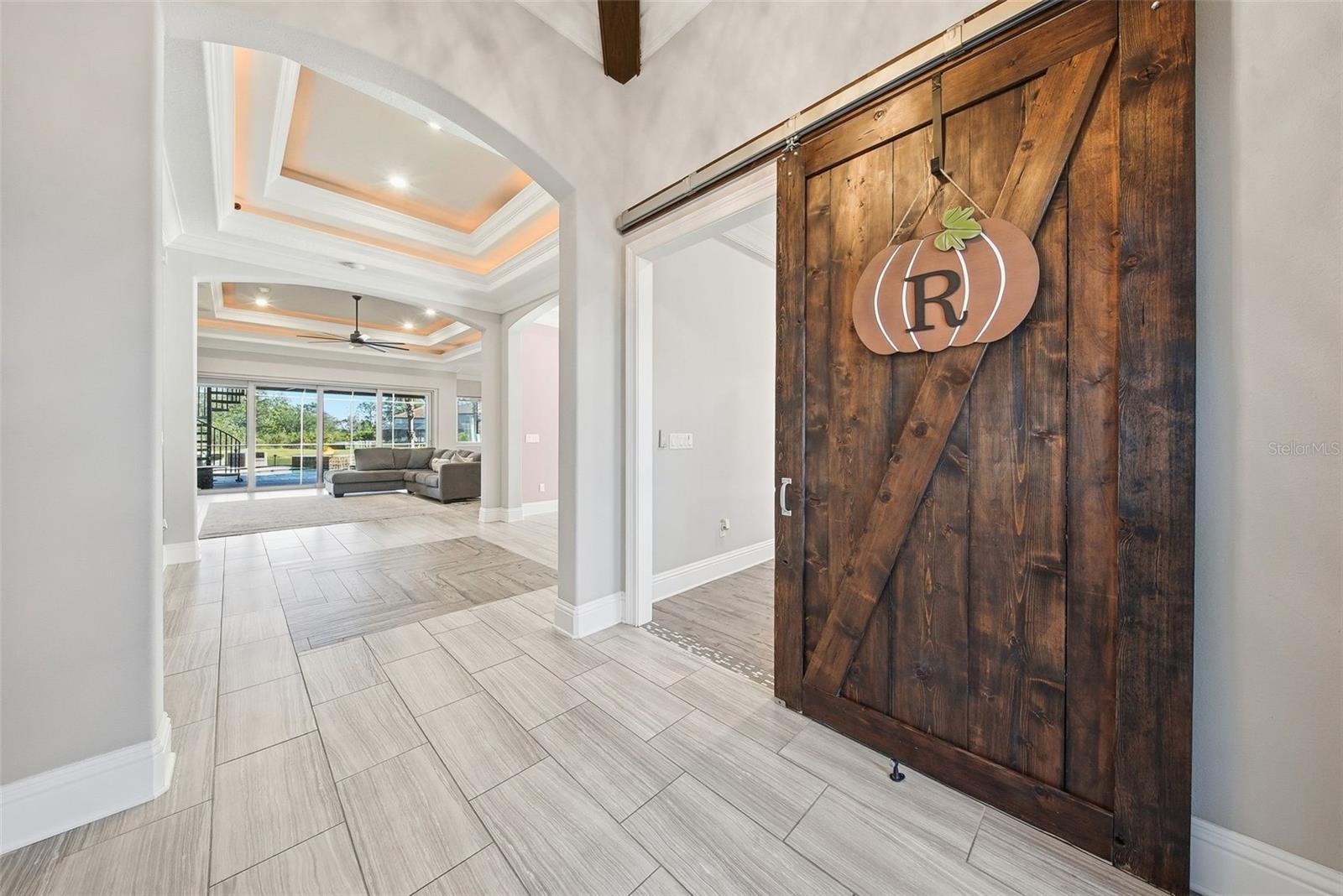 One or more photo(s) has been virtually staged. Experience elegance in this meticulously crafted residence, positioned in the exclusive gated Graybrook section of the Watergrass community. From the moment you arrive, the home commands attention with its grand stone circular entrance—setting an impressive tone for the refined luxury found inside. Step through the custom made front door to soaring ceilings, dramatic illuminated tray accents, and a seamless blend of architectural sophistication and comfort. The main level highlights four spacious bedrooms and four beautifully finished full baths. The primary suite is a sanctuary of serenity, featuring custom-designed closets and a spa-inspired bathroom complete with a freestanding soaking tub, rain shower and multiple massage sprays for a truly indulgent experience. At the heart of the home, the gourmet kitchen is a culinary showpiece, equipped with premium Viking appliances, a large entertainer’s island, and exquisite craftsmanship throughout. Its open flow into the family room creates an inviting environment ideal for elegant hosting, relaxed living, and unforgettable gatherings. Just off the formal dining room, a private courtyard provides a peaceful setting for alfresco meals or morning coffee. Designed for resort-style living, the outdoor space is nothing short of exceptional. The heated, saltwater pool/spa are enclosed within an expansive screened lanai, offering year-round enjoyment and seamless indoor–outdoor living. This luxurious setting is further elevated by a fully equipped outdoor kitchen for effortless entertaining and a cozy fire-pit area that adds warmth and ambiance to evenings by the pool. Beyond the lanai, the home backs onto pristine conservation land and a tranquil pond, ensuring privacy, natural beauty, and breathtaking views that enhance the sense of retreat. A spacious three-car garage provides ample storage and convenience, completing the main level. Upstairs, a versatile media room or fifth bedroom awaits—complete with its own full bath and access to a private balcony. Perfect for movie nights, game nights, or simply unwinding, this elevated space offers flexibility and comfort. As a resident of Watergrass, you’ll enjoy resort-style amenities, including three community pools, a state-of-the-art clubhouse with a gym, a pavilion, and numerous parks—including one right in Graybrook. Convenience is unmatched with I-75 just minutes away and everyday essentials like Publix and Starbucks just down the street. Top-rated schools, including Watergrass Elementary, Kirkland Ranch Academy of Innovation, and Innovation Preparatory Academy, are just moments away. The home’s prime location also offers easy access to Tampa Premium Outlets, Wiregrass Mall, KRATE at the Grove, top hospitals, and an array of dining and retail options. This extraordinary home offers an unparalleled blend of luxury, convenience, and community living. Don’t miss the opportunity to make it yours—schedule your private tour today!