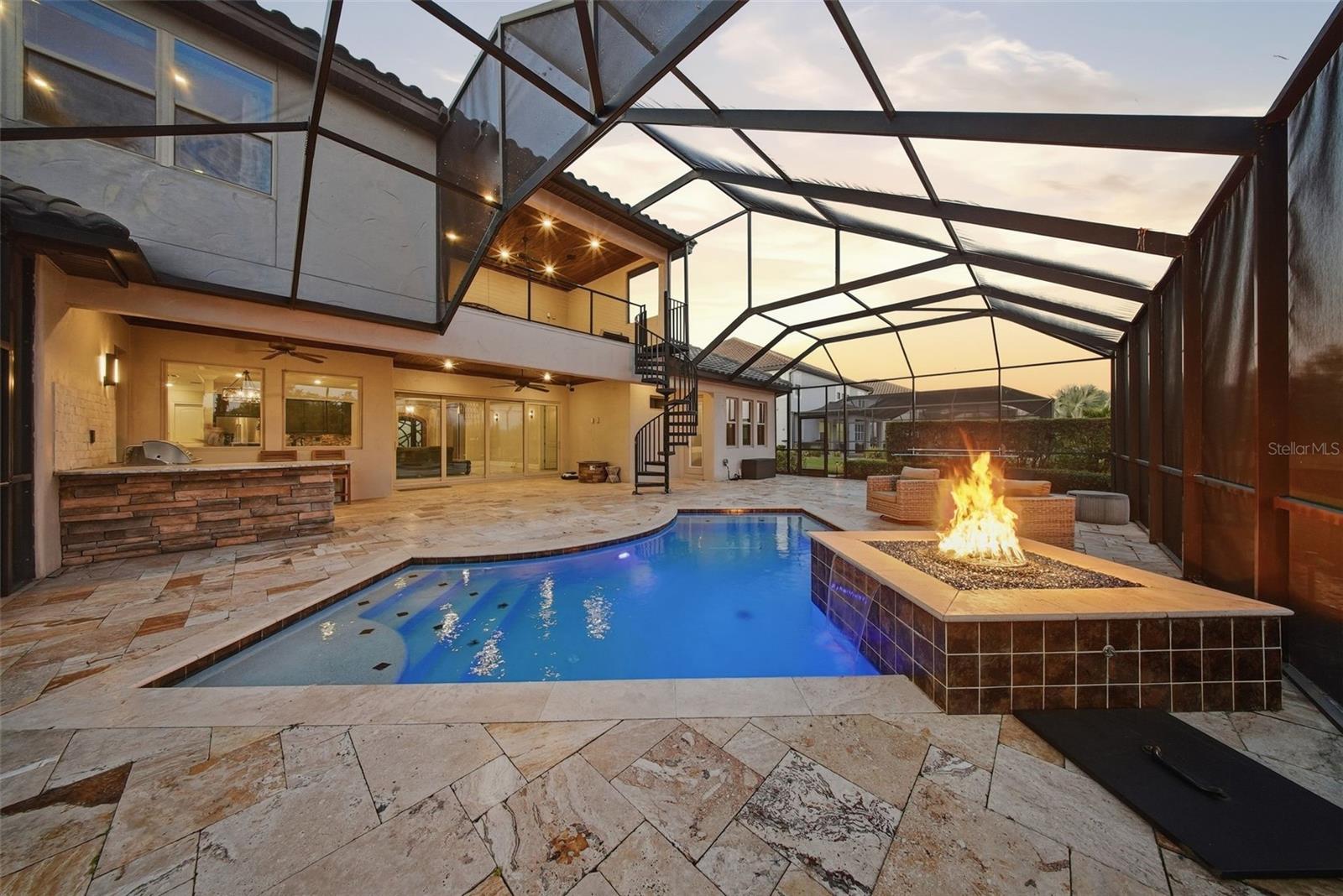 - Balcony, Courtyard, Fire Pit, Lighting, Outdoor Grill, Outdoor Kitchen, Rain Gutters, Sidewalk, Sliding Doors