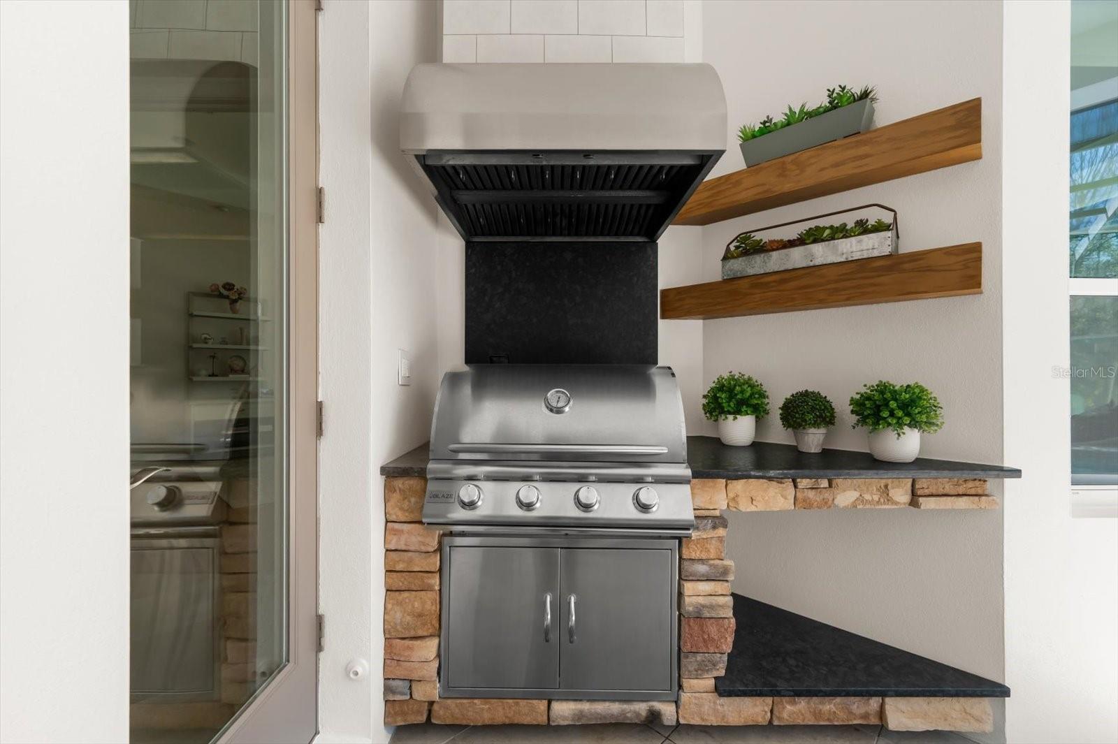 - Balcony, French Doors, Outdoor Grill, Outdoor Kitchen, Private Yard, Rain Gutters, Sidewalk