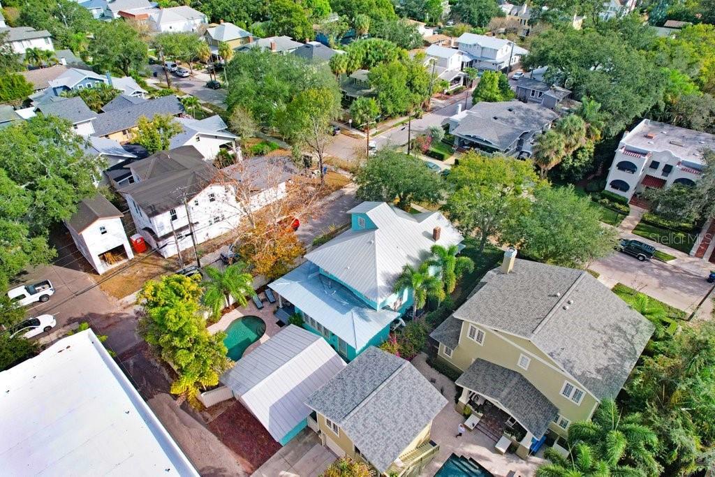 Welcome to 1801 W Hills Ave, a beautifully renovated historic residence in the heart of Hyde Park, situated on a desirable corner lot. This 3-bedroom, 2.5-bath home blends timeless character with modern convenience and features a wraparound porch, private pool, metal roof, and a larger-than-average 2-car garage with rear alley access. Believed to have been originally constructed around 1910, the home was purchased by the current owners in 2003 and subsequently fully renovated in collaboration with the Architectural Review Committee (ARC) to preserve its historic integrity while incorporating modern updates throughout. The living room highlights exceptional original details, including a horsehair and plaster decorative border with gold leaf trim and a plaster stipple ceiling, showcasing the craftsmanship of the era. The thoughtfully designed floor plan offers spacious living and dining areas ideal for everyday living and entertaining, along with three well-appointed bedrooms and two and a half baths. A distinctive architectural feature of the home is the cupola, which provides a unique and versatile space suitable for a small bedroom, office, or private hideaway. Additional features include two fireplaces (one gas and one wood-burning), new air conditioning units, and a layout that is truly move-in ready. Outdoor living is enhanced by the wraparound porch and a private backyard retreat with a pool. The detached garage is conveniently accessed via the alley. Approved plans to add an accessory dwelling unit (ADU) above the garage are available upon request, offering future flexibility for guests, rental income, or a home office (buyer to verify zoning and permitting). The property is not located in a flood zone and sits at an approximate elevation of 25 feet above sea level. The home and surrounding street have not experienced flooding during past storm events. Ideally located just minutes from Hyde Park Village, Bayshore Boulevard, Downtown Tampa, and South Tampa’s premier dining and shopping, this exceptional residence offers historic charm, thoughtful renovations, and an outstanding South Tampa location.
