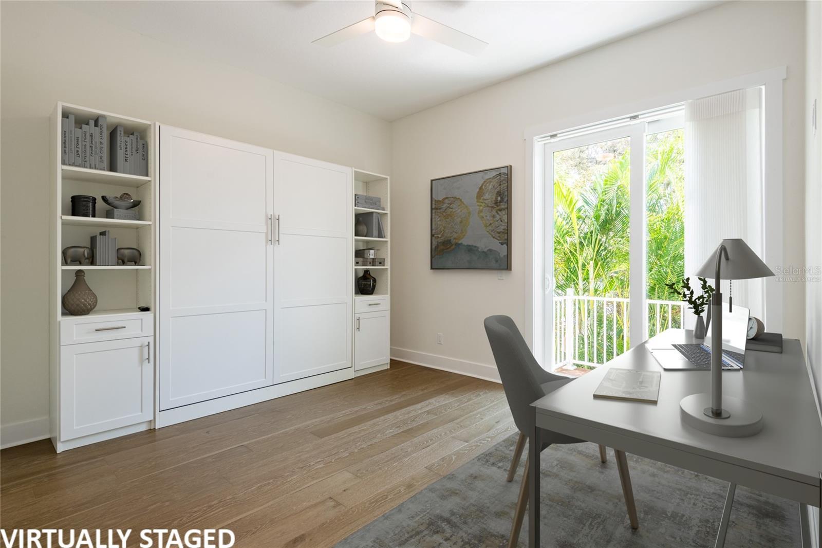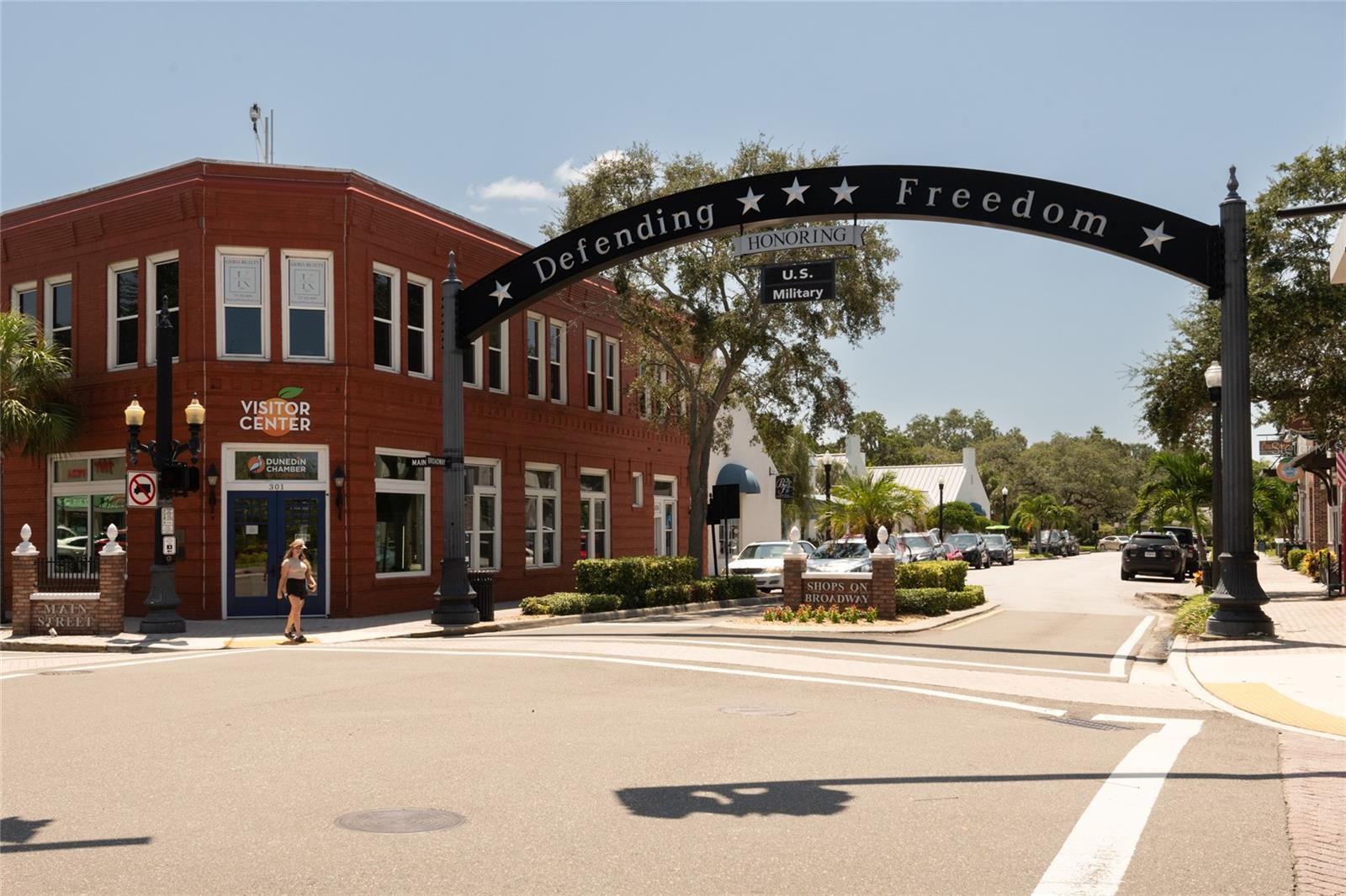 One or more photo(s) has been virtually staged. Don't miss your chance at this rare opportunity for like new construction, right in the heart of walkable, golf cart friendly, downtown Dunedin. The home is well equipped with all of the modern conveniences and stylish finishes one could want! Starting downstairs, you will find a four car, tandem garage that can hold all of the goodies that will come in use in this highly sought after town, with so much outdoor living going on. The garage is outfitted with epoxy flooring, My Que remote garage opener, tankless water heater and is wired for an EV hook up station. The first floor has a good sized, screened lanai for grilling and entertaining, with a ceiling fan. There is elevator access for each floor in the home, conveniently located just off the garage, kitchen, and primary bedroom. Heading to the main floor, you will instantly be taken in by the cheerful brightness that lights up the entire living space. You will find a well appointed kitchen with 42" uppers, granite counters, Samsung smart gas range with hood, cabinet pull out garbage, stylish backsplash and under cabinet lighting. The second story bedroom, with a full bath just off of it, a beautiful Murphy bed, and a balcony. The laundry room is conviently located off the kitchen and has plenty of cabinet space , and GE Profile washer and dryer, which do convey. The living / dining room combo makes for easy entertaining with plenty of space, with a balcony. Heading to the third floor you will first see the nice storage closet as a bonus. The primary bedroom will give you outstanding light as the home has a west exposure. The bathroom has a large walk-in shower, double vanities, a spacious closet, and a toilet room. The third bedroom (ensuite) has a with double closets, is perfect for all of those out of town guests that may come and stay awhile (pocket door off the room for privacy)! Some other things to know about this lovely end unit...A COMMUNITY POOL is under way and compeltion soon! The home has fans throughout, lofty10' ceilings, security cameras, energy efficient hurricane impact rated windows, laminate flooring throughout, and custom silhouette shades. The construction of the home is the best you can get with insulated concrete forms (ICF). All of the charming downtown is completely walkable from this home, as well as the many, many miles of the pinellas trail. Enjoy the long list of restaurants, breweries, weekend markets, and all of the well planned festivals and parades that have helped shape this darling town. Just a quick trip to the best local beaches; Honeymoon Island, Clearwater beach and Fred Howard Park, to name a few. Close to the bustling Tampa areas, wonderful shopping, and nearby airports.