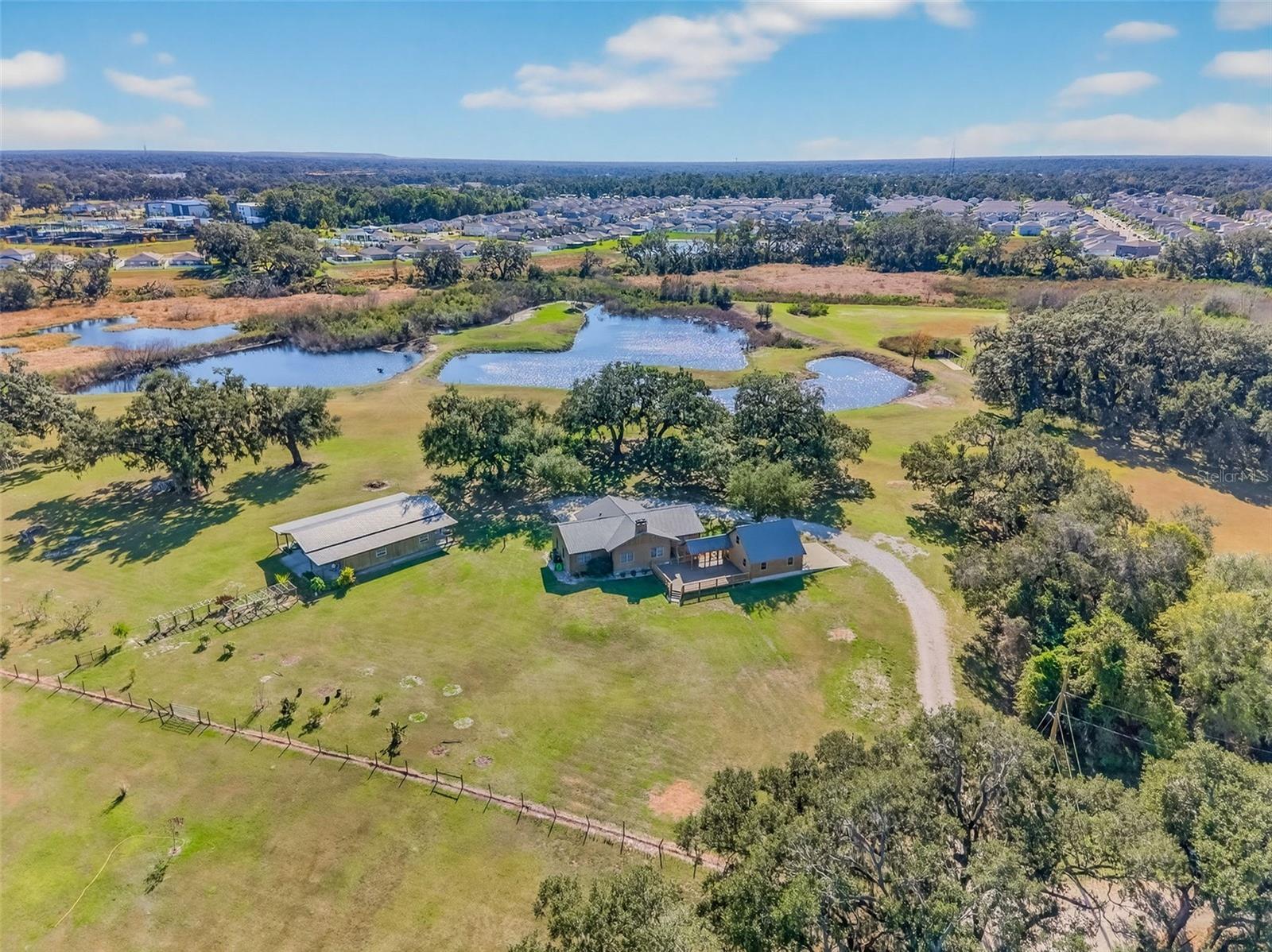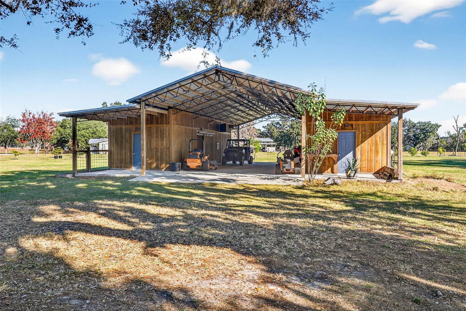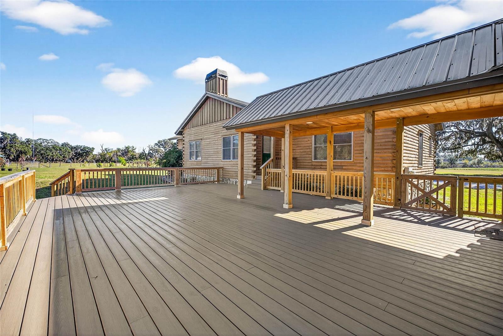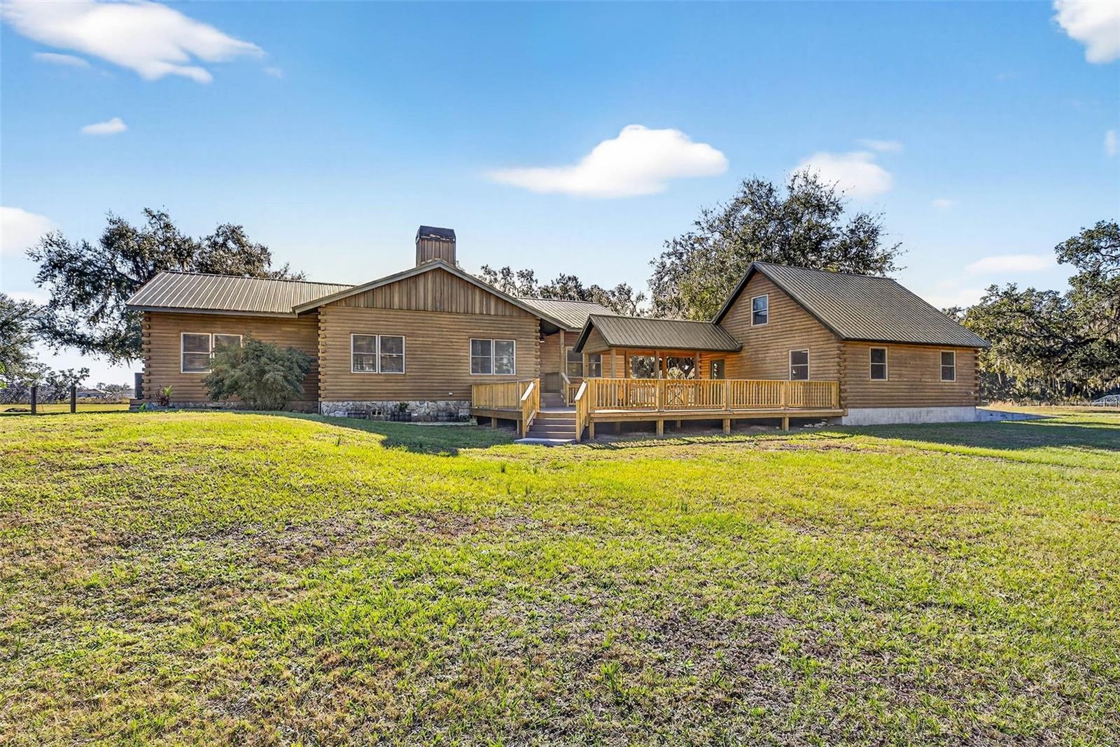 Nestled on 15 picturesque acres, this custom-built log cabin home offers the perfect blend of rustic charm and modern comfort. Surrounded by mature oaks and open pastureland, the property features a private pond and sweeping views that create a true retreat-style setting.Inside, the home showcases warm wood interiors, vaulted tongue-and-groove ceilings, and an open-concept layout designed for both everyday living and entertaining. The spacious kitchen anchors the home with generous cabinetry, a large island, and seamless flow into the living and dining areas, where a stone fireplace adds cozy cabin character. Large windows throughout bring in abundant natural light and frame peaceful views of the surrounding acreage.The home offers 3 bedrooms and 2 bathrooms, including a comfortable primary suite with serene views and ample space to unwind. Every detail reflects quality craftsmanship and timeless design.Outdoor living is just as impressive, with a large covered porch and expansive deck, ideal for morning coffee, sunset gatherings, or simply enjoying the quiet beauty of the land. The property is further enhanced by an impressive open-air barn with covered bays, ideal for equipment storage, tractors, UTVs, or workshop use. Designed with functionality in mind, the structure features multiple enclosed storage rooms, wide access openings, and durable construction well-suited for agricultural, recreational, or hobby use. The open center bay allows for easy drive-through access, while the covered wings provide shaded workspace and protection from the elements. Whether you need space for tools, vehicles, livestock support, or future customization, this versatile barn adds exceptional value and usability to the acreage.Recent upgrades include a new metal roof installed in 2022 and a detached 2-car garage built in 2024, offering excellent storage and workspace options.Private, peaceful, and full of character, this one-of-a-kind log cabin estate delivers space, scenery, and serenity—while still offering the comfort and functionality today’s buyers desire.