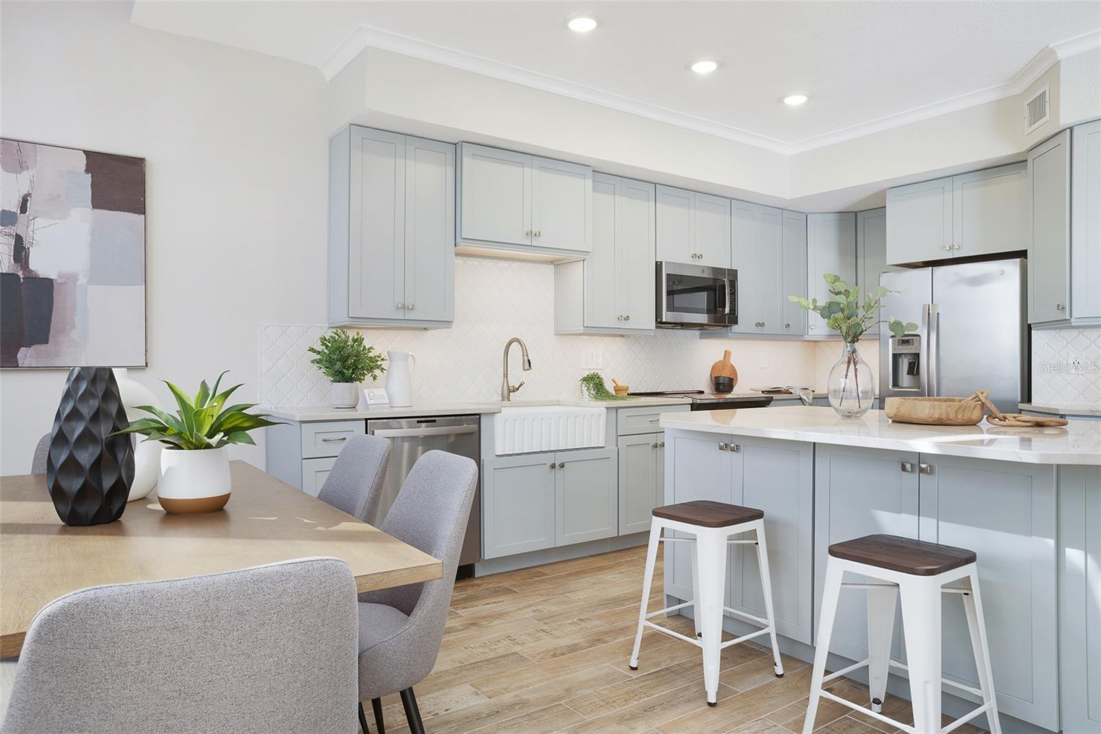 All Assessments Paid. Brand New Metal Roof (2025). Fully Remodeled Interior (2023). 2 Deeded Parking Spots. (One Covered and Conveniently located Steps away from the front Door.) One, 12x33 Deeded Boat Slip. Experience the Most Laid Back Community in all of Tierra Verde. Experience Waterfront Living at Its Finest in Tierra Verde Imagine Waking Up To Your Canal, Having Coffee and Watching Dolphins. Maybe you find Peace By Being on the Water. Invite Your Family Over for a Day of Fishing and Swimming in the Olympic Swimming Pool. Because every morning in this beautifully updated 3-bedroom, 2-bathroom condo, Your Dream is a Reality. Spanning over 2,300 square feet of climate-controlled luxury, this residence combines comfort with elegance, presenting a rare opportunity in an exclusive community of only 33 units—where half live full time. Making living here, full or part time a true getaway. Enjoy the lush landscaping adorned with birds of paradise. As you enter the inviting living room, which boasts stunning water views with one of two cozy wood-burning fireplaces, setting the perfect ambiance for relaxation. Step outside to the main level balcony, where a spiral staircase leads you down to your outdoor living area with outside Furniture and a New Composite Deck. Perfect for Yoga with Friends. The Canal offers direct access to the Gulf of Mexico where the world Comes To Fish. Dont get me started on the convenient location of the world-class Fort De Soto State Park. The Location Alone is worth the Price of this Unit and You Have To See North Beach to Believe me. The Fully Renovated Kitchen Is A Culinary Delight, Featuring An Oversized Island, Stainless Steel Appliances, Exquisite Stone Countertops, and High-Quality Cabinets. The adjoining dining area continues the water view, making every meal a memorable occasion. On the main floor, you'll find a full-size washer and dryer, a conveniently located common bath, and two spacious bedrooms, each equipped with ample closet space. Ascend the beautifully remodeled staircase to discover a versatile bonus room behind elegant barn doors, perfect for a home office, playroom, or personal gym. This room also provides access to a generous climate-controlled storage area. Retreat to the primary bedroom, where you can catch the most serene sunrise over your water views own your private balcony. Bask in the warmth of another fireplace and enjoy a sizable, cedar-lined closet measuring 7x10. The semi-private vanity area features dual sinks, providing an ideal setting for your morning routines, complemented by a stylish private bath with a shower, accessed through a new barn door.